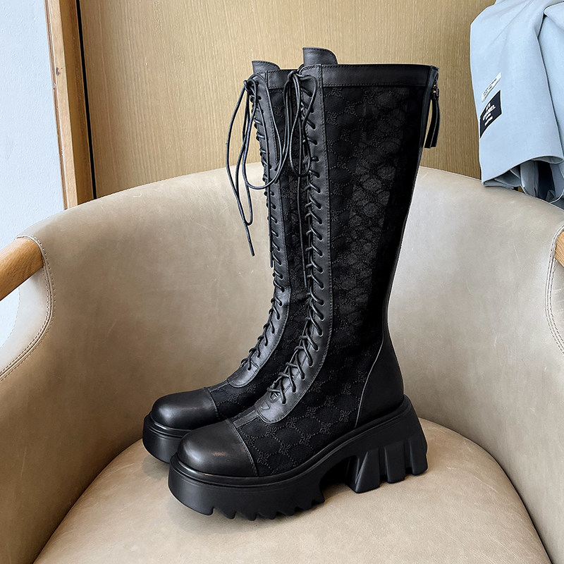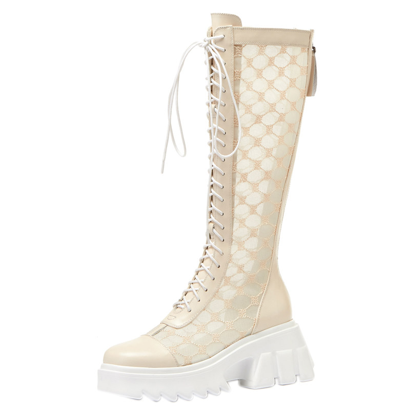 Сетчатые летние дышащие высокие высокие сапоги на платформе, сезон 2021, с вышивкой