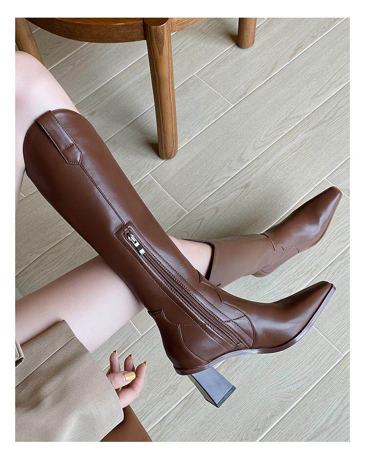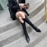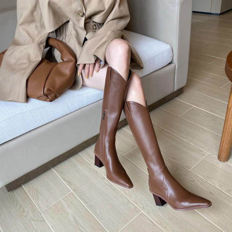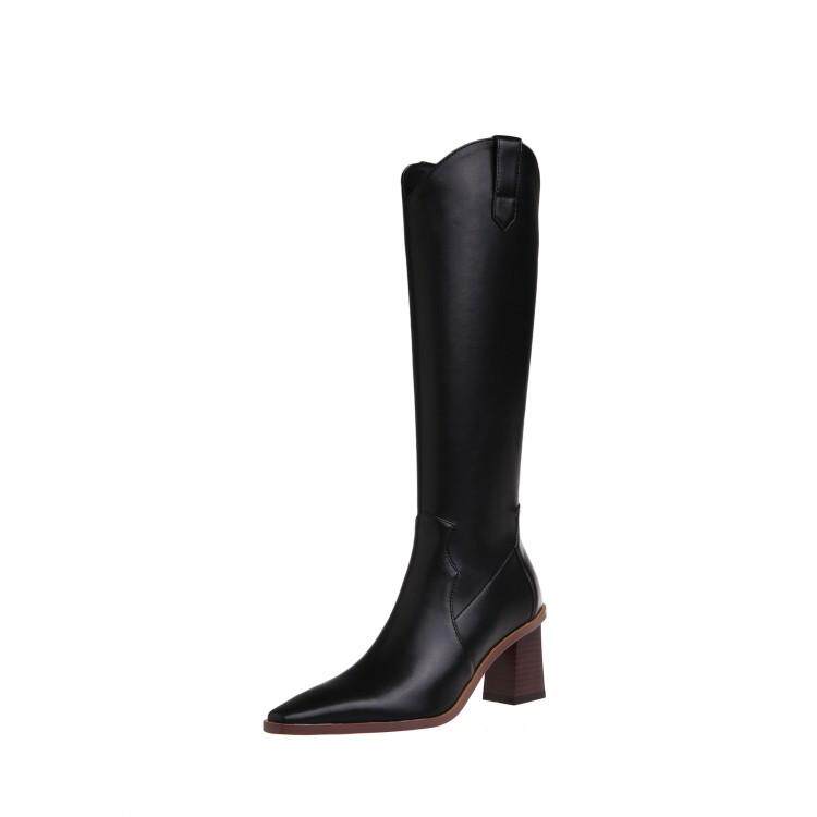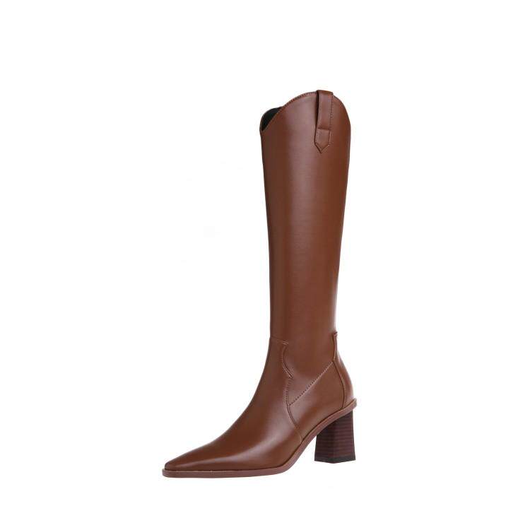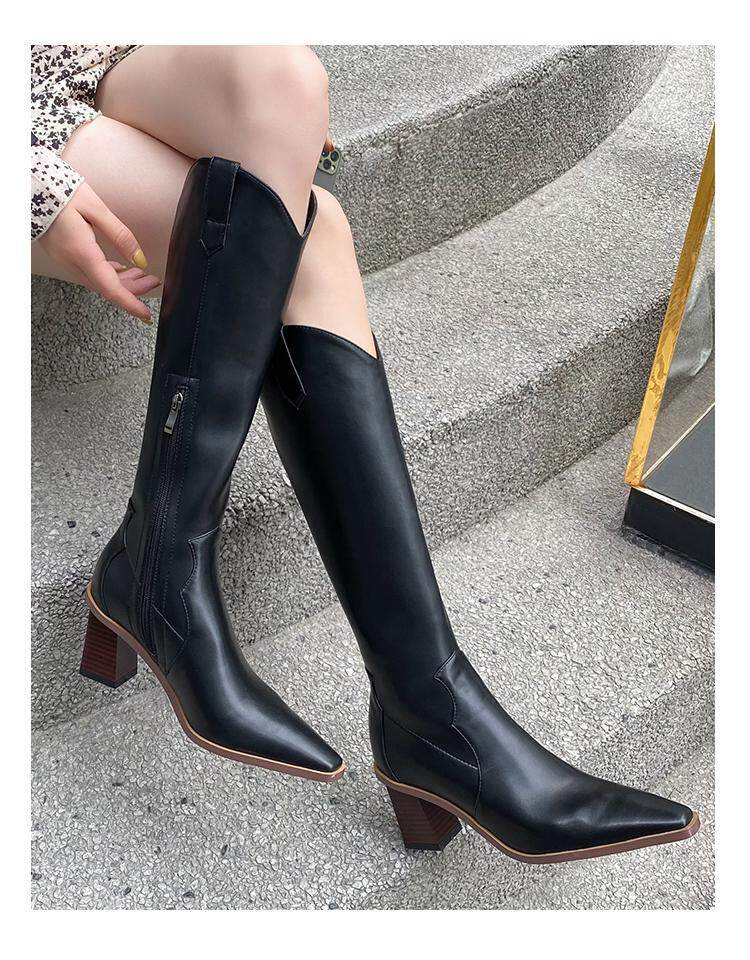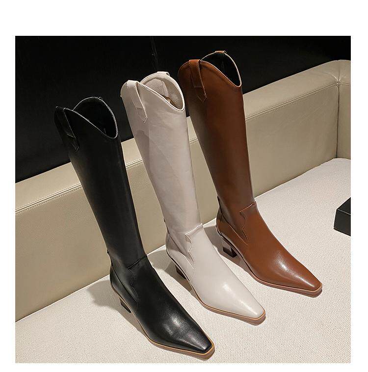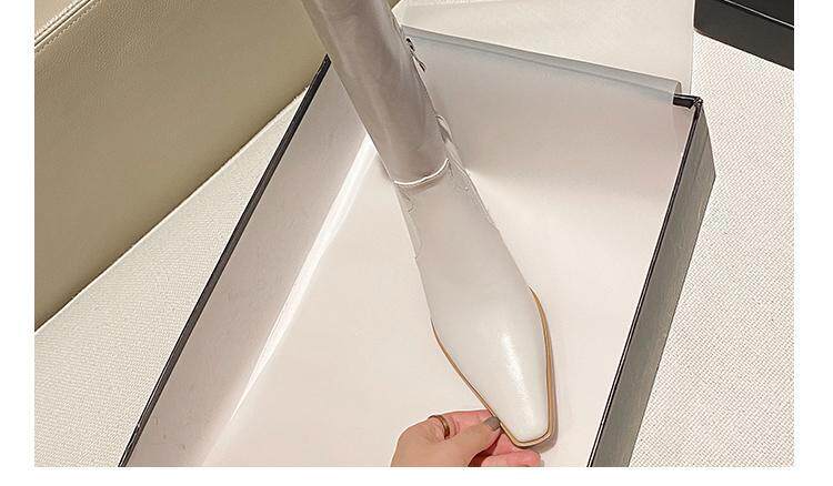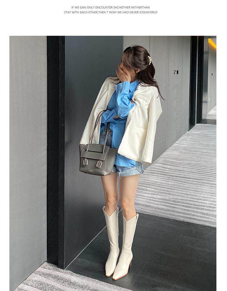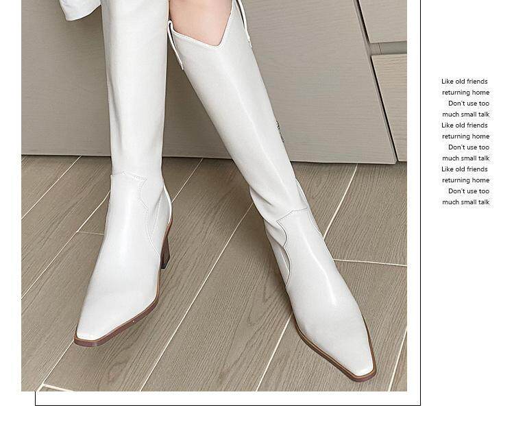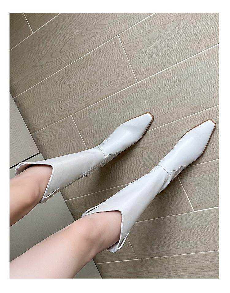Высокие белые высокие сапоги с заостренным носом, по фигуре