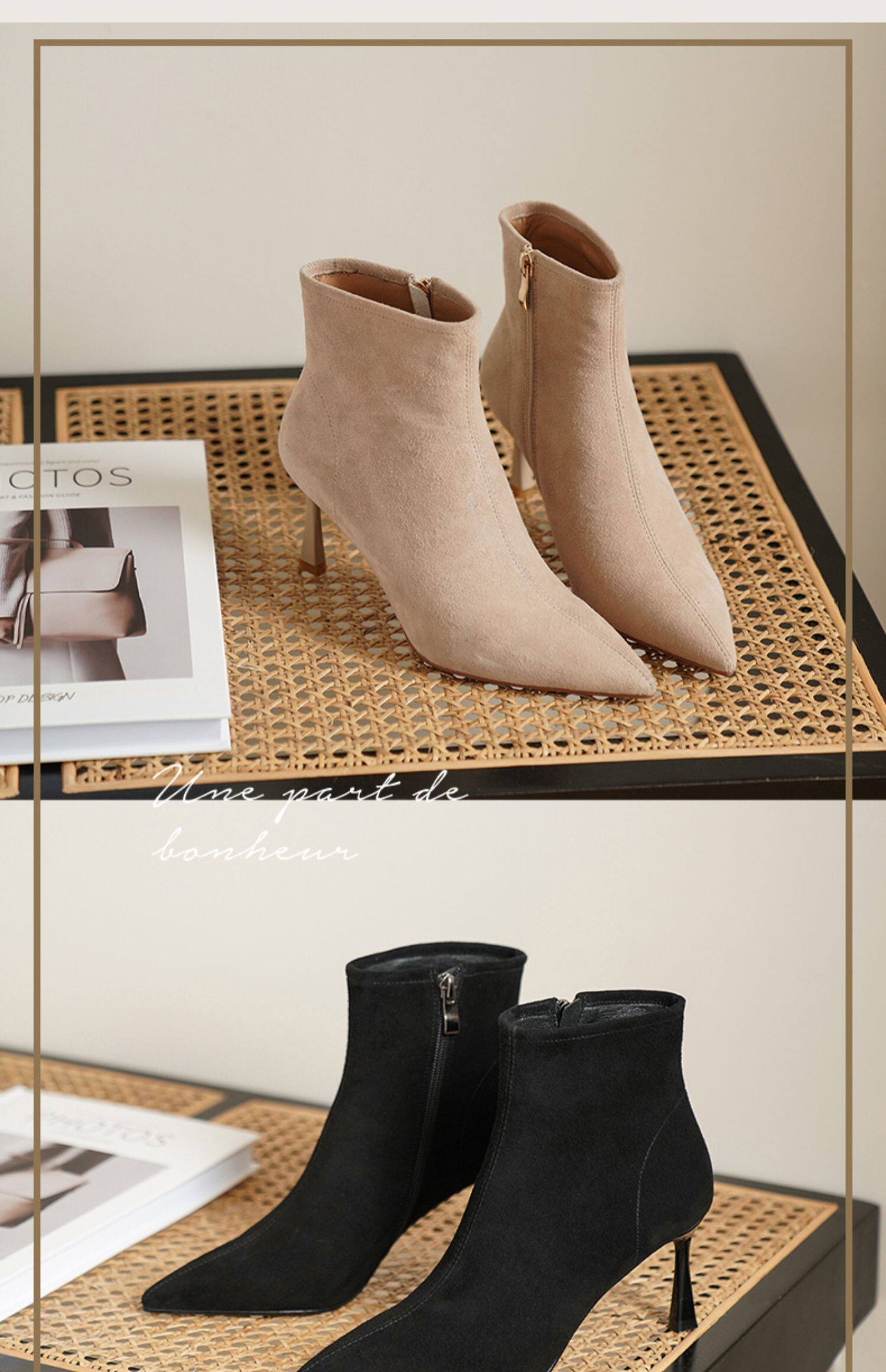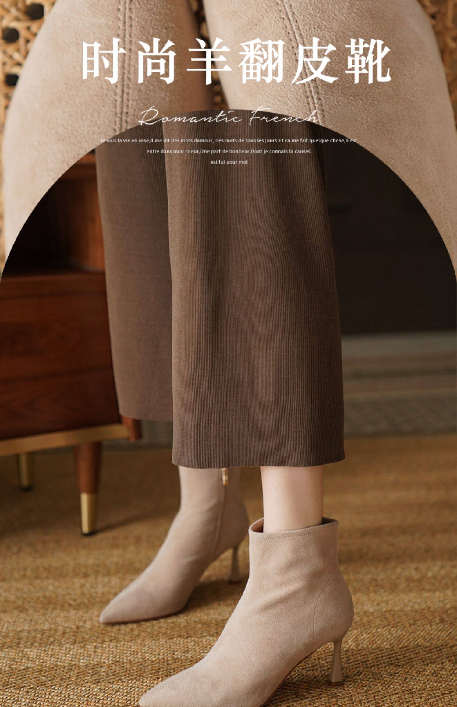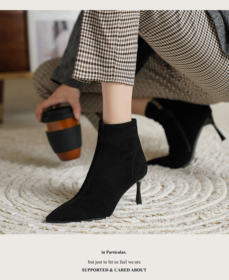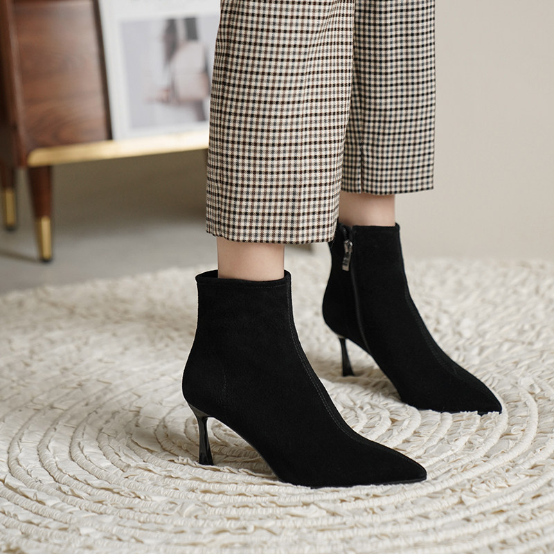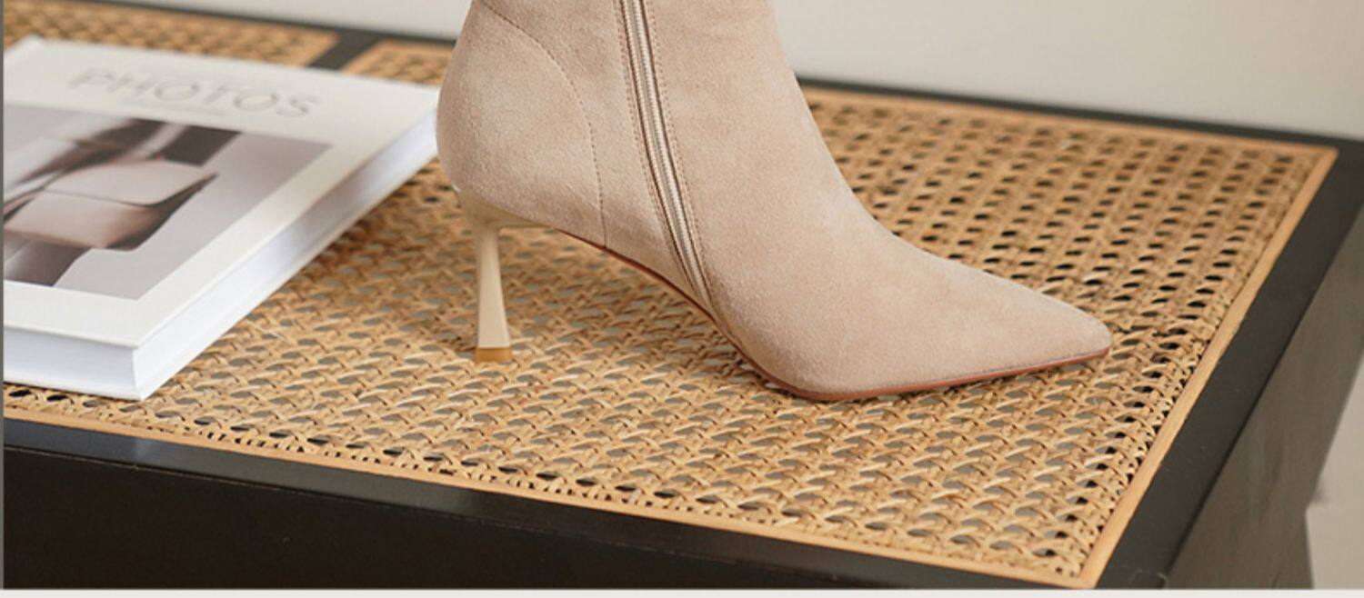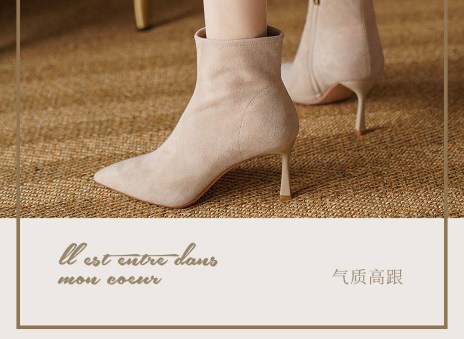 Нюдовые зимние короткие сапоги, матовые ботильоны с заостренным носом на высоком каблуке, светлые ботинки