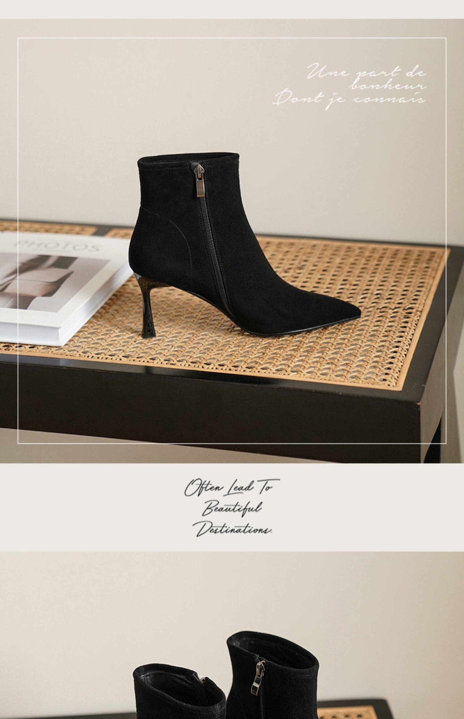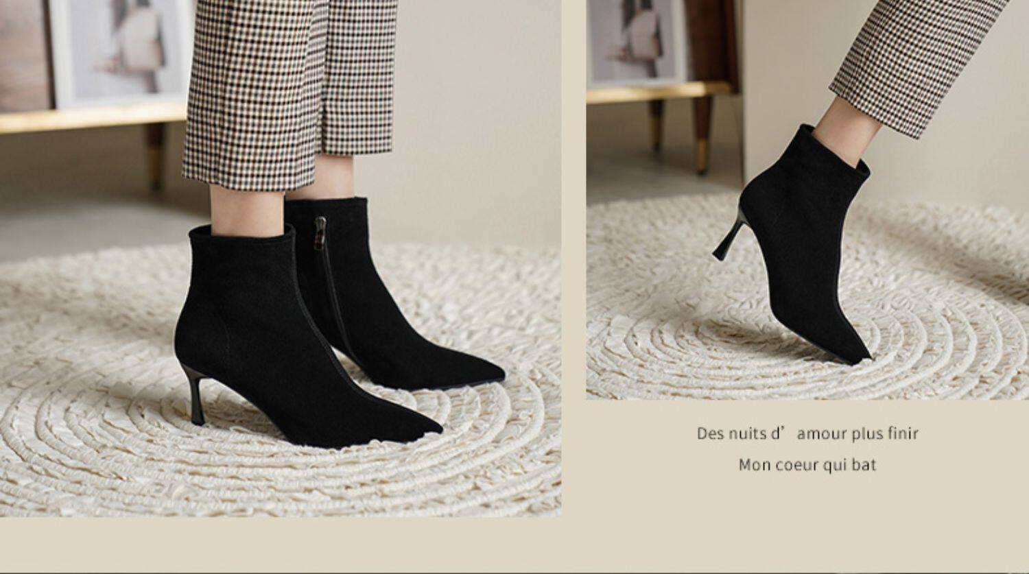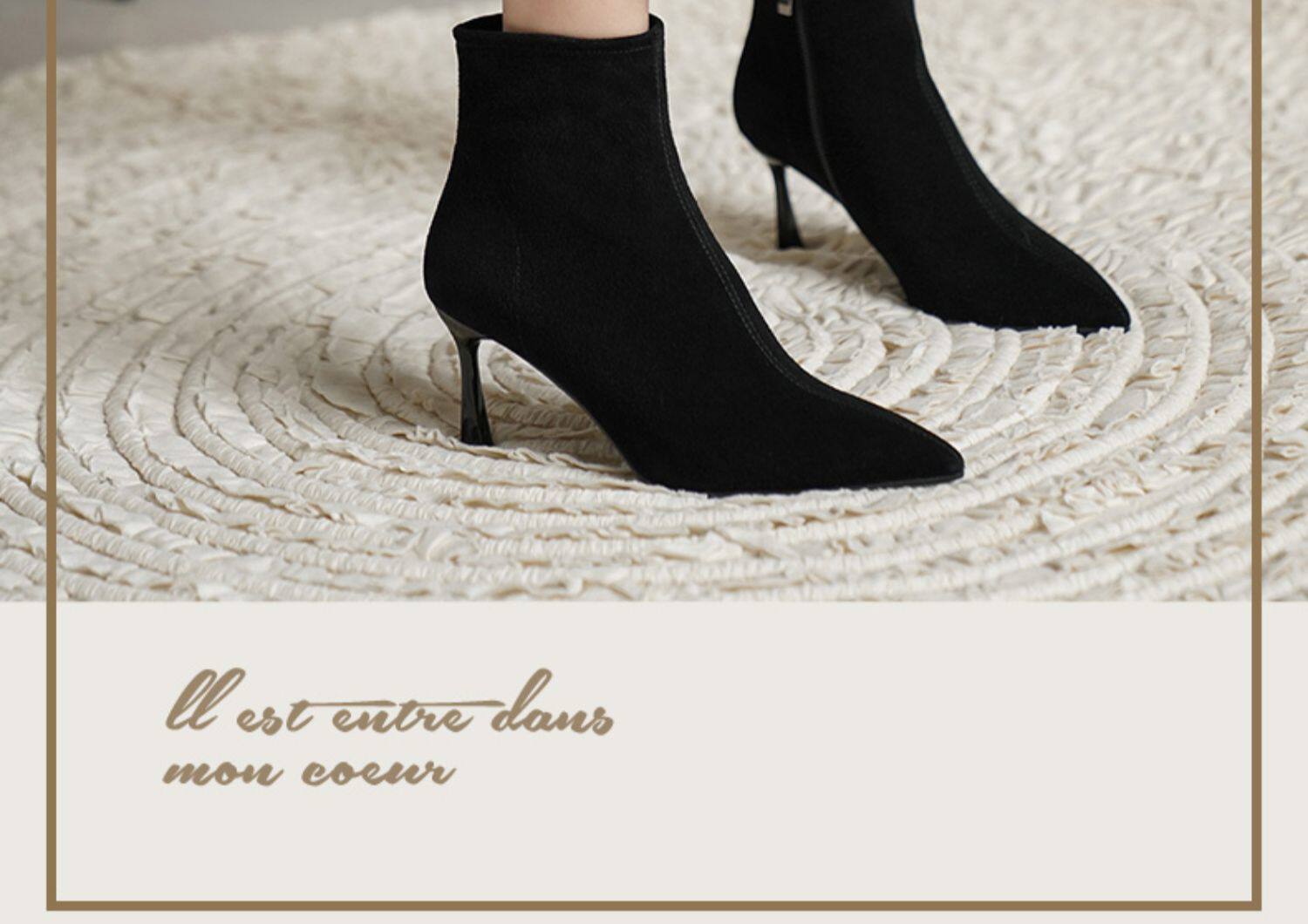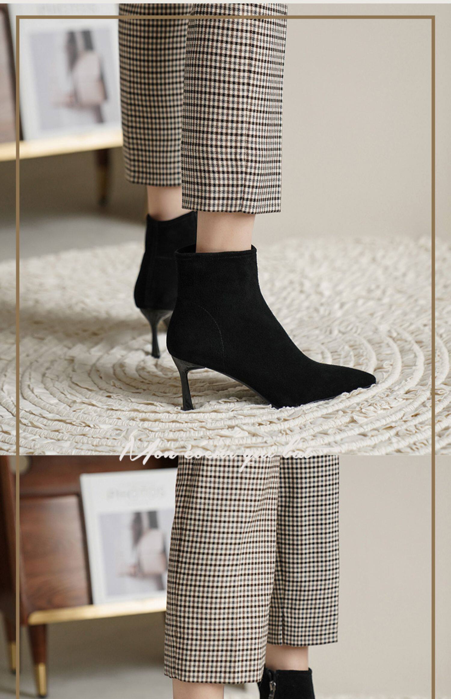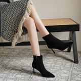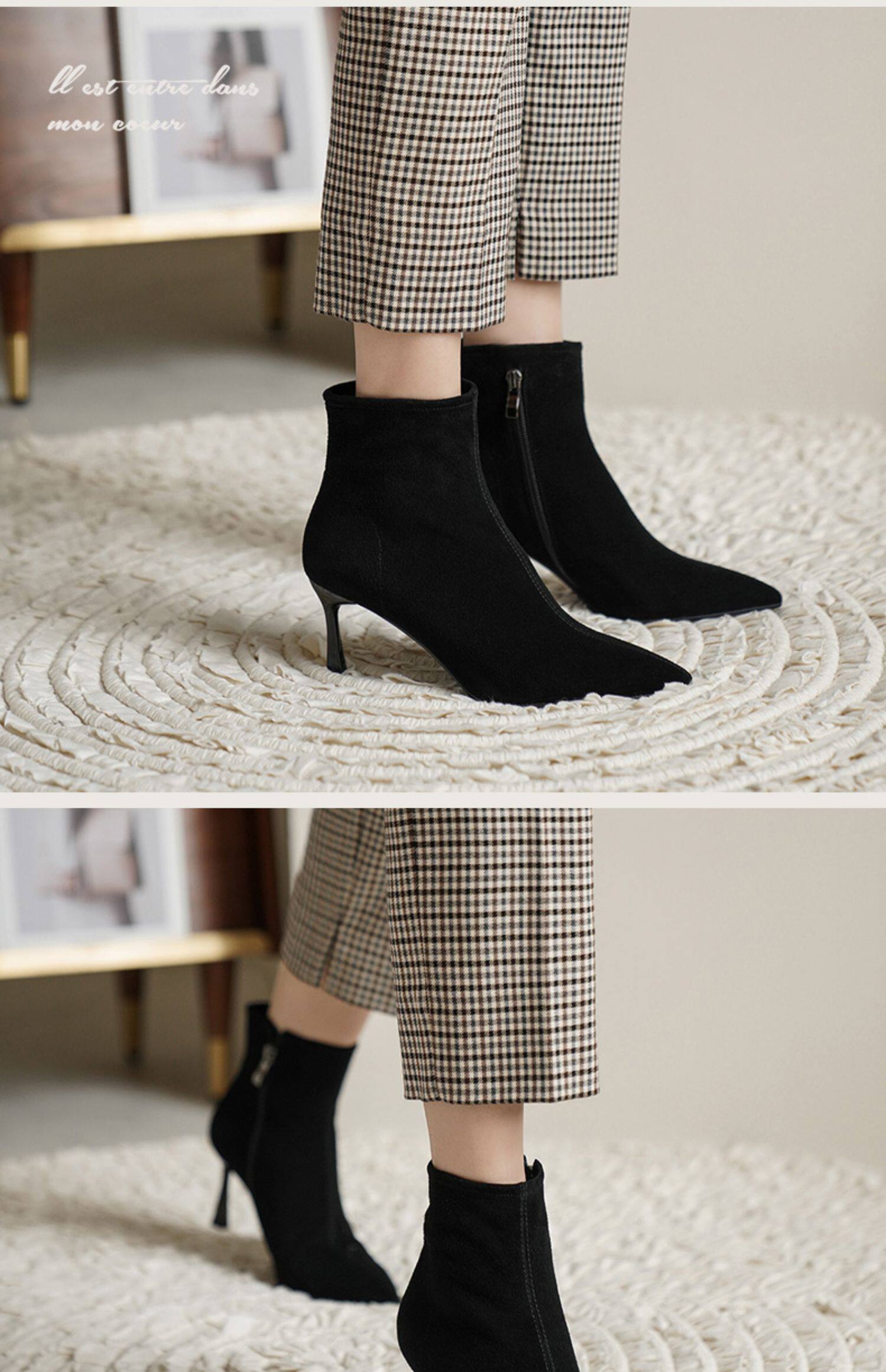 Нюдовые зимние короткие сапоги, матовые ботильоны с заостренным носом на высоком каблуке, светлые ботинки