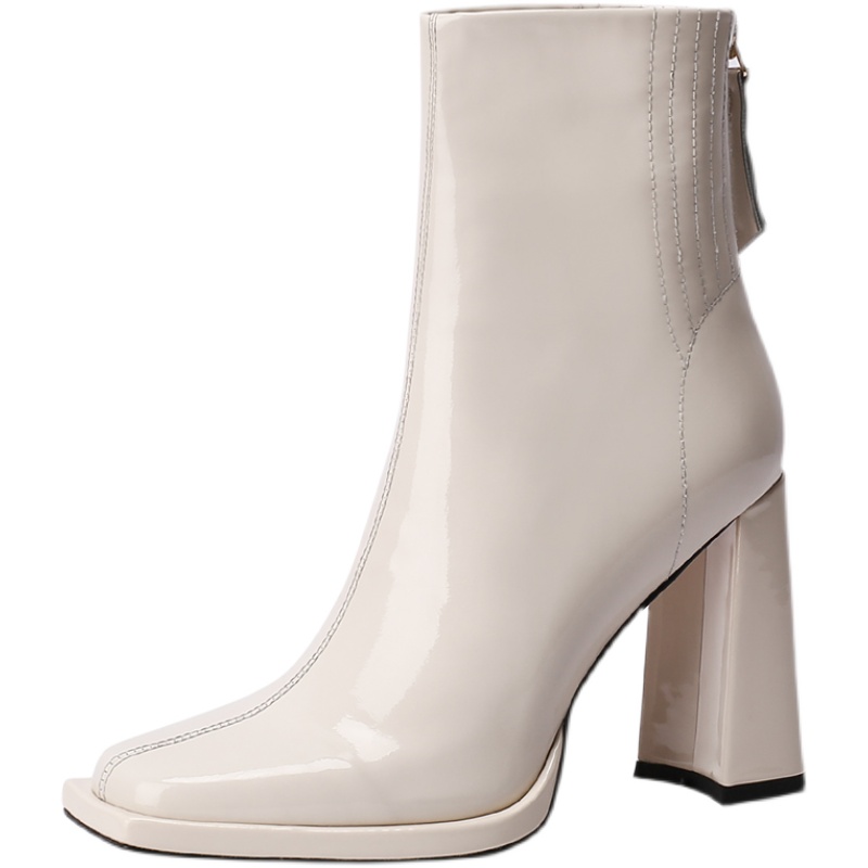 Демисезонные короткие сапоги, туфли на высоком каблуке, белые ботинки, 2024 года, европейский стиль, осенние, из натуральной кожи