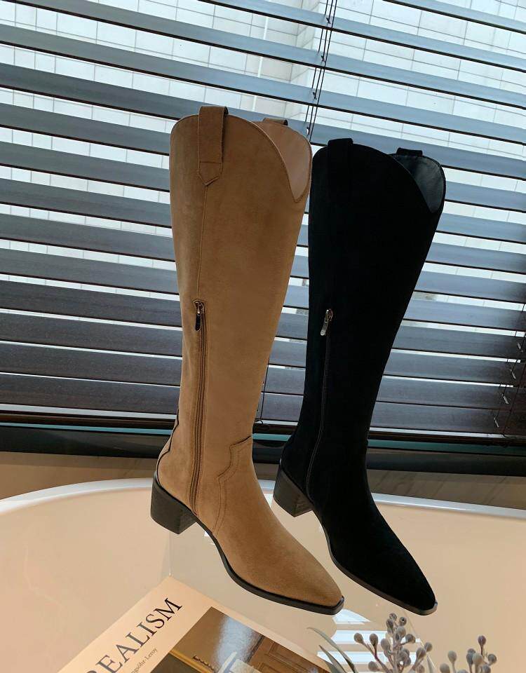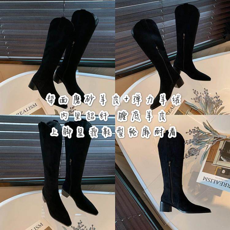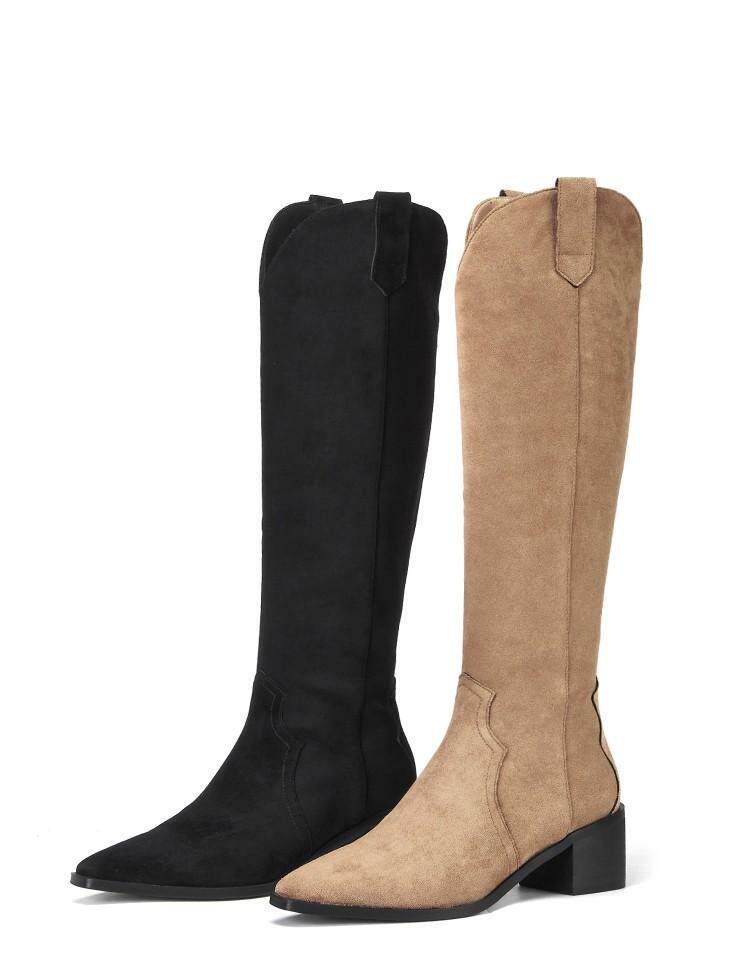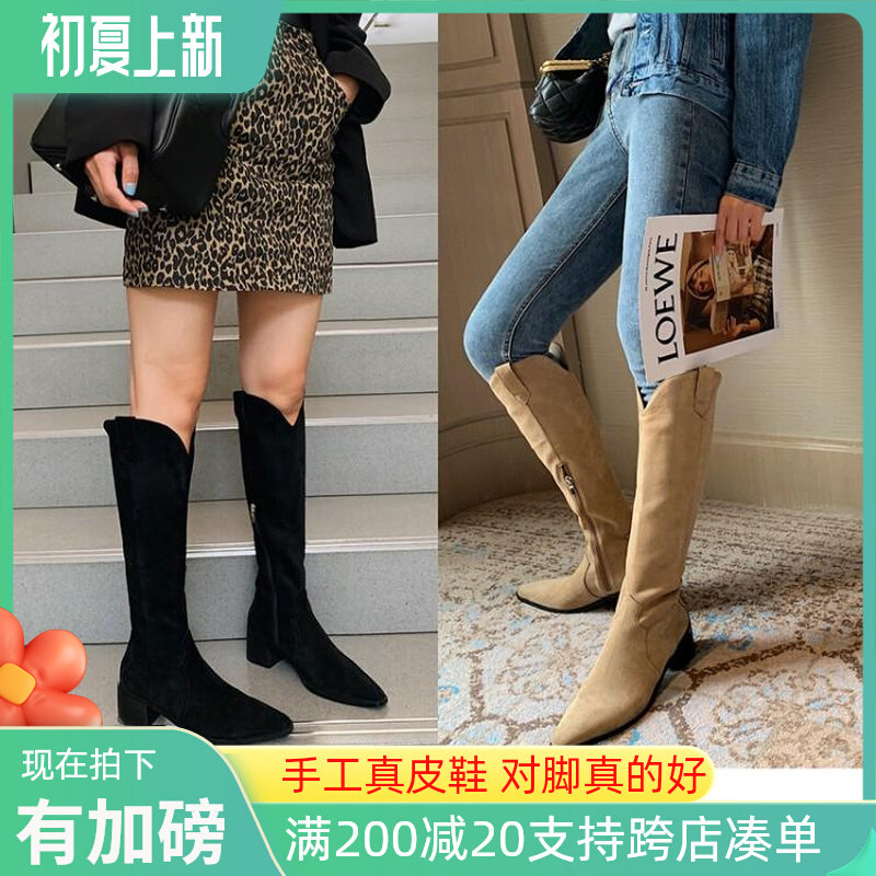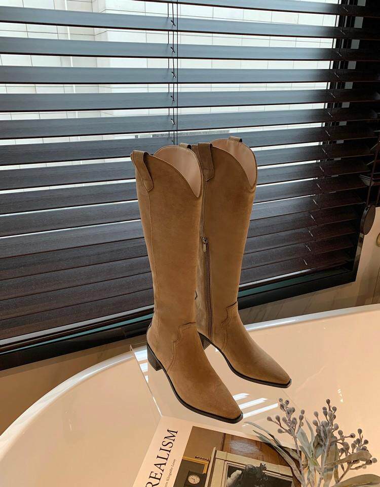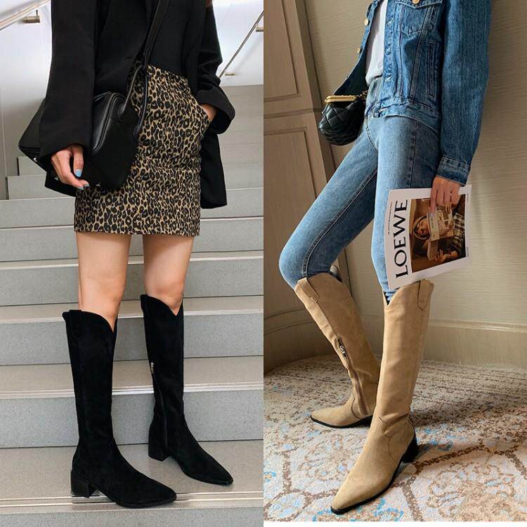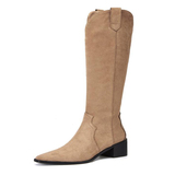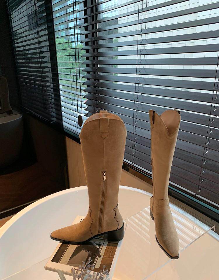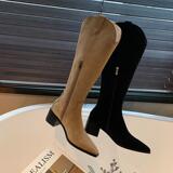 Джинсовые абрикосовые высокие сапоги с заостренным носом, высокие ботинки, по фигуре