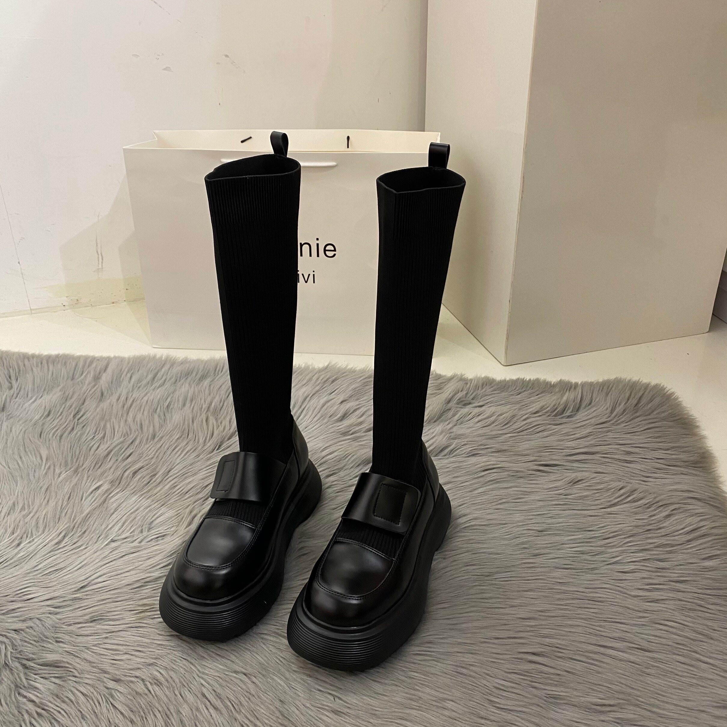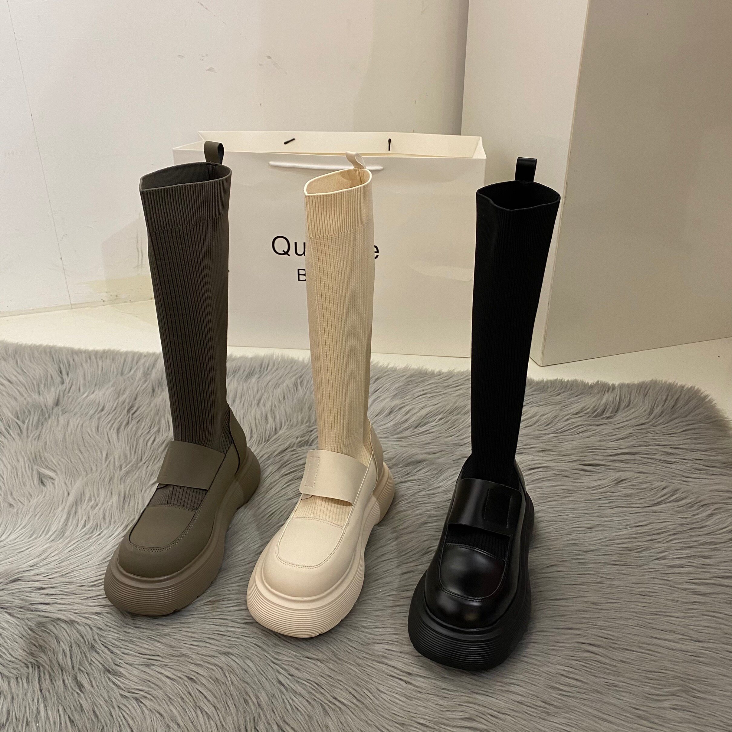 Утепленные высокие сапоги на платформе, трикотажные эластичные носки, подходит для подростков