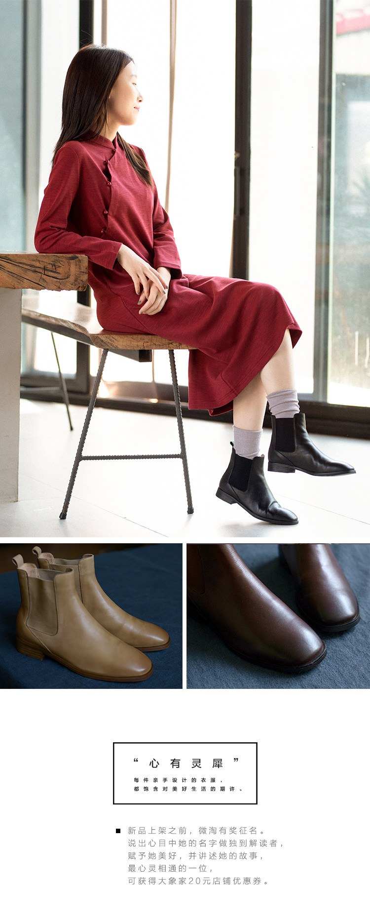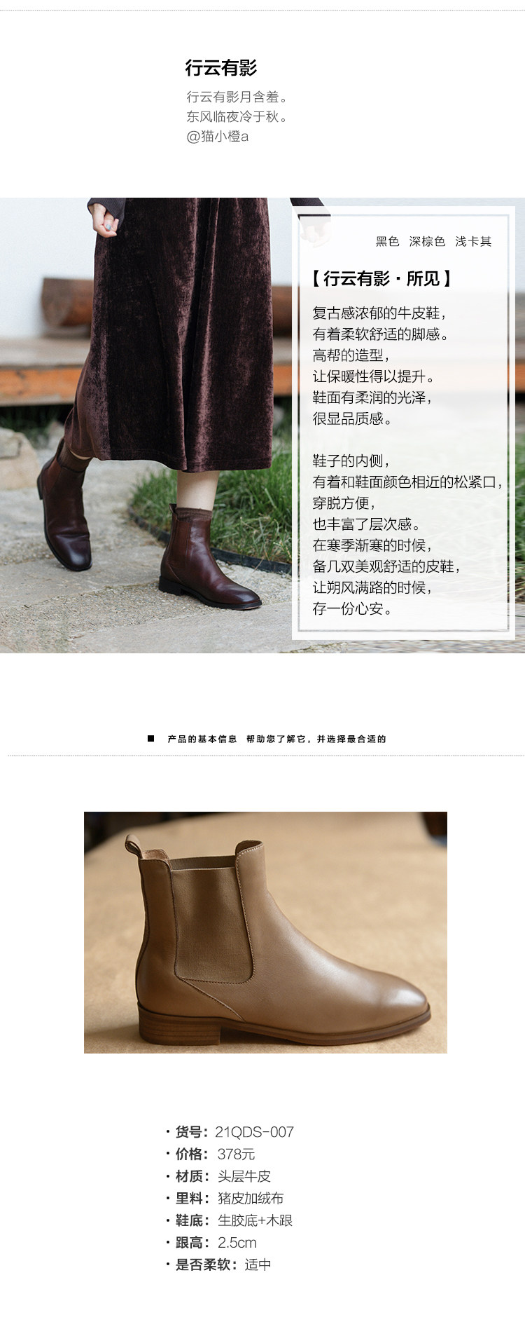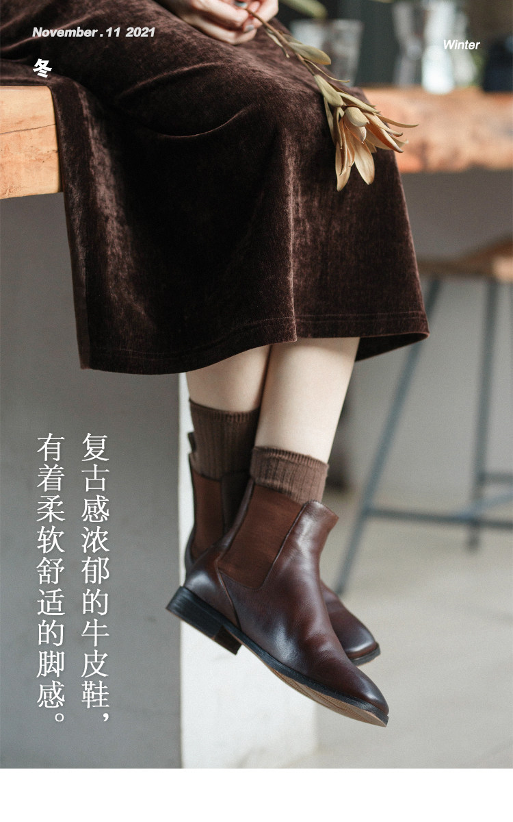 21QDS-007 [Синьюн имеет тень] Винтажный и нежный литературный художник и бархатные короткие ботинки в прошлом и настоящем