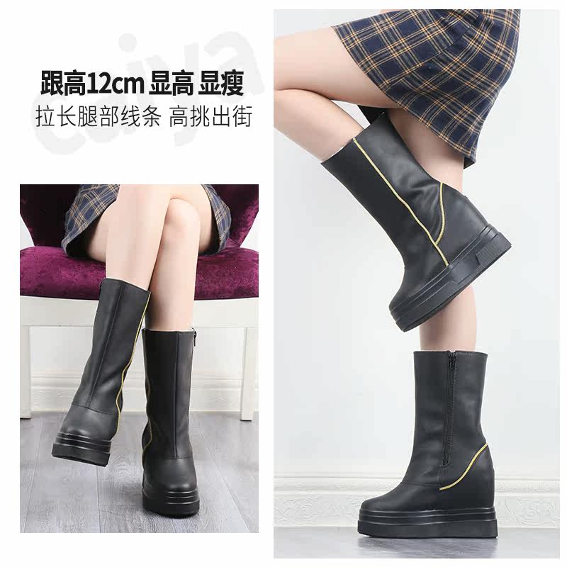 Высокие сапоги, утепленные ботинки с молнией, подходит для подростков, средней длины, коллекция 2023, 12см