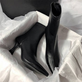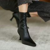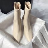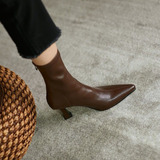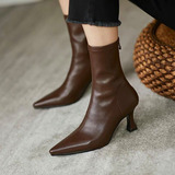 Коричневые высокие флисовые зимние эластичные короткие сапоги с заостренным носом с молнией, 2024 года, в корейском стиле