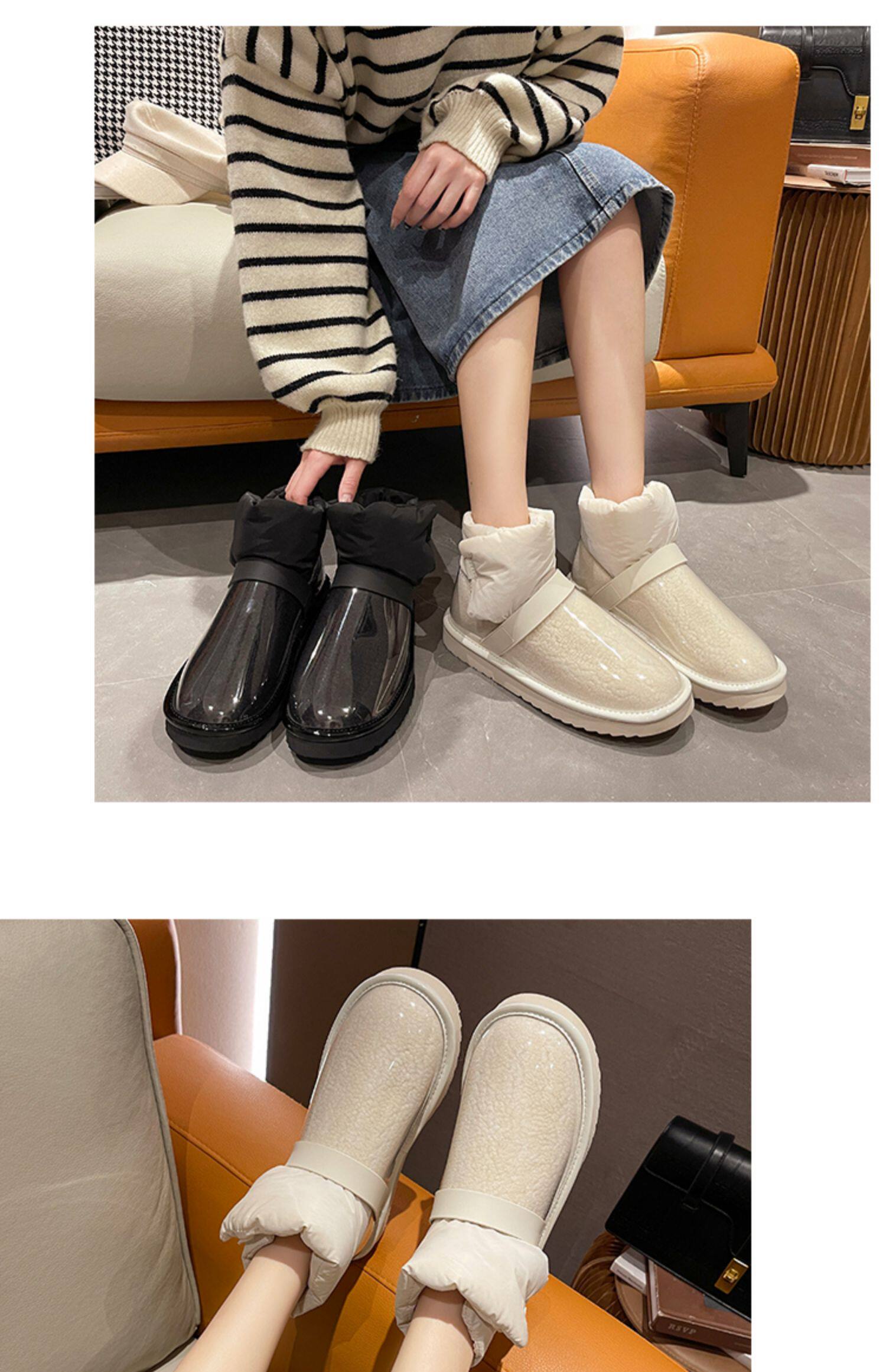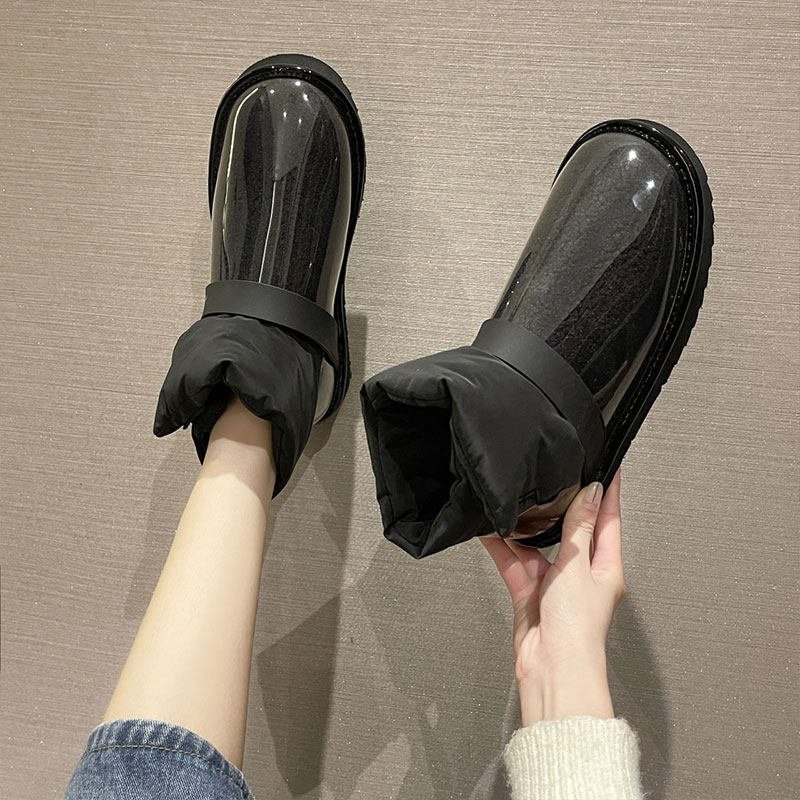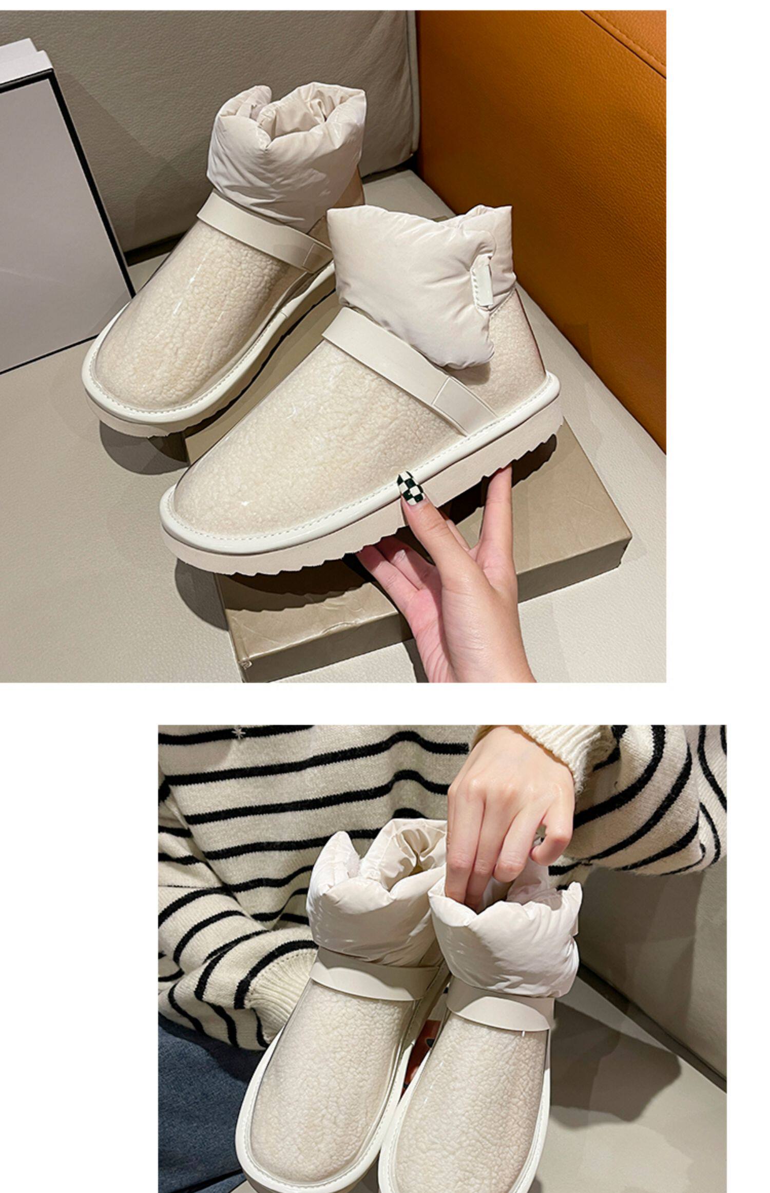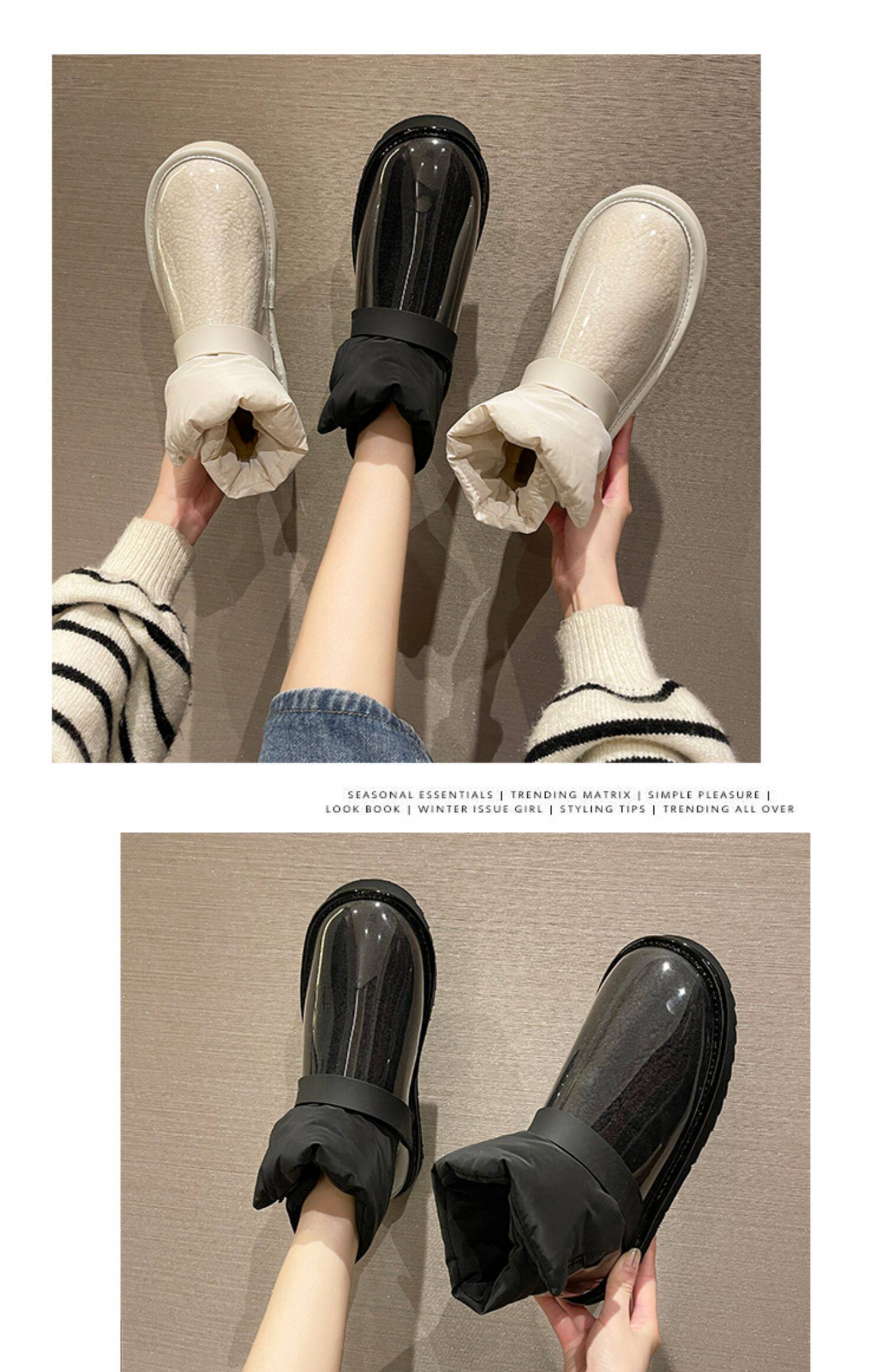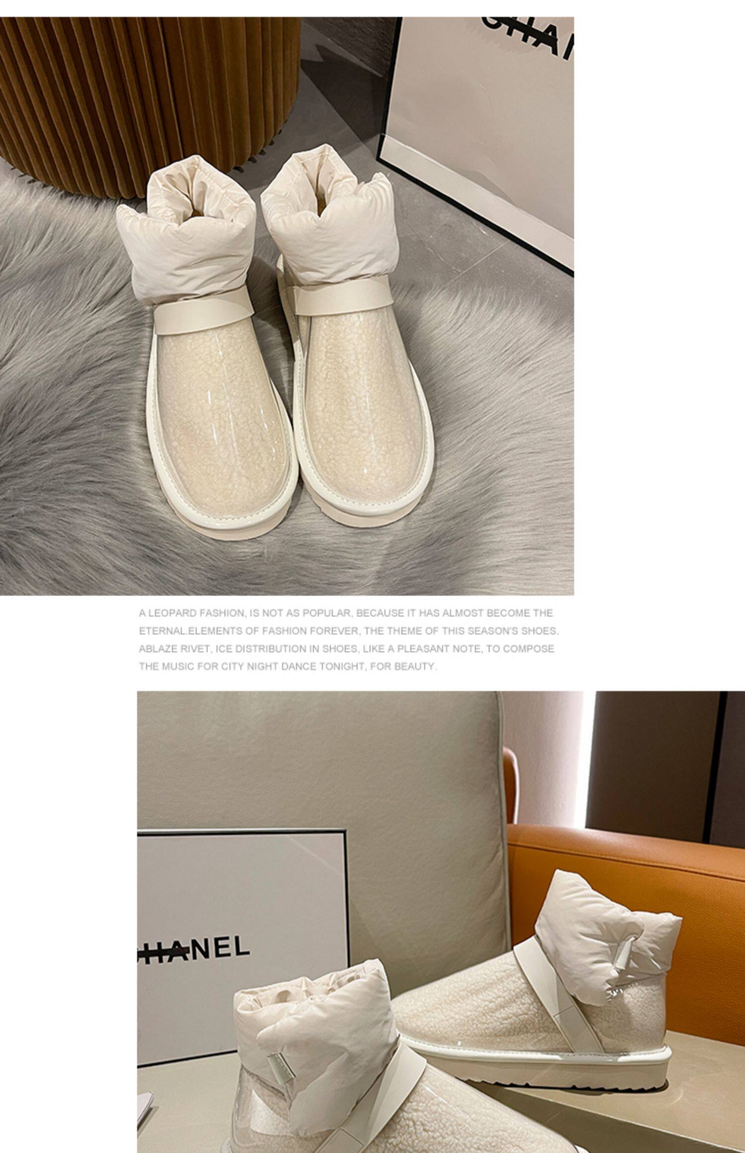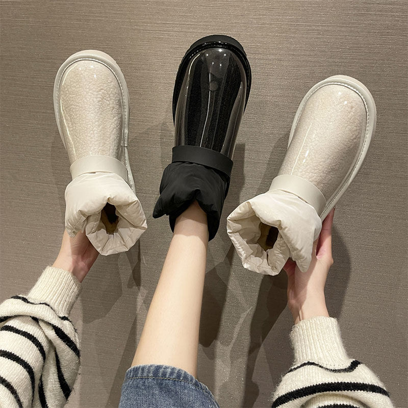 Снежные ботинки Женская зима 2021 Новые прозрачные водонепроницаемые мех интегрированный на северо -восток сгущенным и бархатным хлопчатобумажной рубашкой сапоги