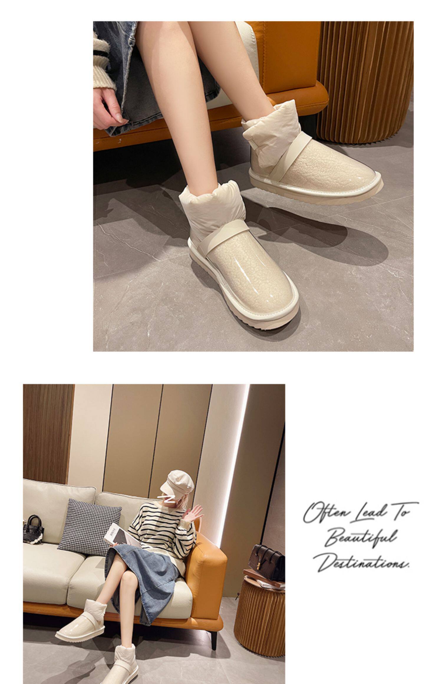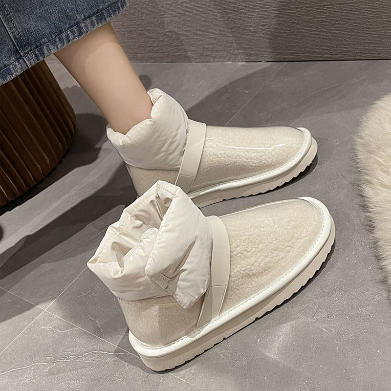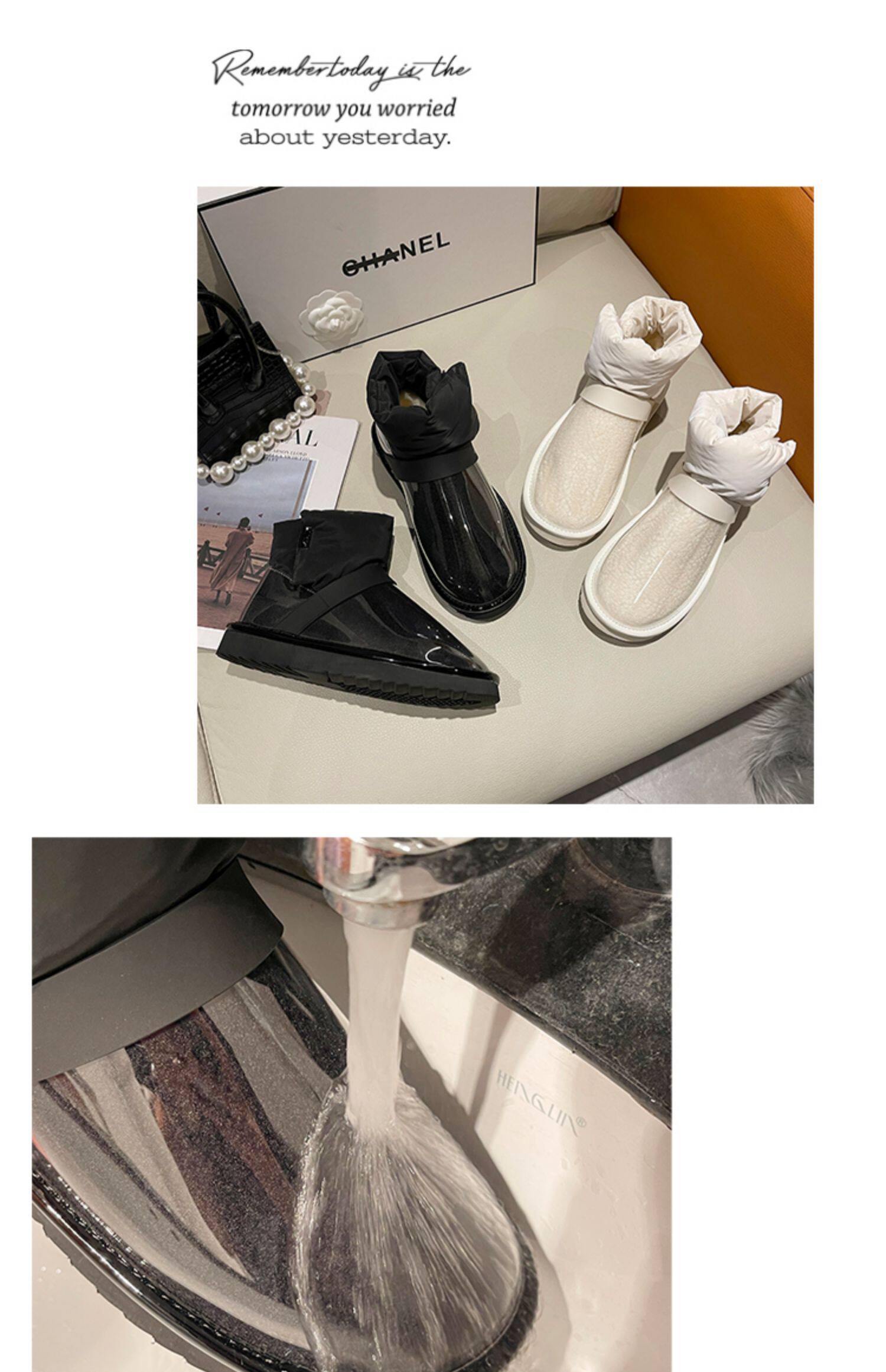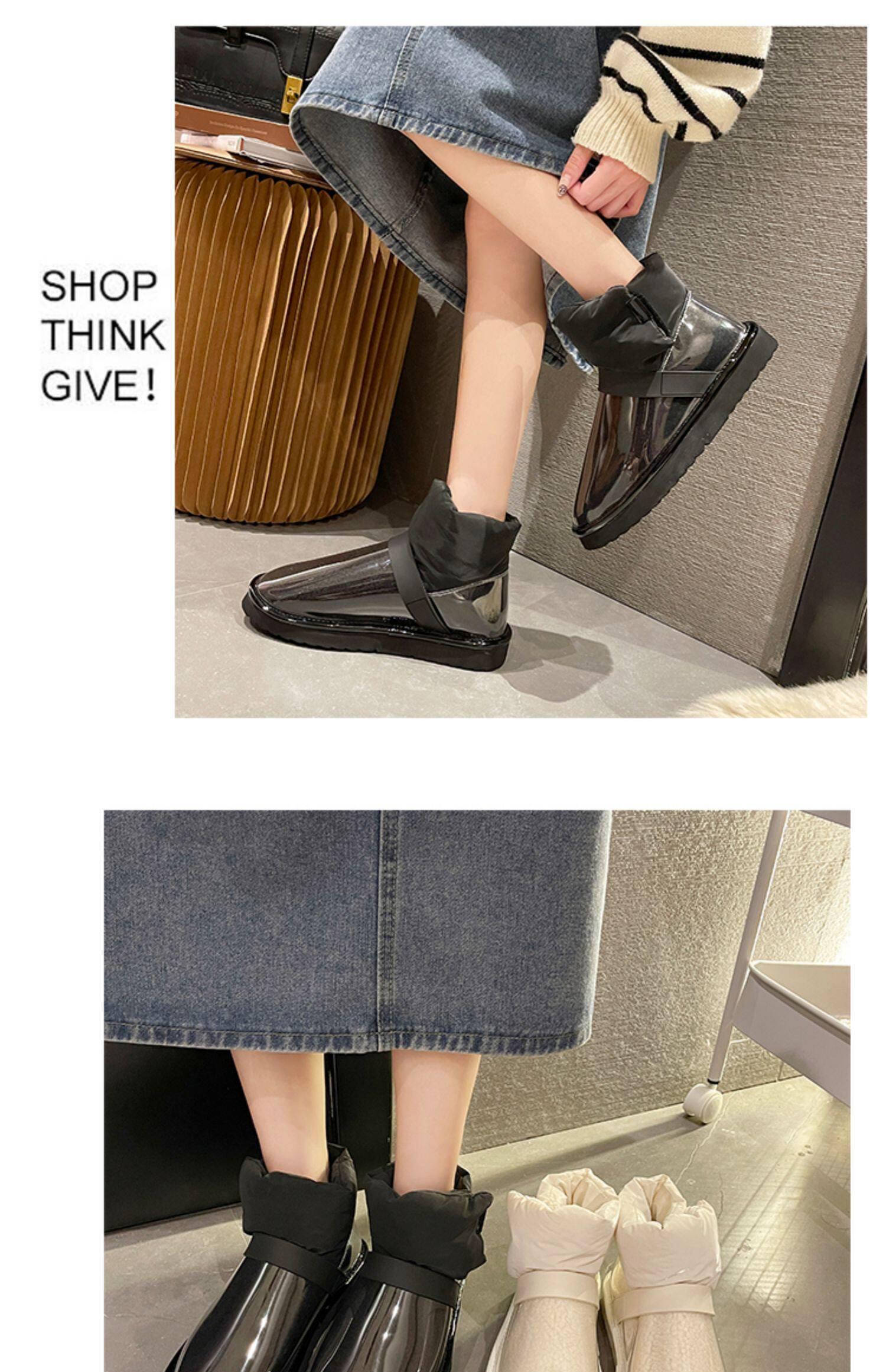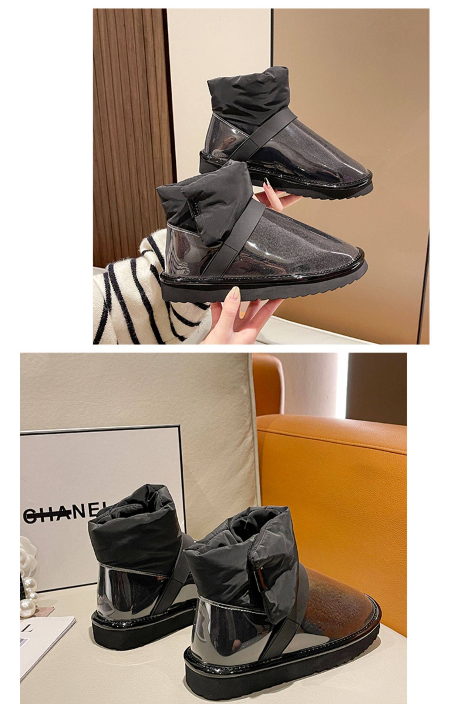 Снежные ботинки Женская зима 2021 Новые прозрачные водонепроницаемые мех интегрированный на северо -восток сгущенным и бархатным хлопчатобумажной рубашкой сапоги