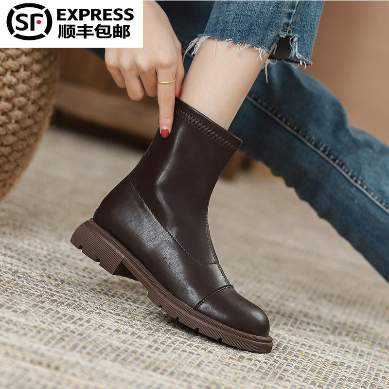 Martens, коричневый шлем в английском стиле, короткие сапоги, весенние универсальные ботинки, из натуральной кожи, коллекция 2023, в британском стиле