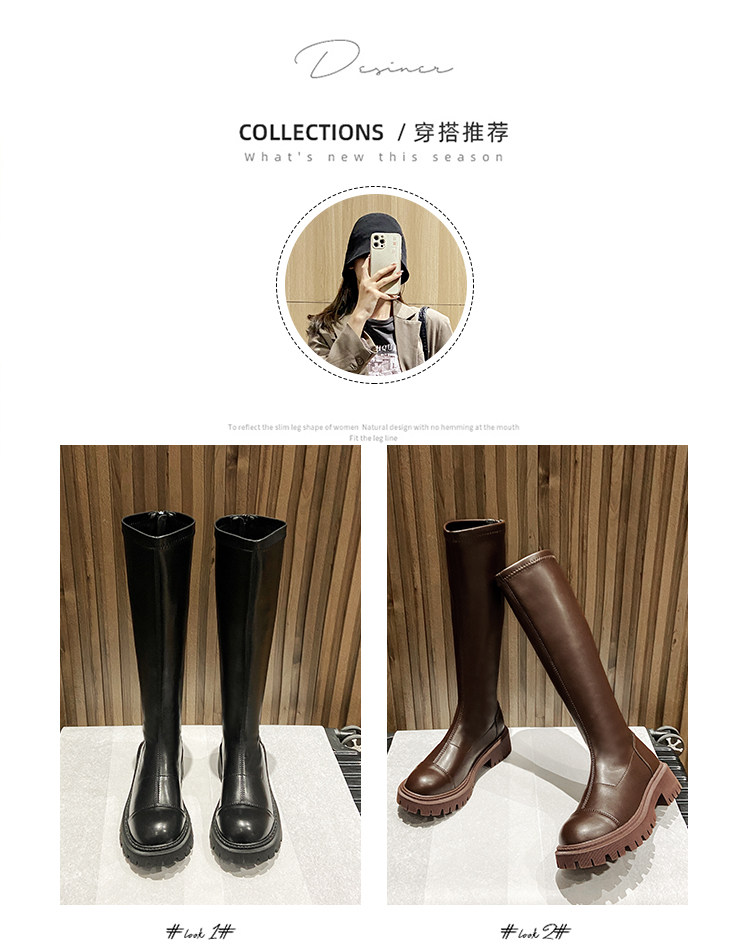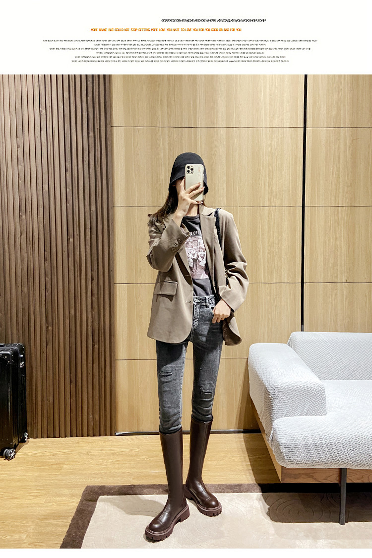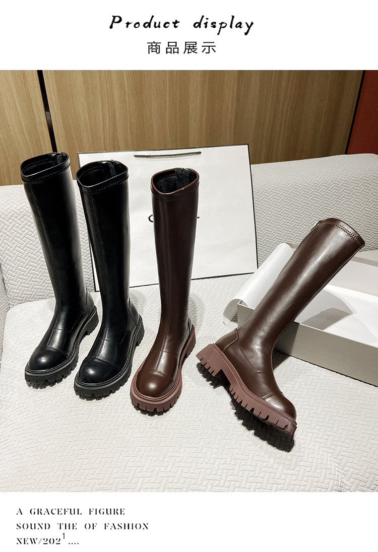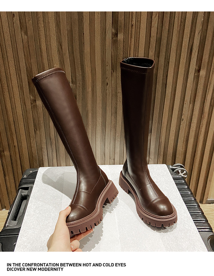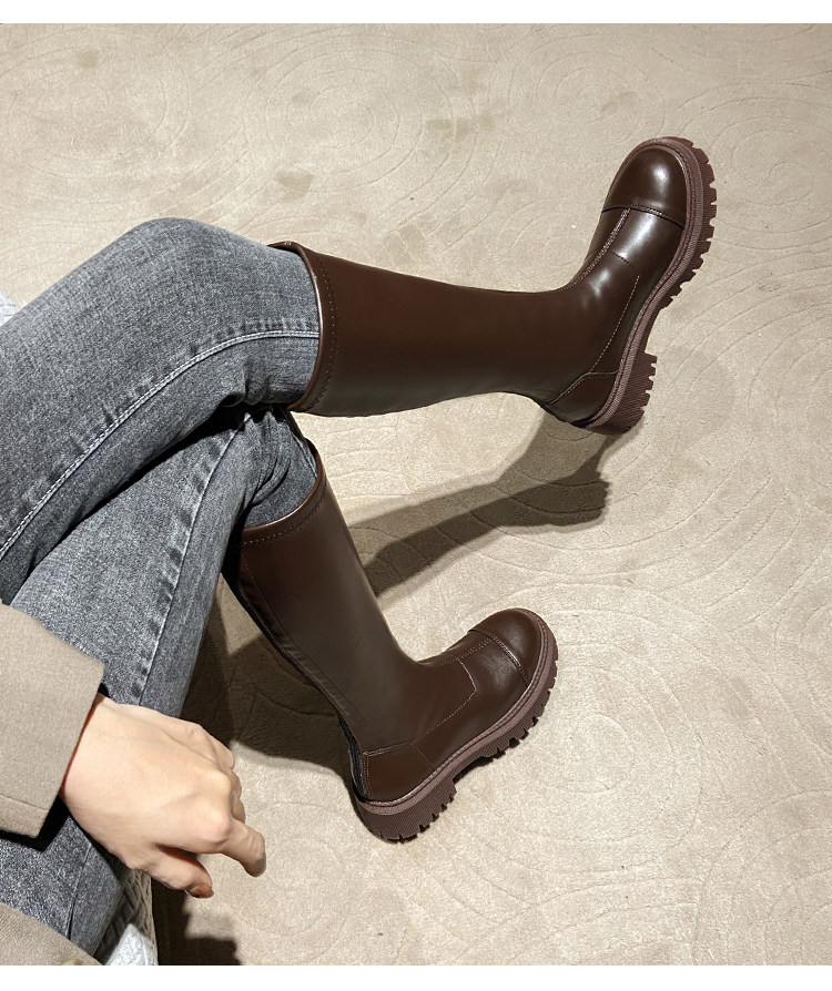 Коричневые высокие высокие сапоги, демисезонные утепленные ботинки на платформе, подходит для подростков