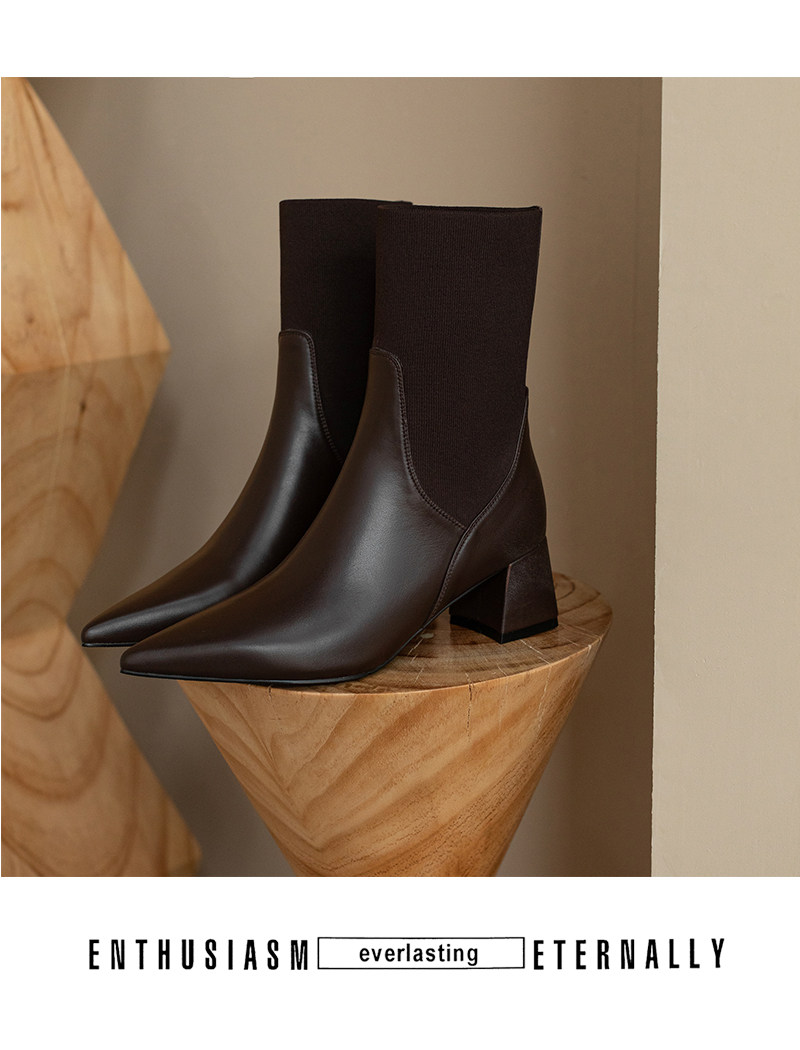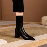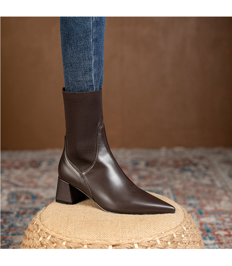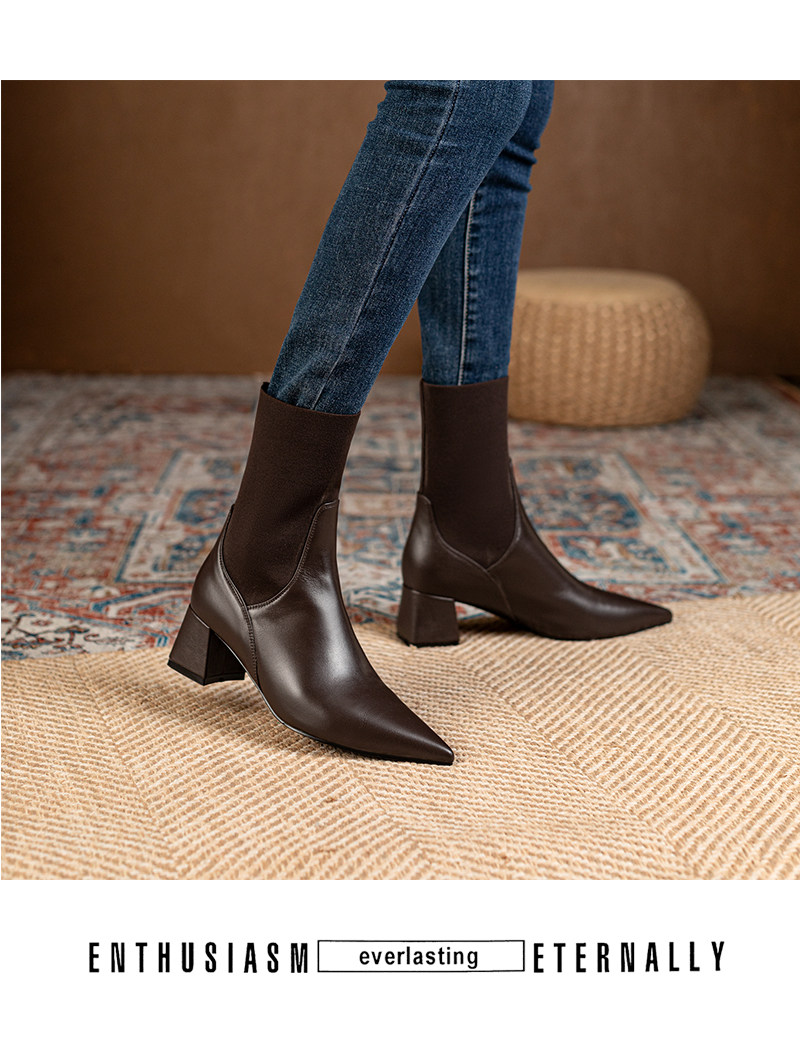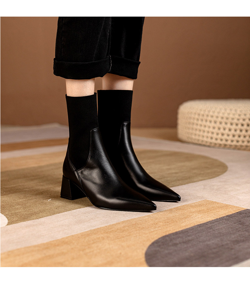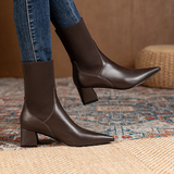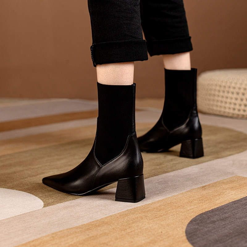 Эластичные демисезонные универсальные высокие сапоги с заостренным носом в английском стиле, из натуральной кожи, в британском стиле, средней длины