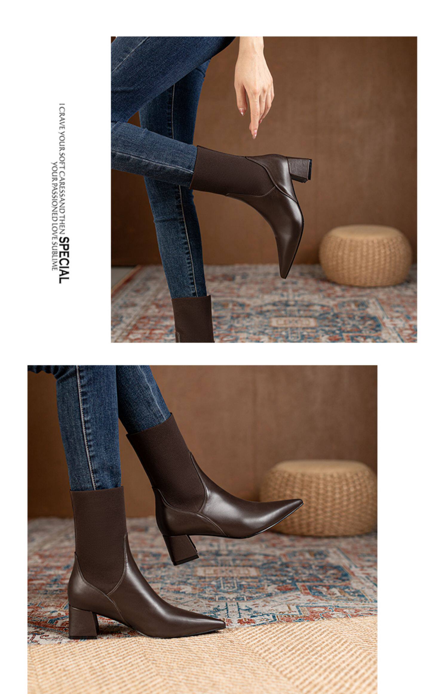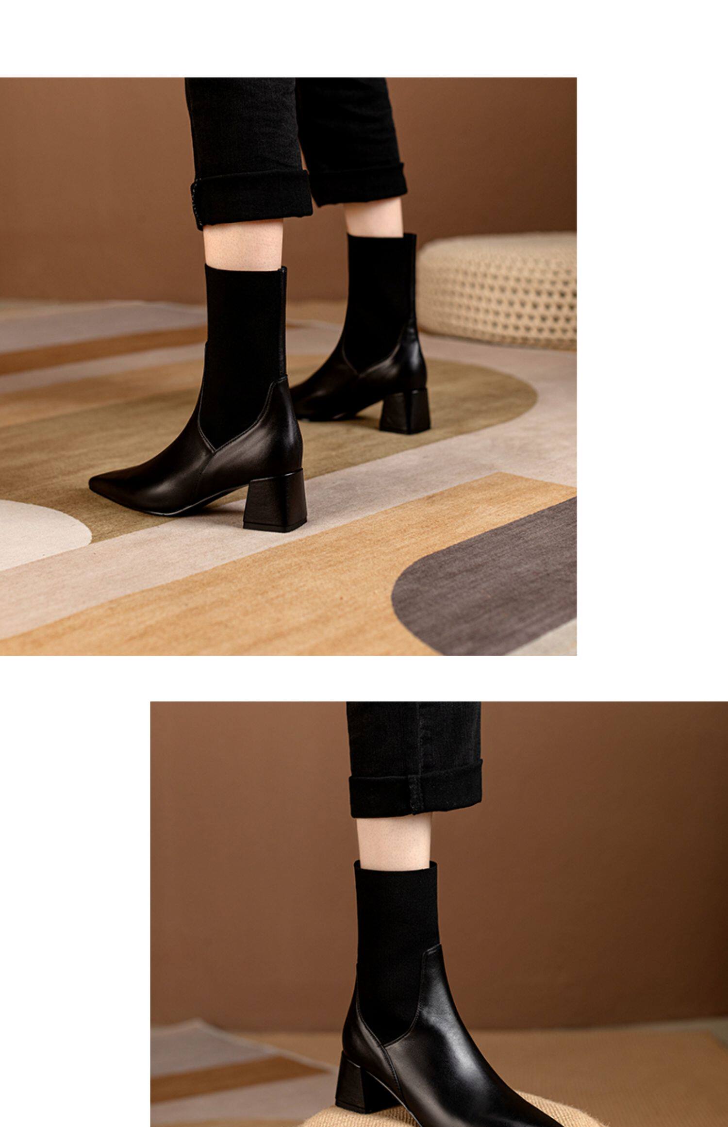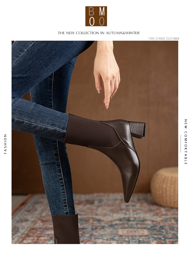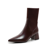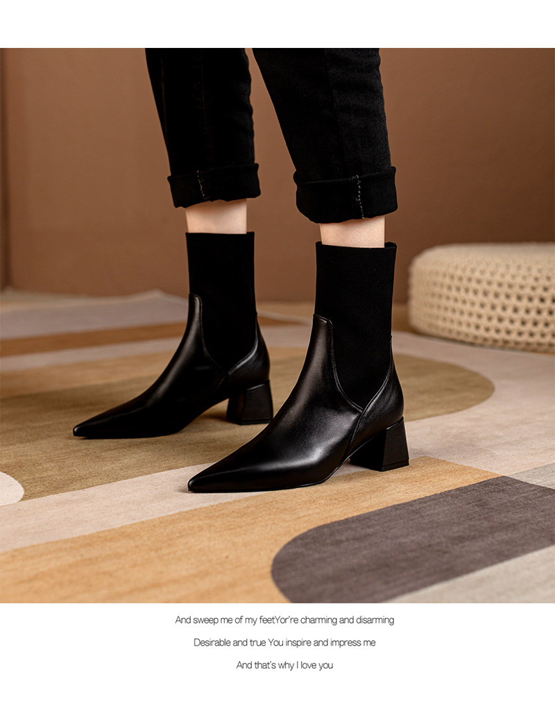 Эластичные демисезонные универсальные высокие сапоги с заостренным носом в английском стиле, из натуральной кожи, в британском стиле, средней длины
