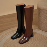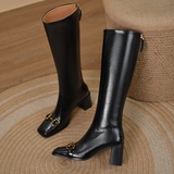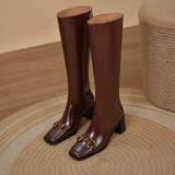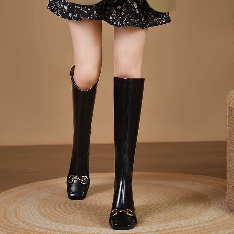 Металлические высокие сапоги, высокие кожаные ботинки, из натуральной кожи, по фигуре