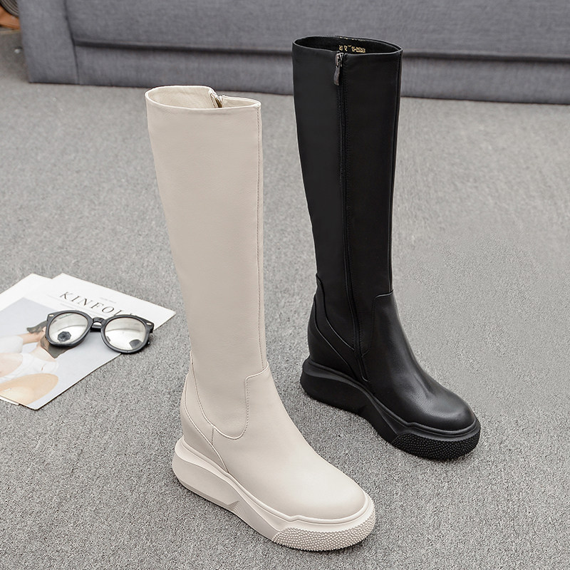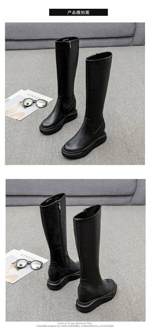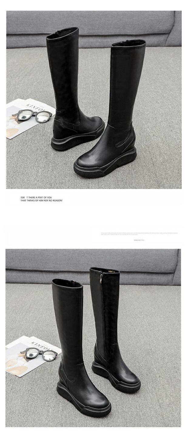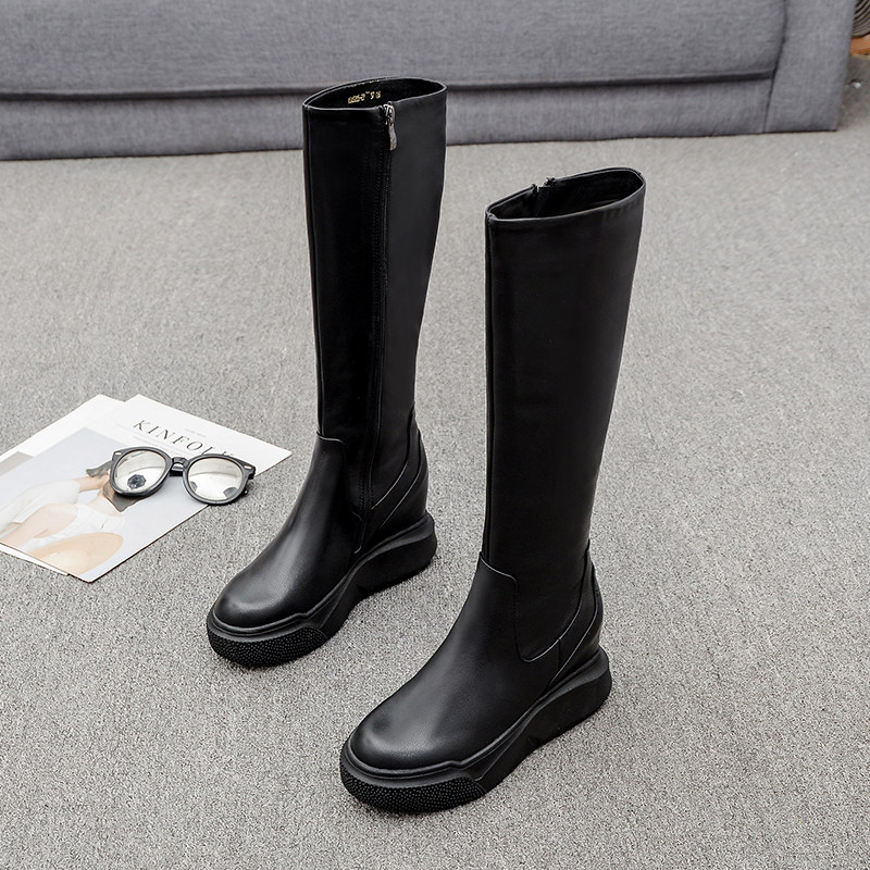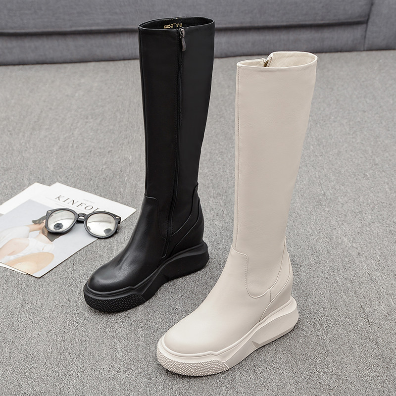 Демисезонные высокие высокие сапоги на платформе, европейский стиль, из натуральной кожи, подходит для подростков, по фигуре