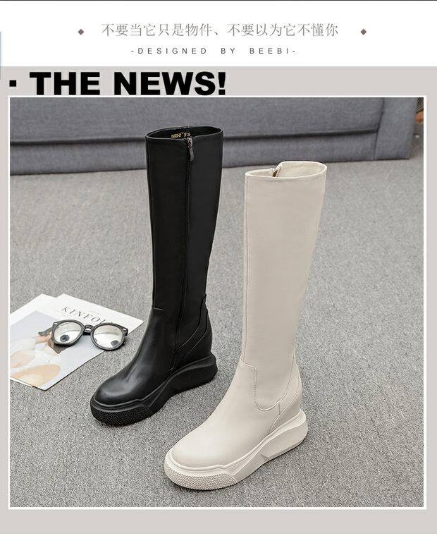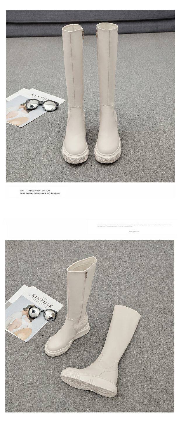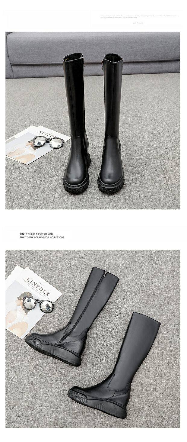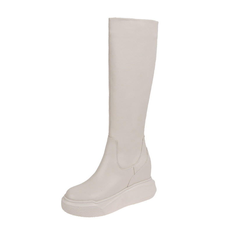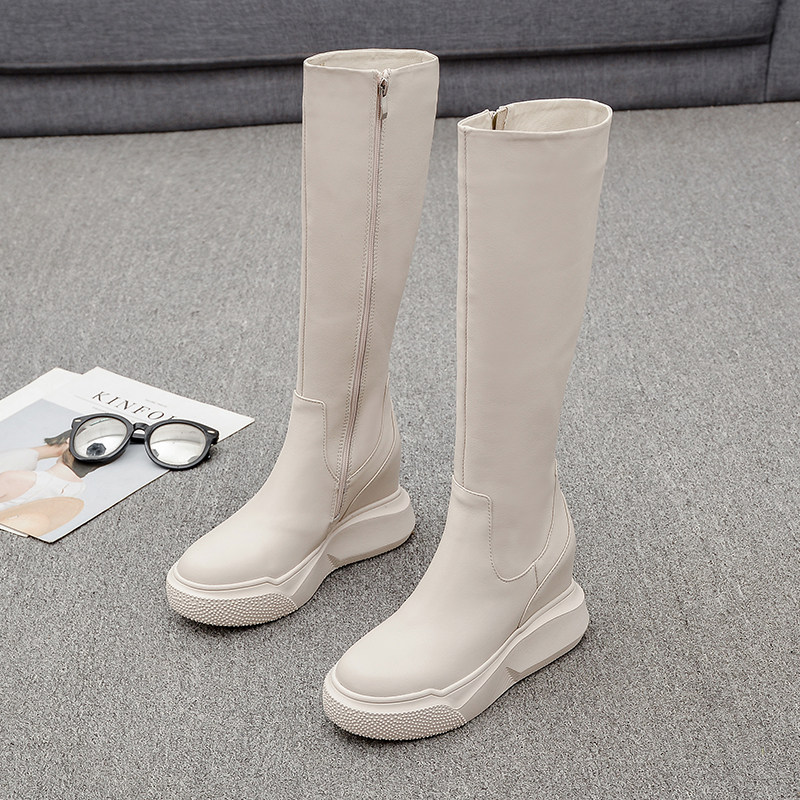 Демисезонные высокие высокие сапоги на платформе, европейский стиль, из натуральной кожи, подходит для подростков, по фигуре