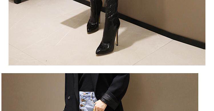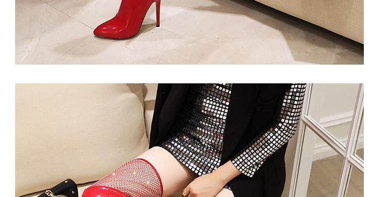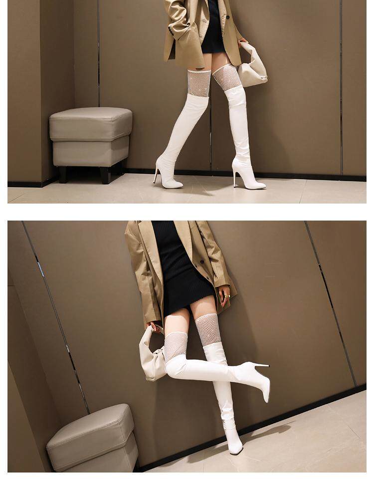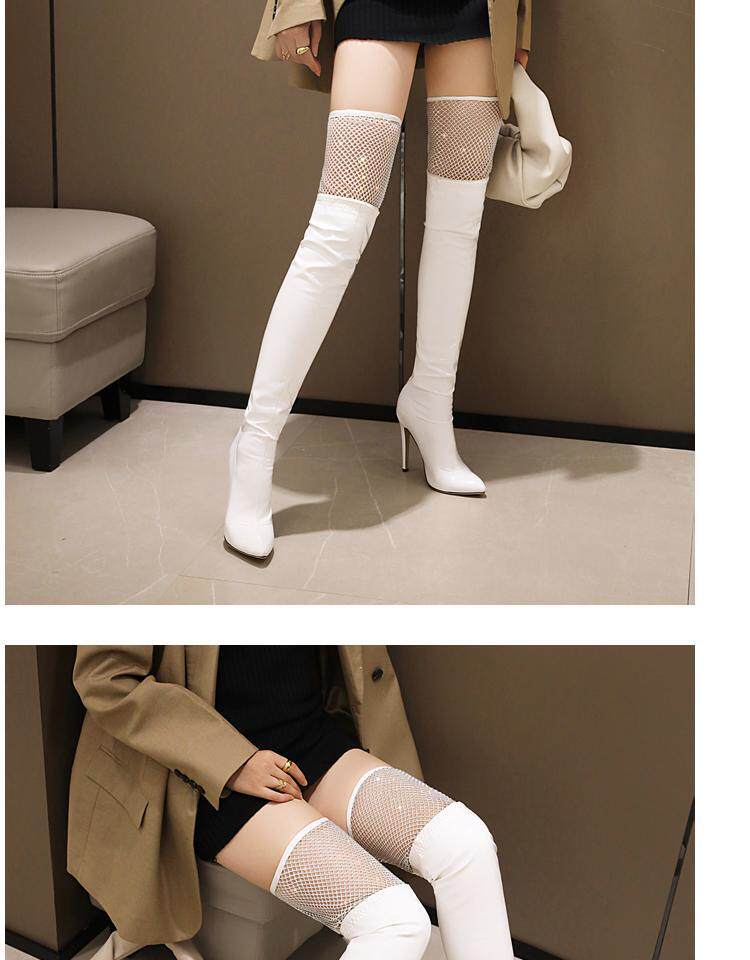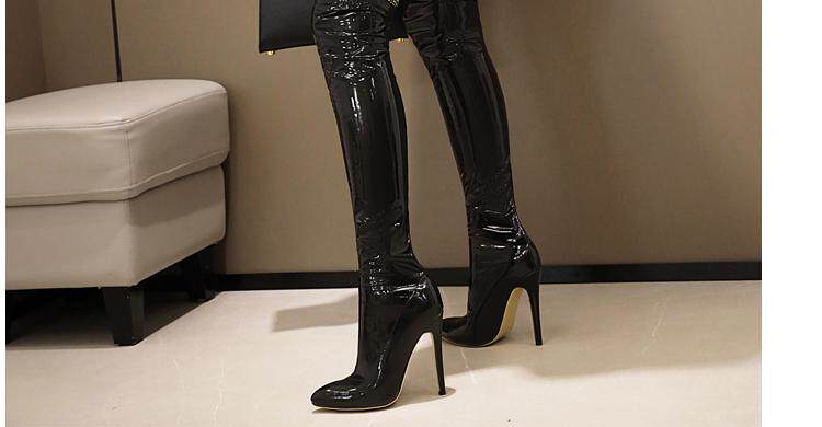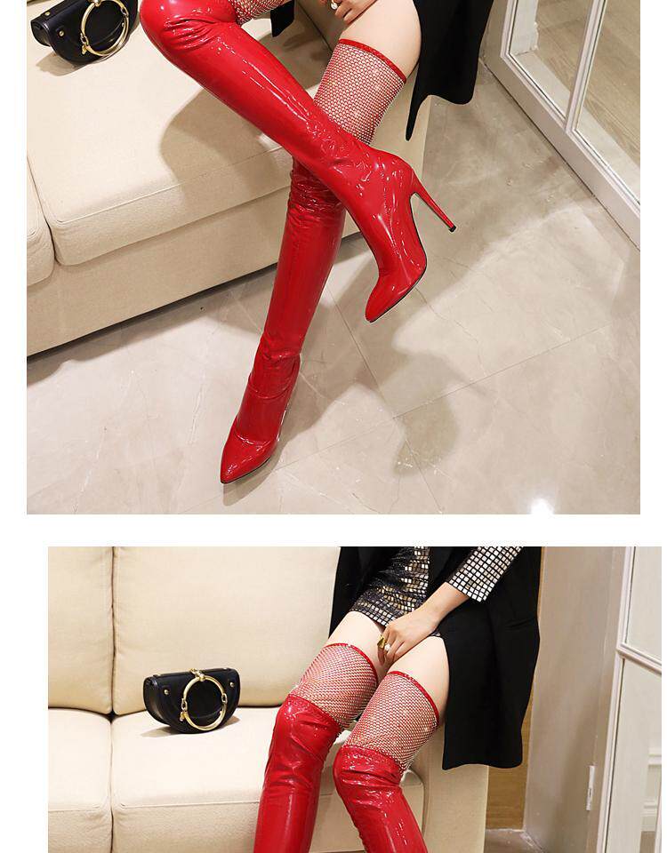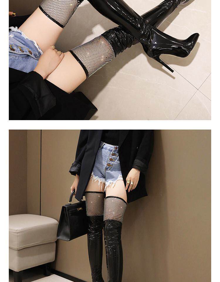 Купить продукцию Европейские и американские узкие ботфорты, кружевные стразы, удлиненные красивые ноги, высокие каблуки, эластичные лаковые сапоги в стиле пэчворк, закрывающие ноги.