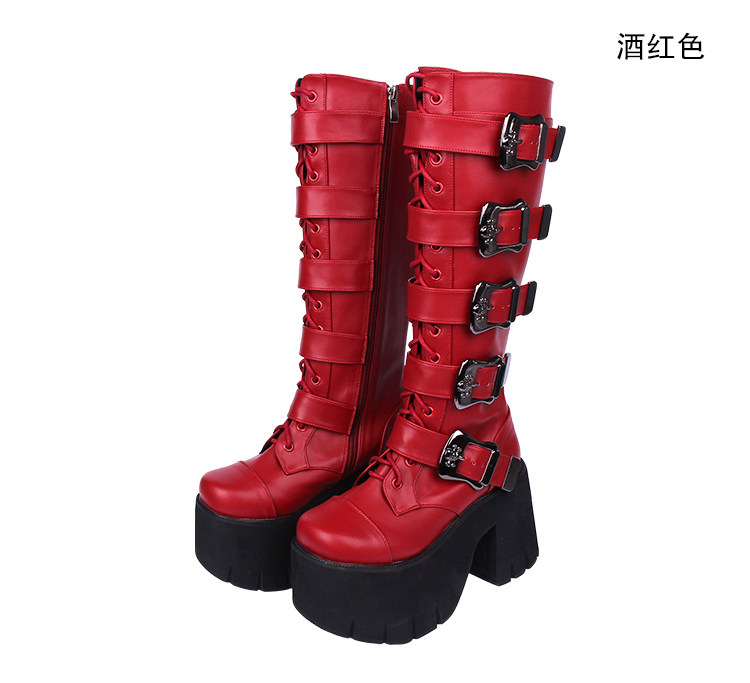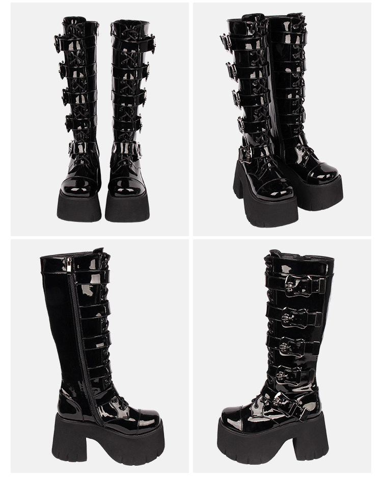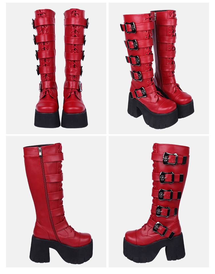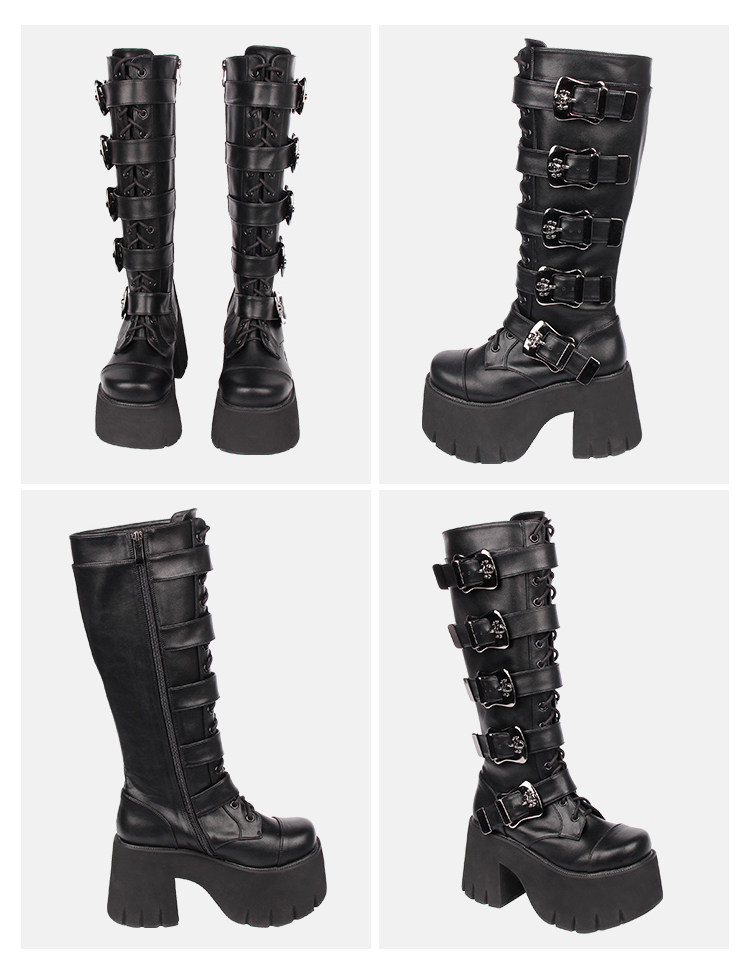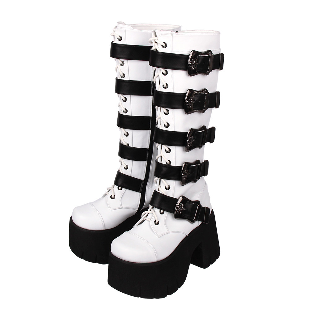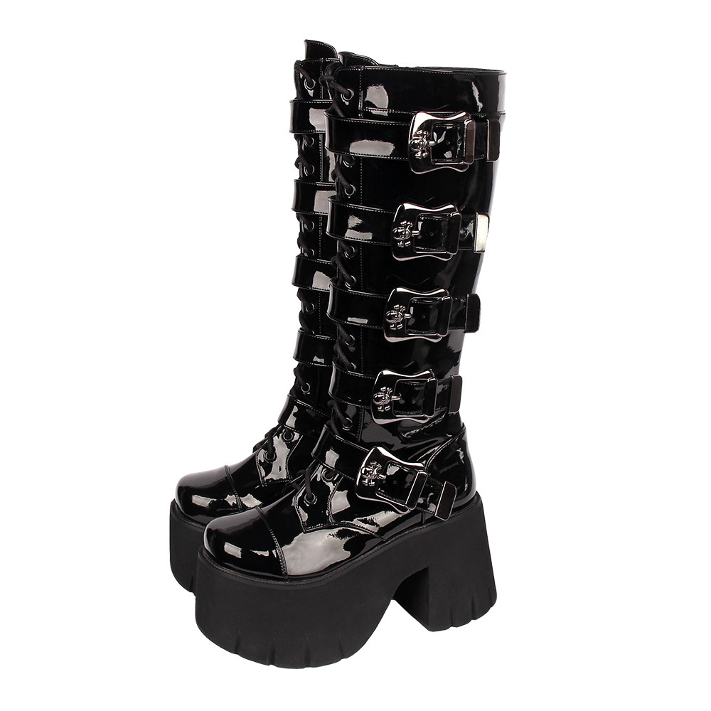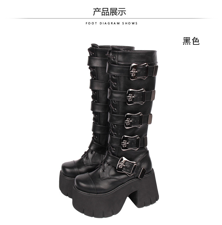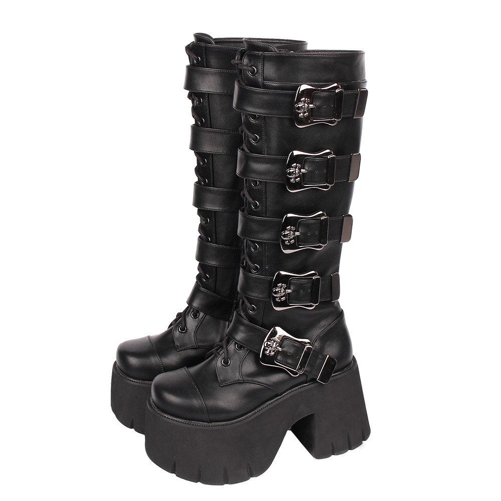 Весенний ремень, пряжка с молнией, высокие сапоги на платформе, в стиле панк, 10см