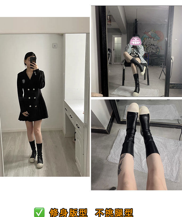 Round Owens Эластичные демисезонные высокие сапоги подходит для мужчин и женщин на платформе, средней длины, из натуральной кожи