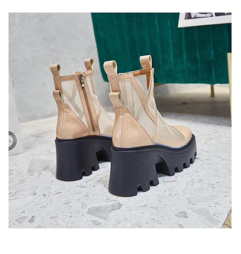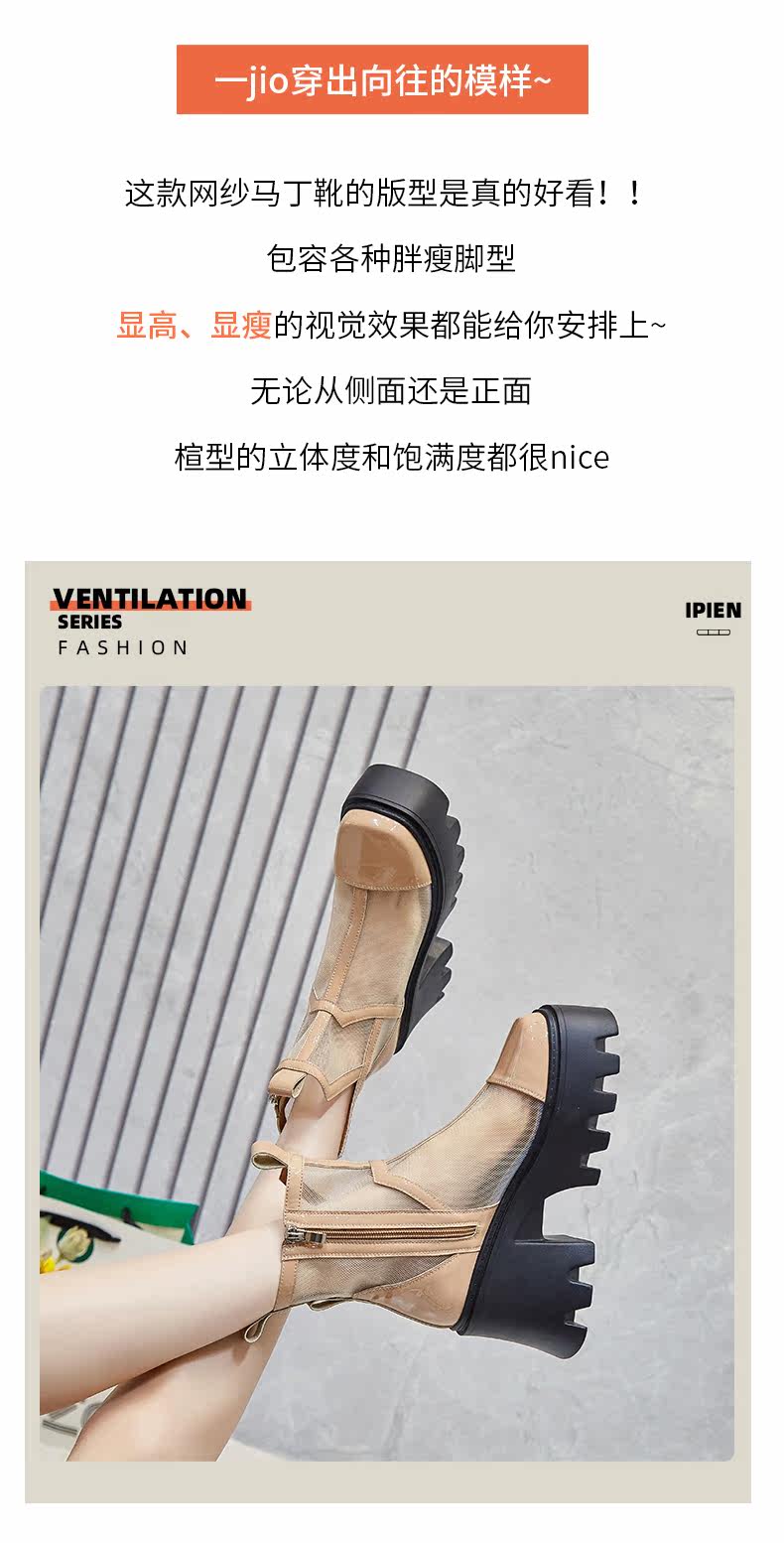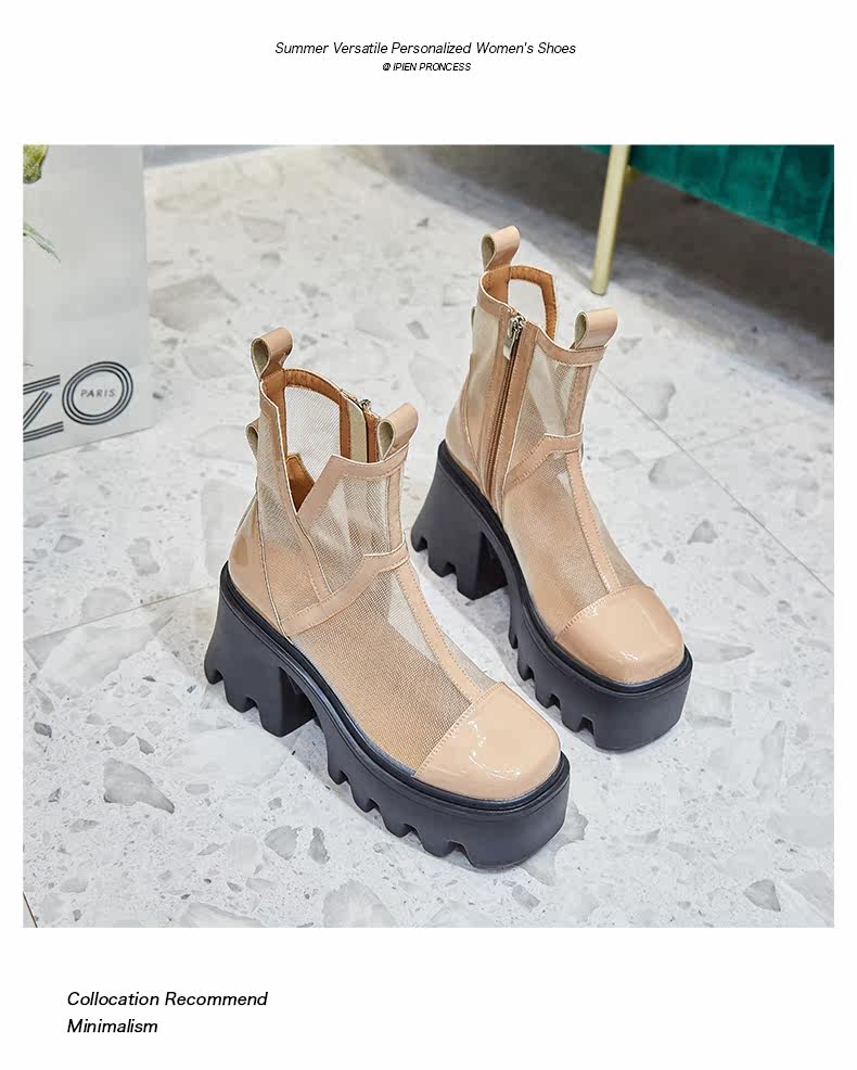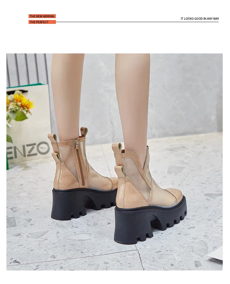 Martens, сетчатые тонкие дышащие короткие сапоги в английском стиле на высоком каблуке, коллекция 2022, в британском стиле