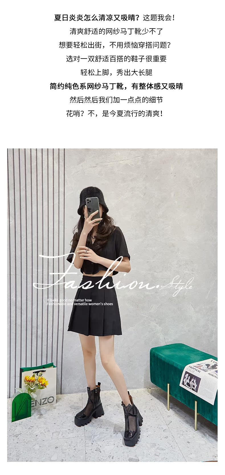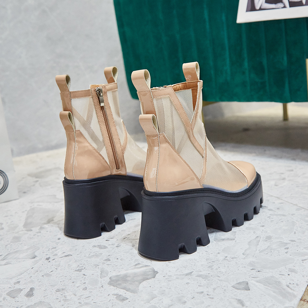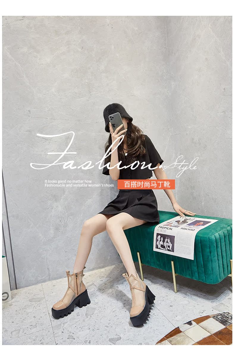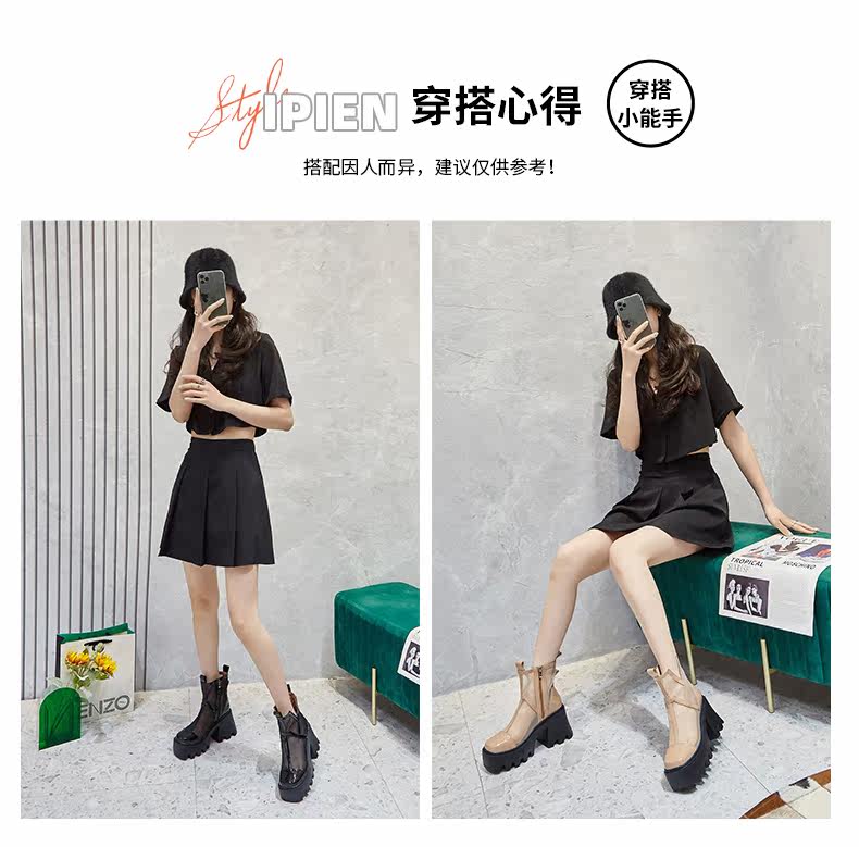 Martens, сетчатые тонкие дышащие короткие сапоги в английском стиле на высоком каблуке, коллекция 2022, в британском стиле