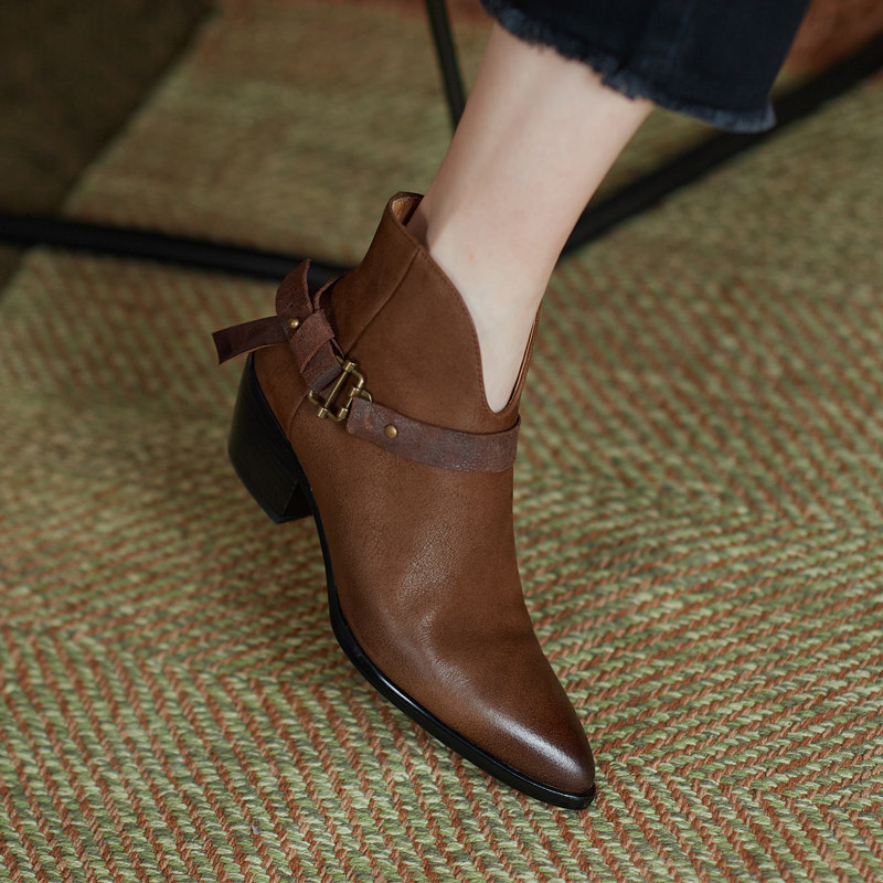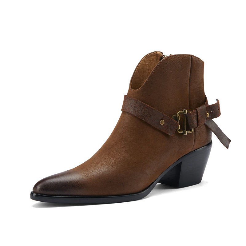 Martens, коричневые зимние короткие сапоги с заостренным носом, утепленные ботинки, ботильоны