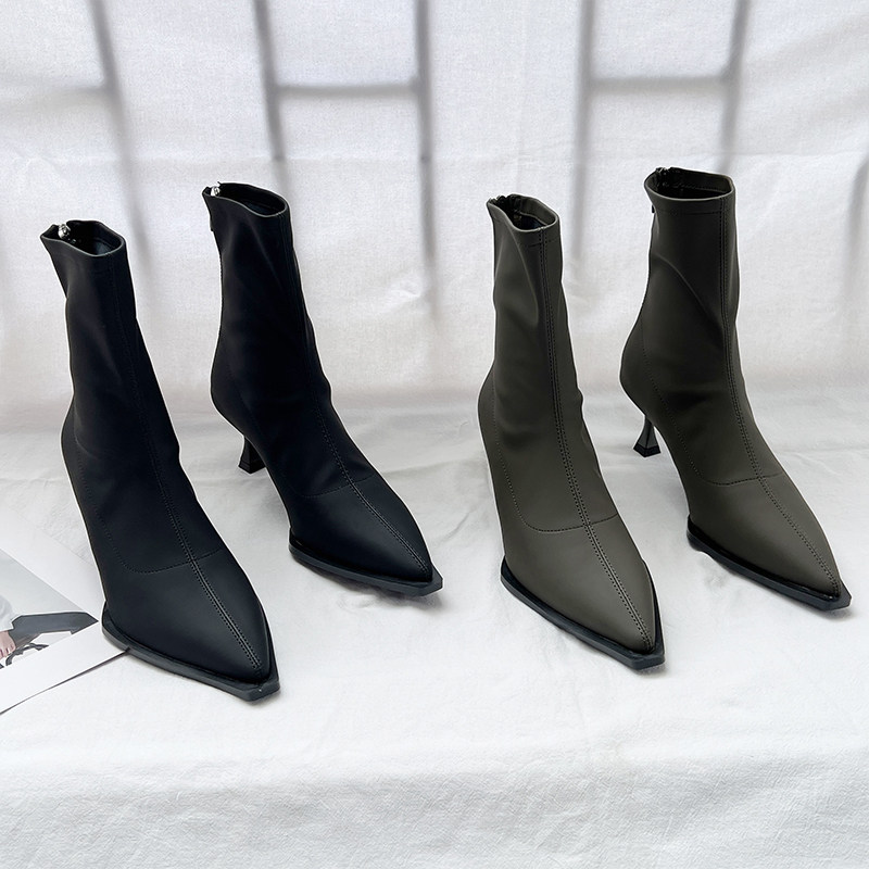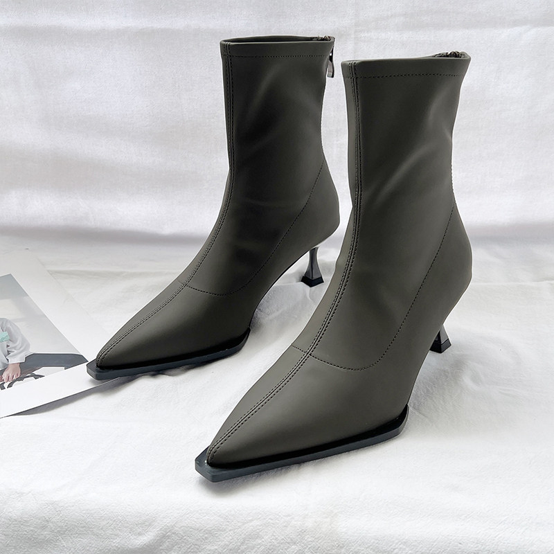 Модные высокие универсальные короткие сапоги с заостренным носом с молнией, в корейском стиле, по фигуре, 2023, осенние