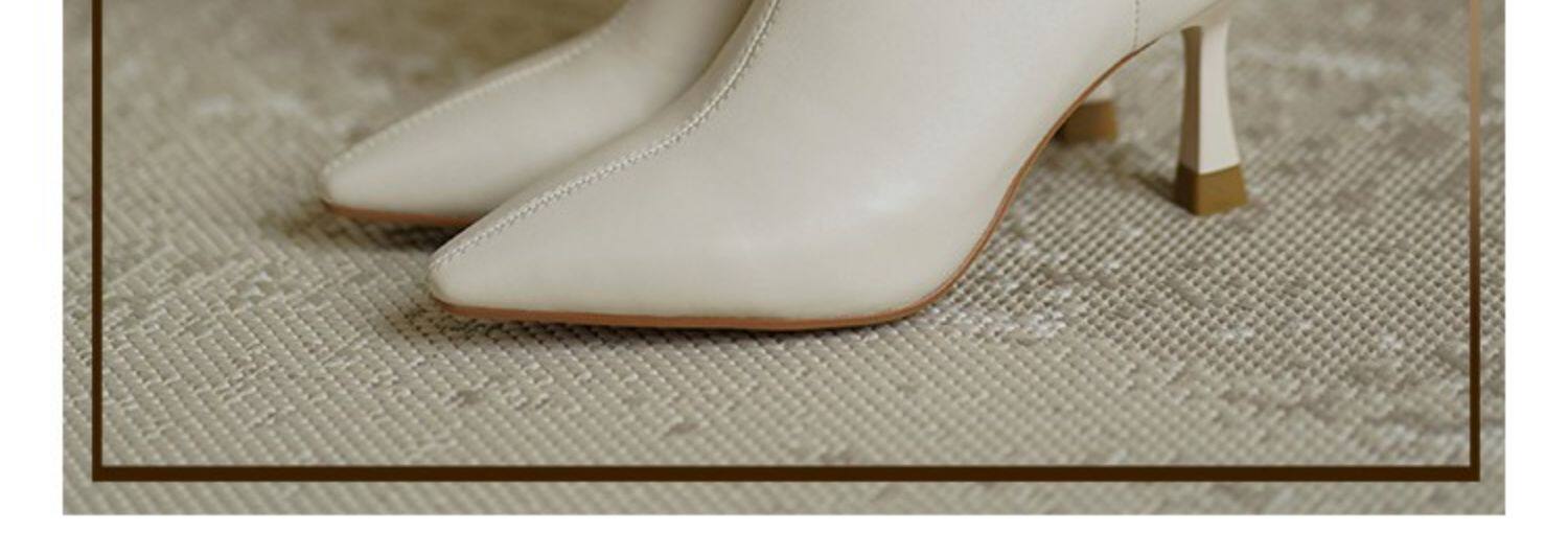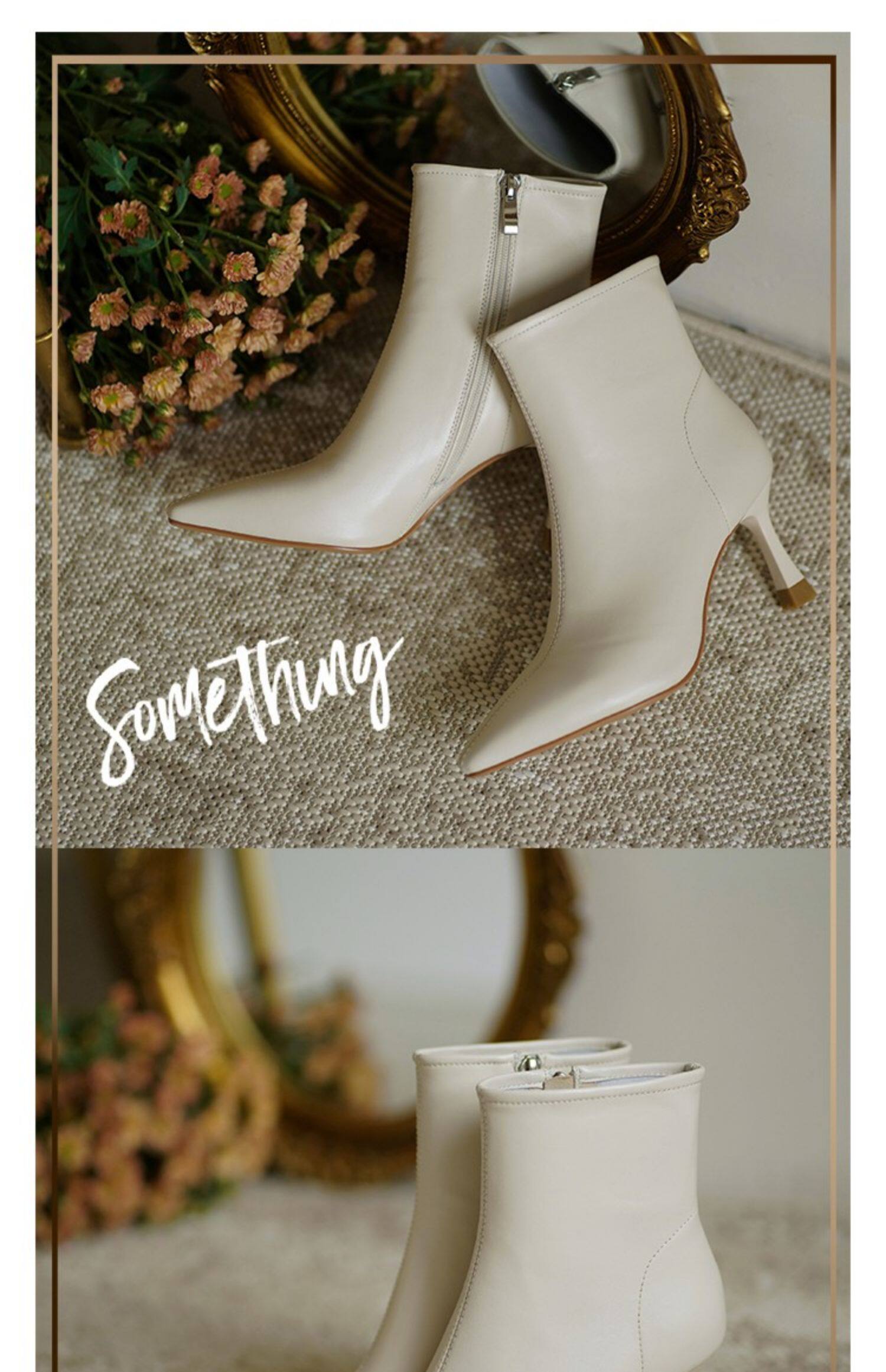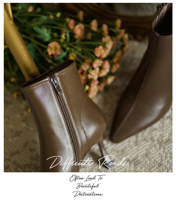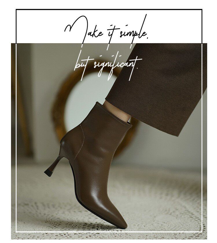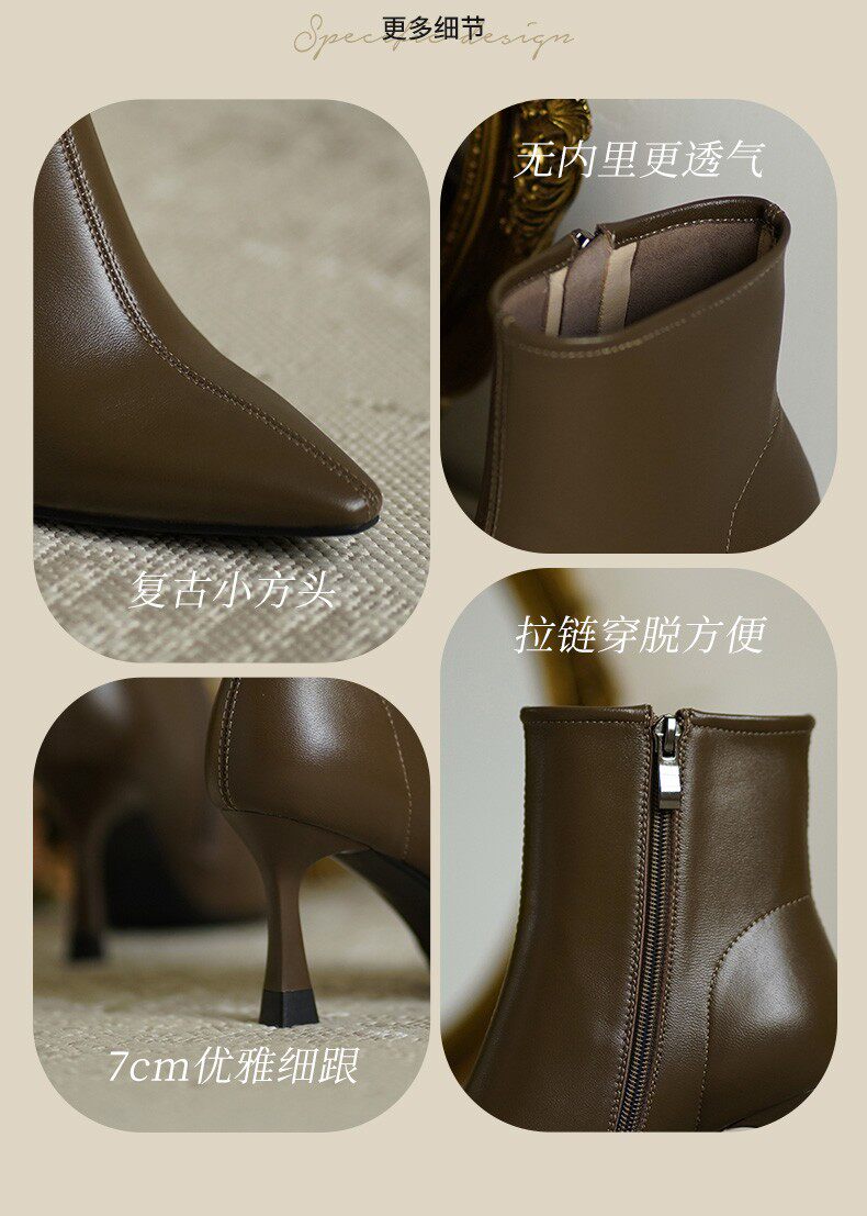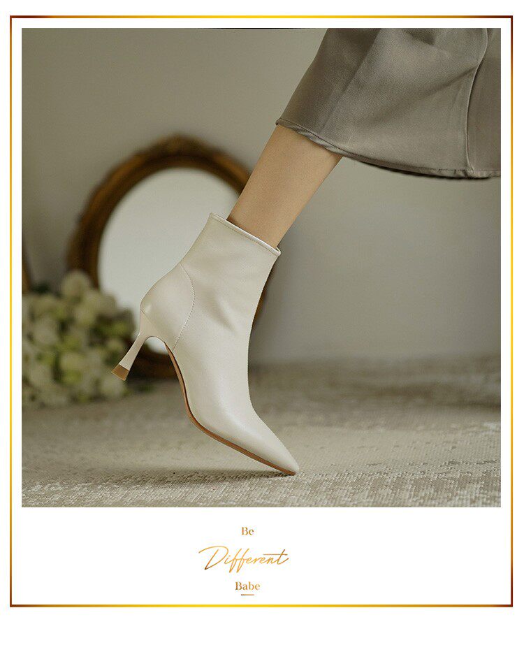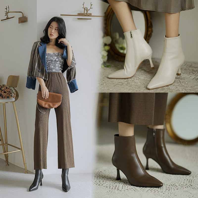 Коричневые цветные осенние демисезонные короткие сапоги с заостренным носом, белая высокая подходит с юбкой, ботинки, изысканный стиль