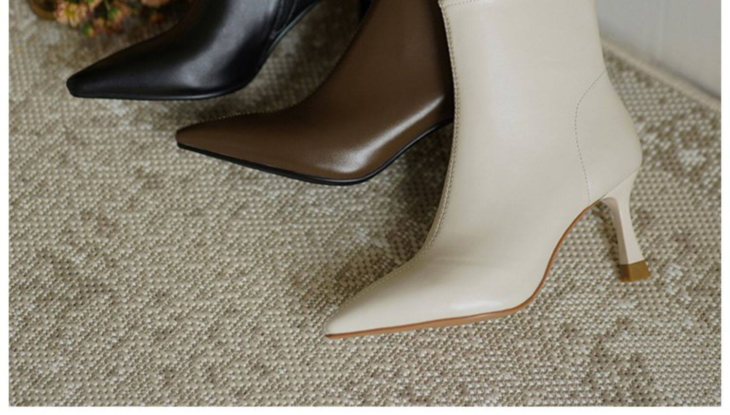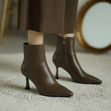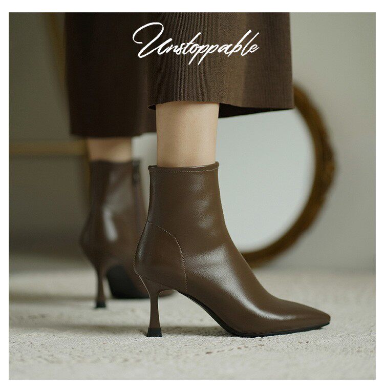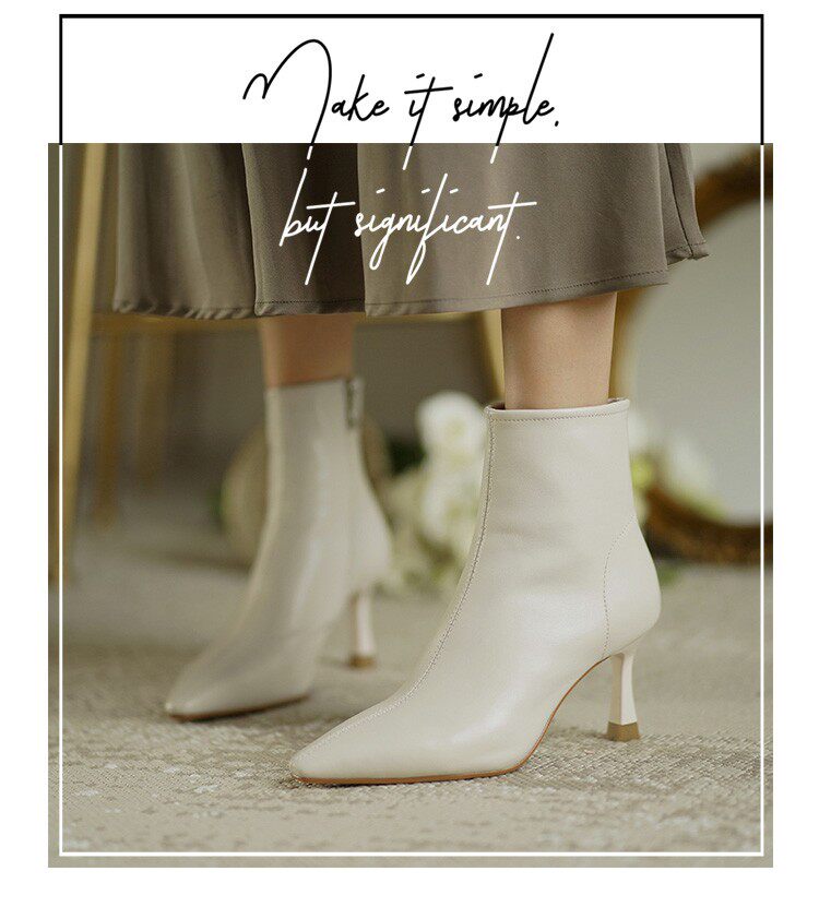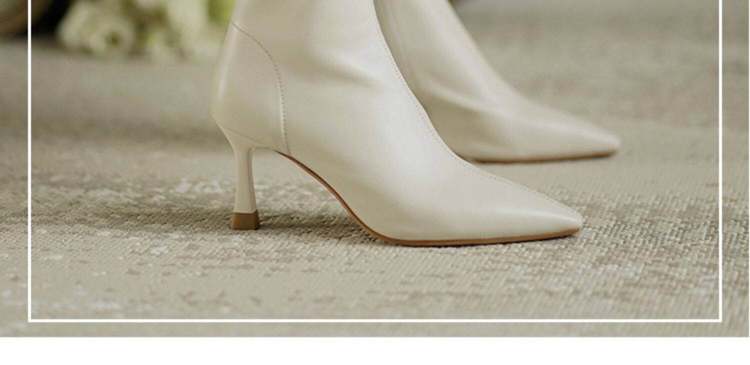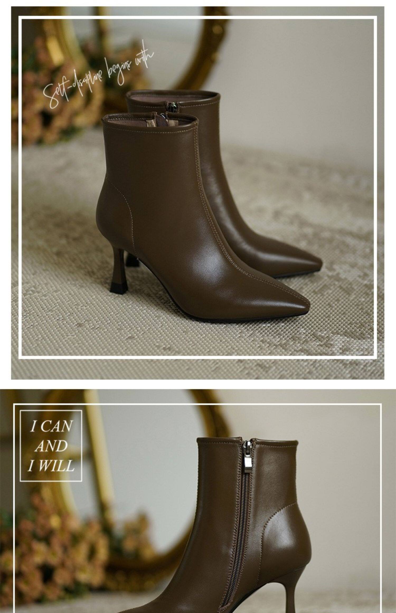 Коричневые цветные осенние демисезонные короткие сапоги с заостренным носом, белая высокая подходит с юбкой, ботинки, изысканный стиль