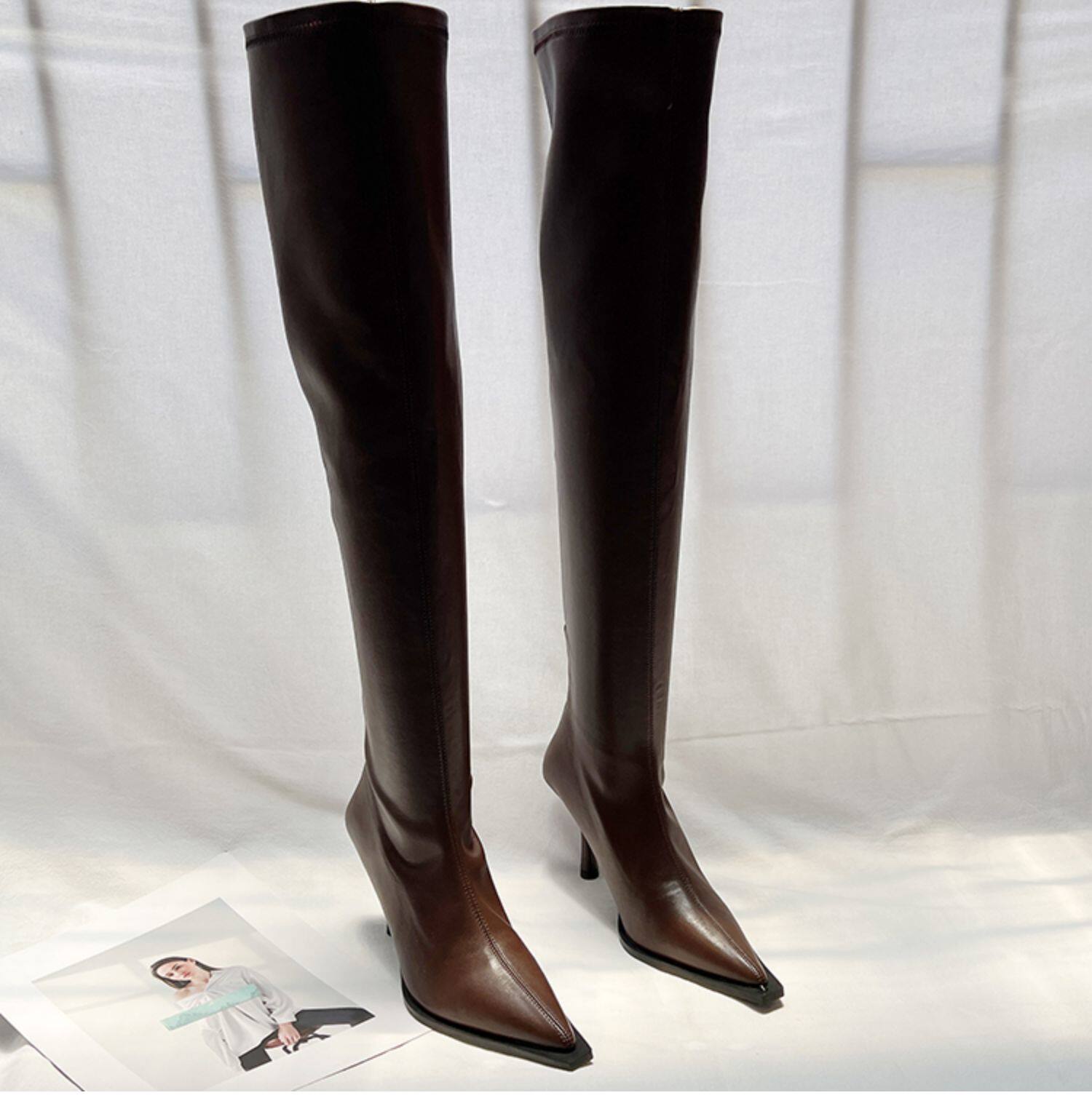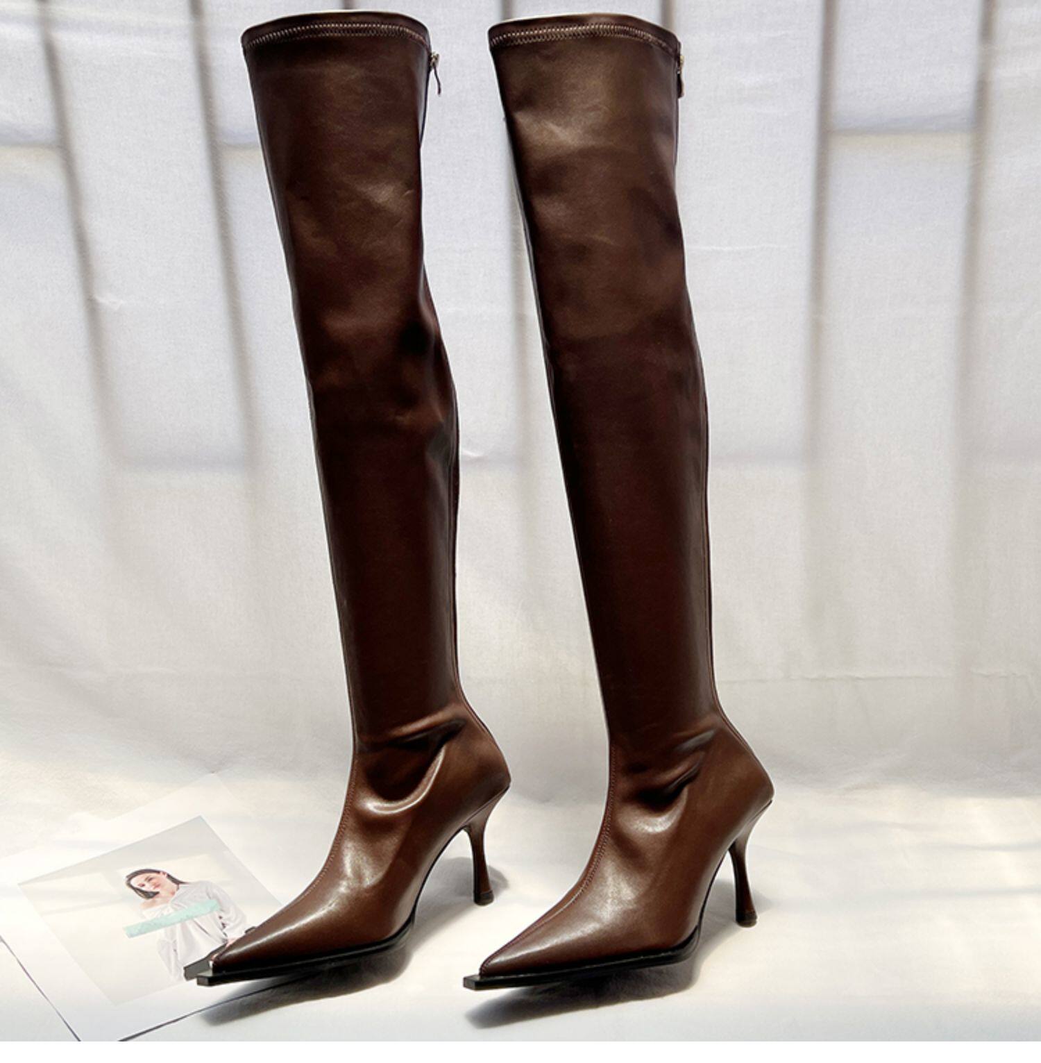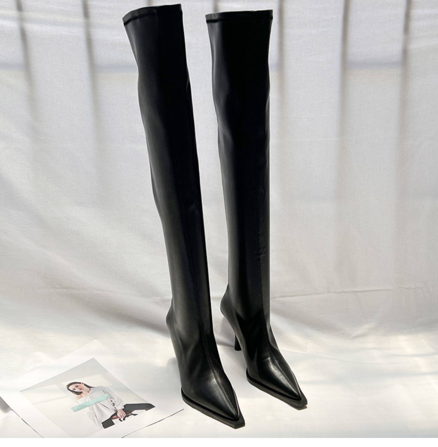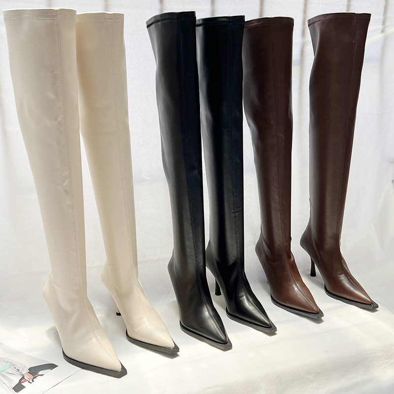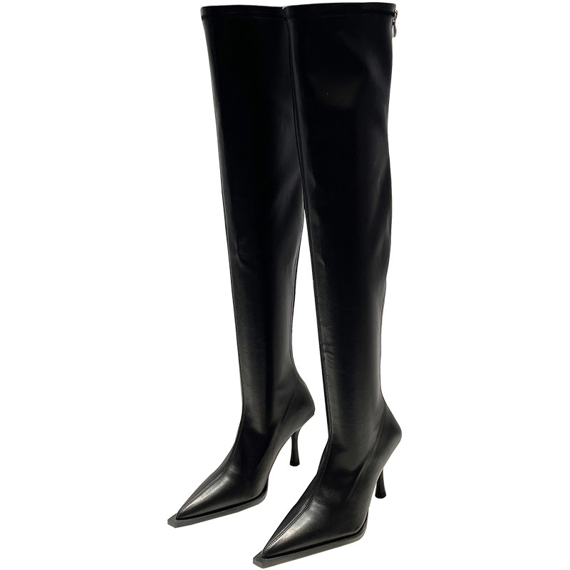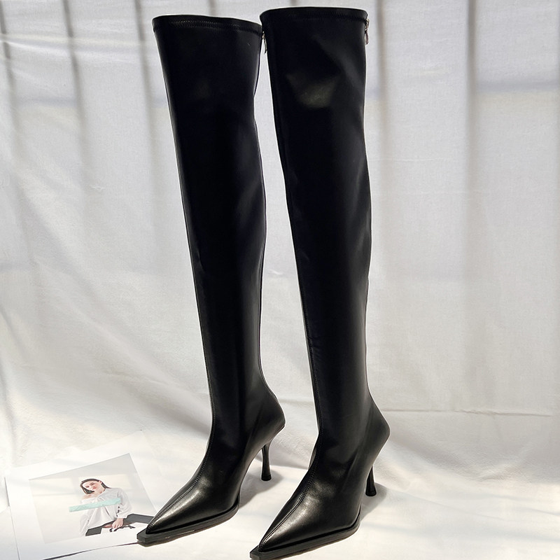 Высокие сексуальные высокие сапоги с заостренным носом с молнией, европейский стиль, 2023, осенние, по фигуре