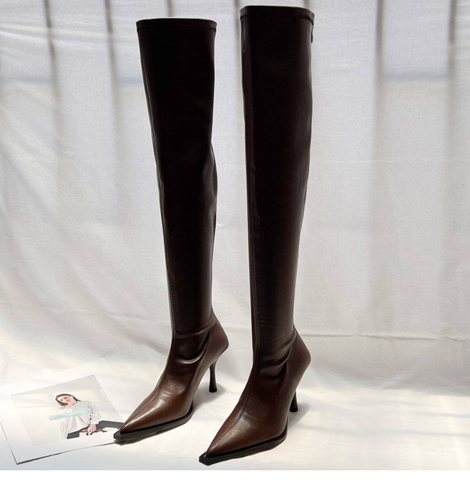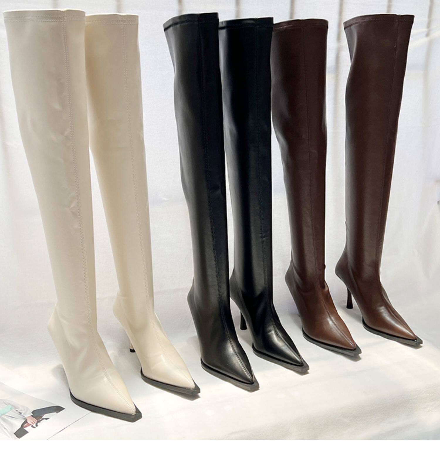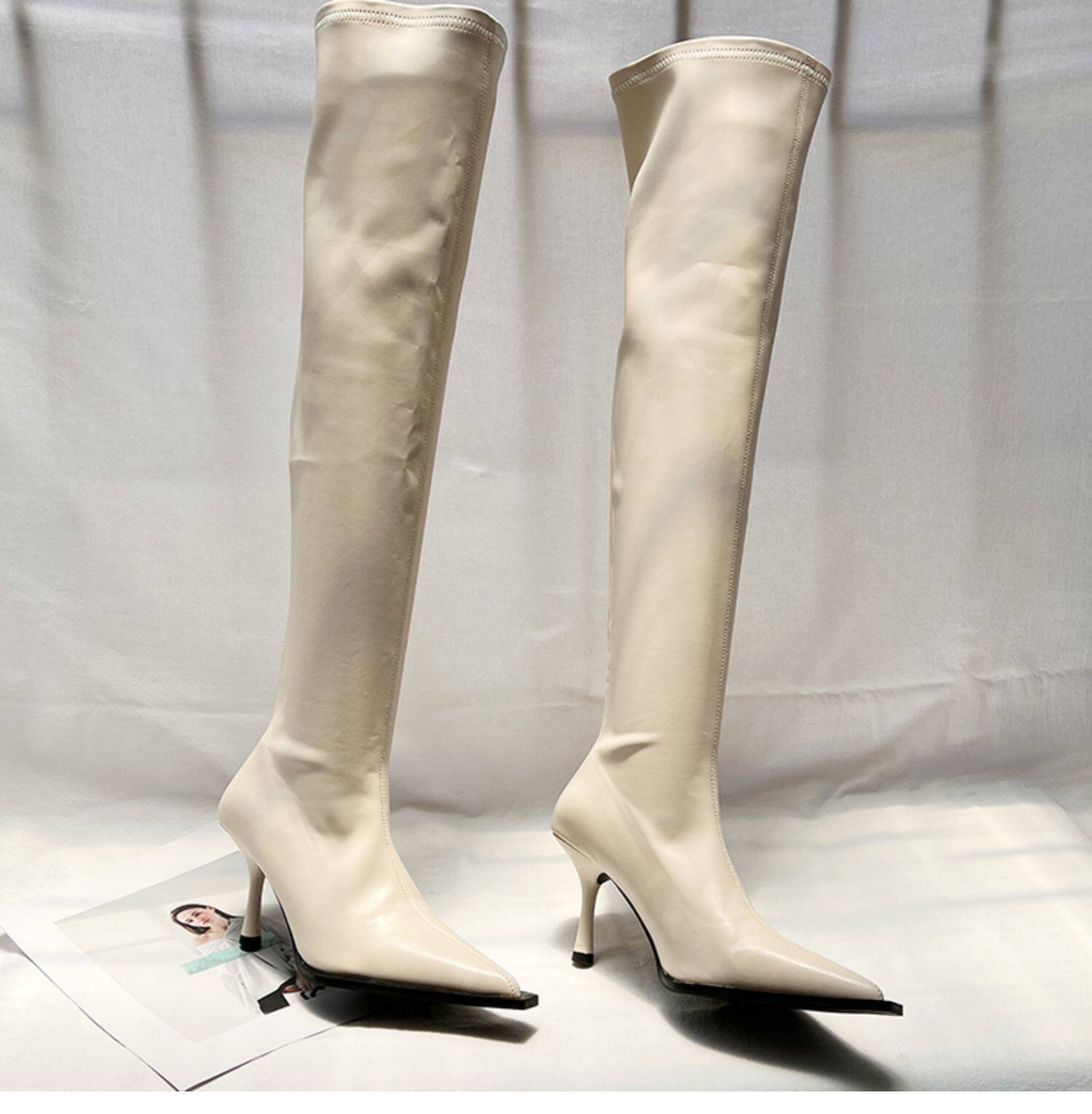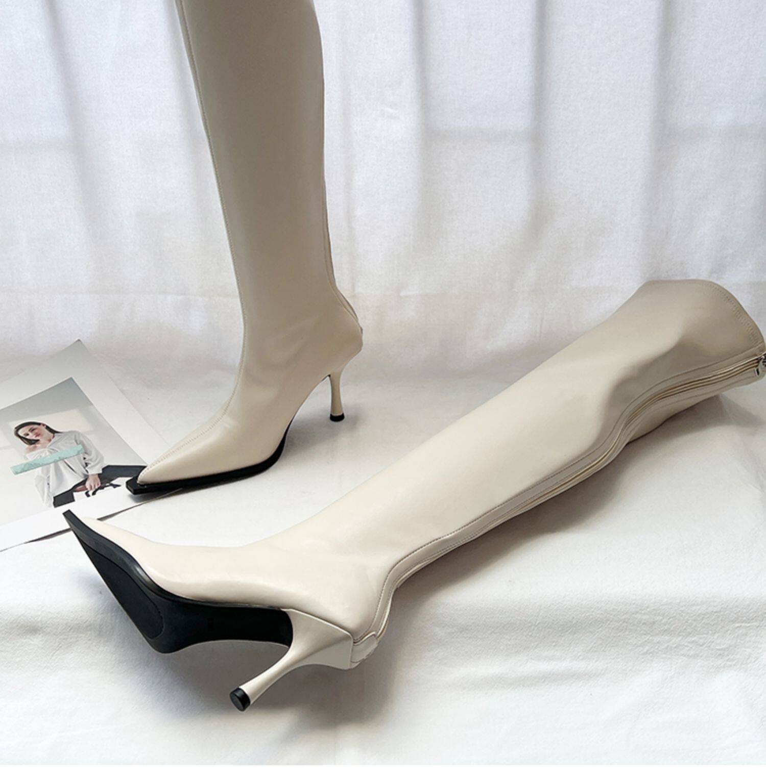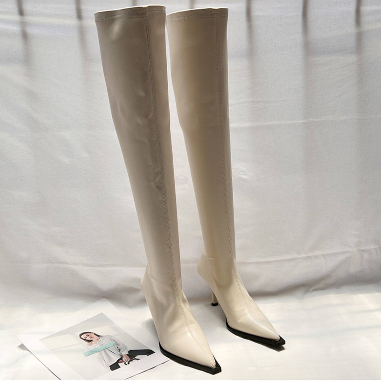 Высокие сексуальные высокие сапоги с заостренным носом с молнией, европейский стиль, 2023, осенние, по фигуре