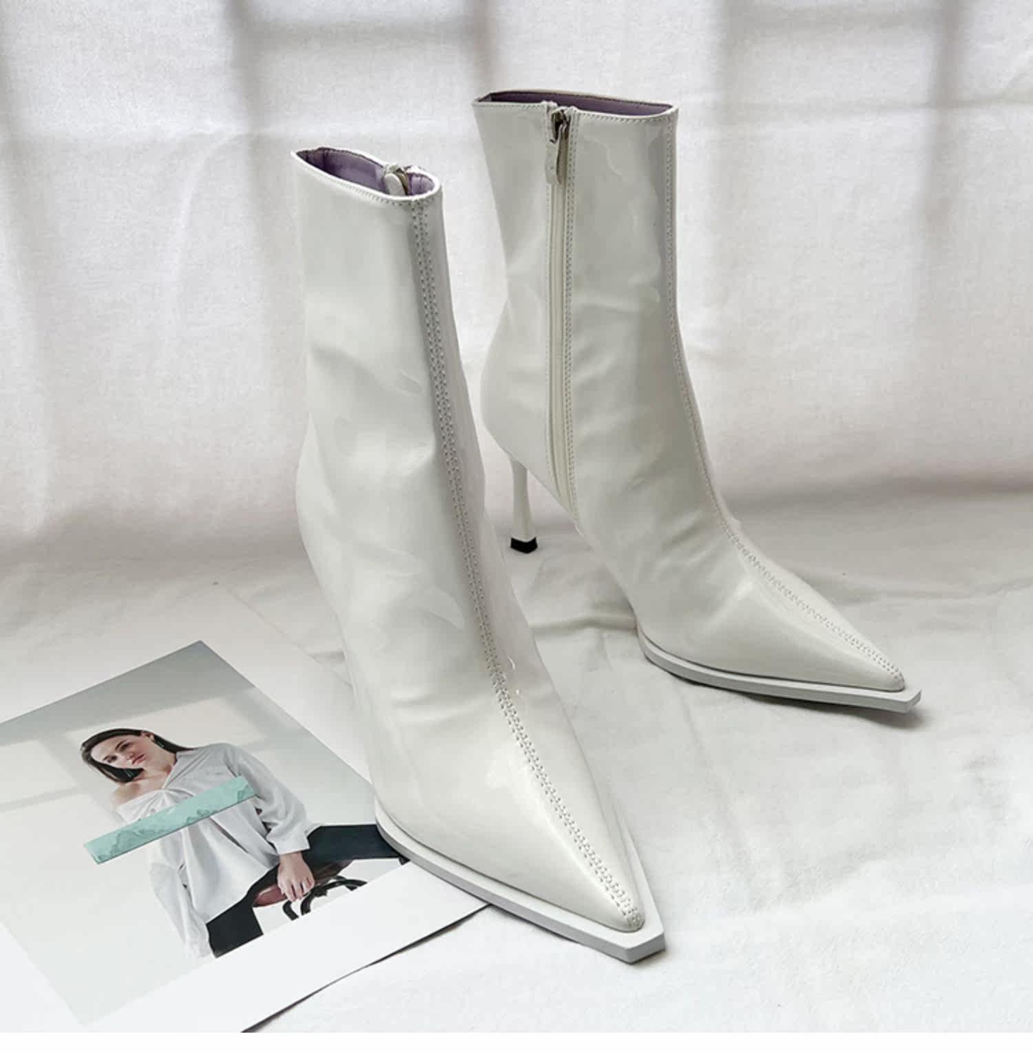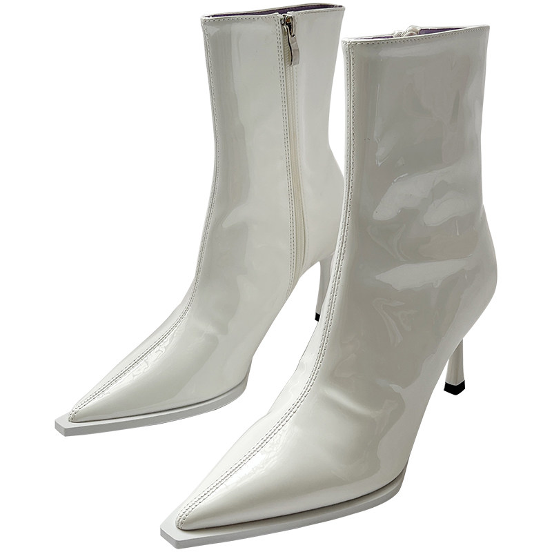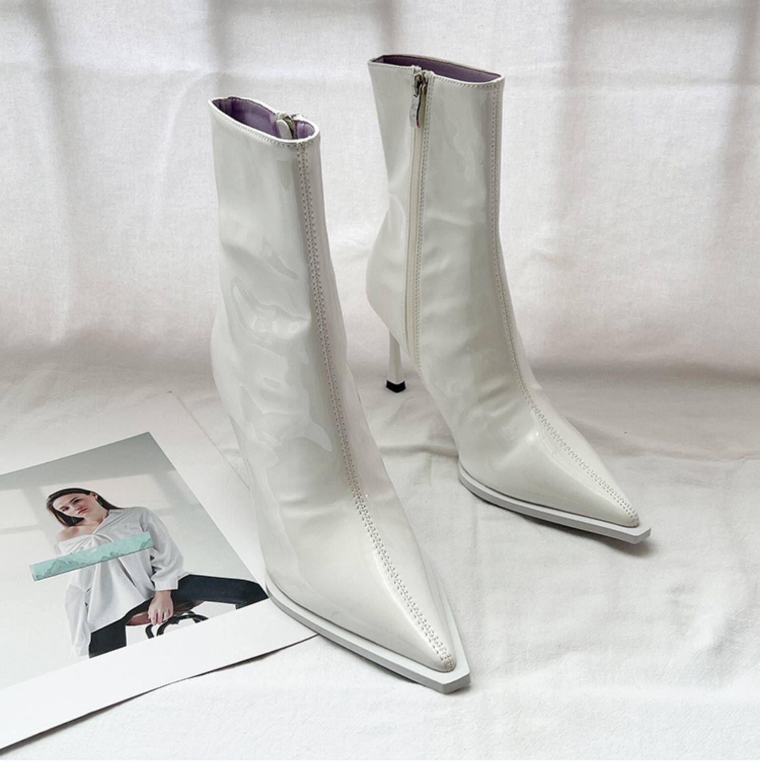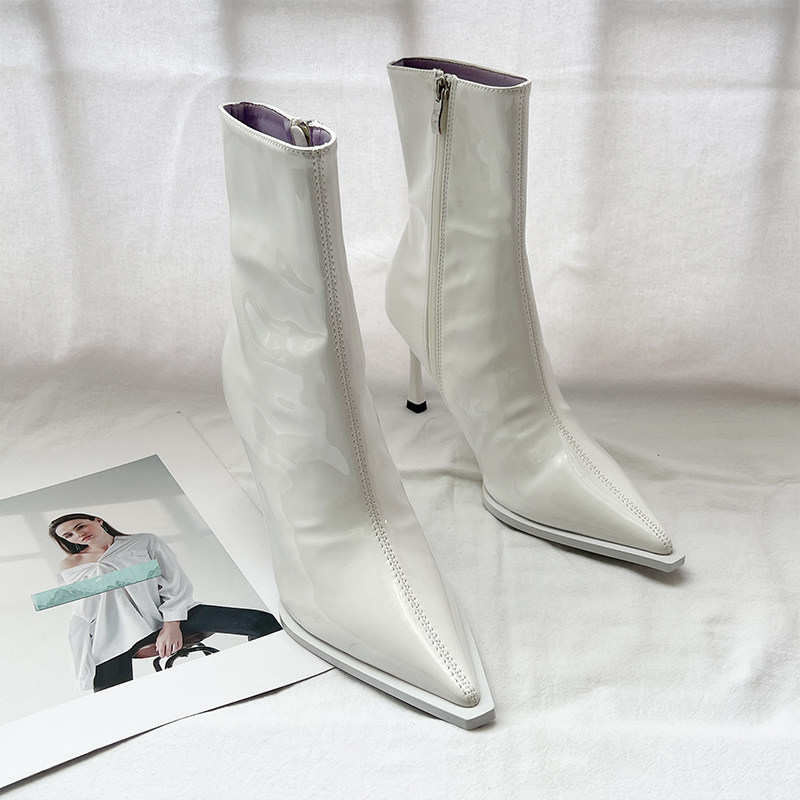 Розовые высокие короткие сапоги с заостренным носом с молнией, европейский стиль, по фигуре, коллекция 2022, осенние, популярно в интернете
