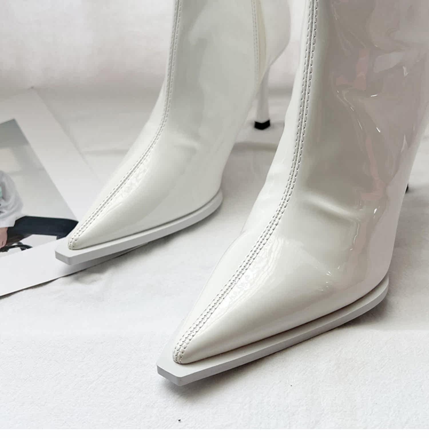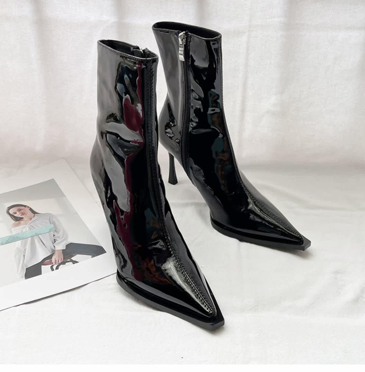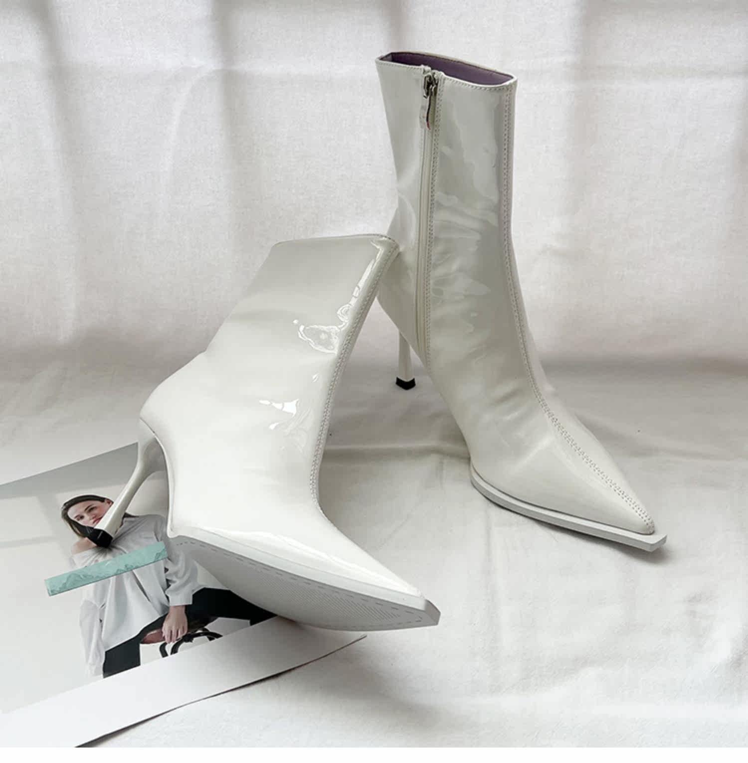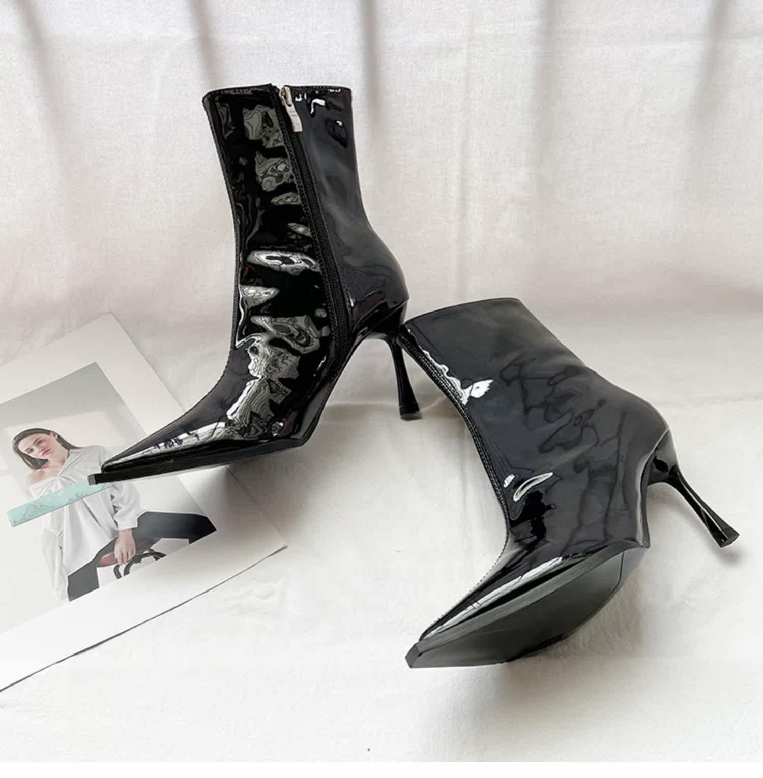 Розовые высокие короткие сапоги с заостренным носом с молнией, европейский стиль, по фигуре, коллекция 2022, осенние, популярно в интернете