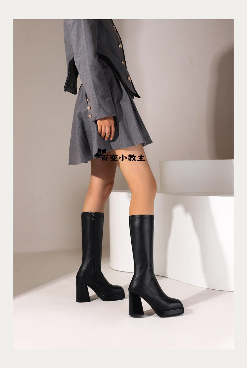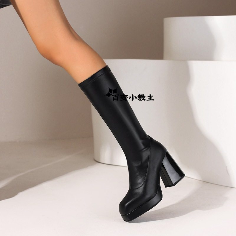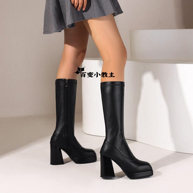 Европейские и американские высокие ботинки, танцевальные сапоги с грубыми каблуками
