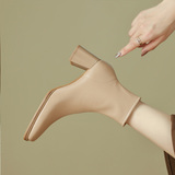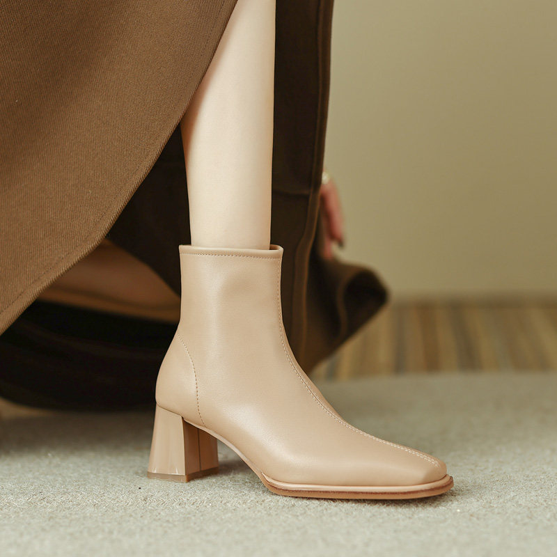 Белые зимние короткие сапоги, ботильоны на высоком каблуке, ботинки, осенние, французский стиль