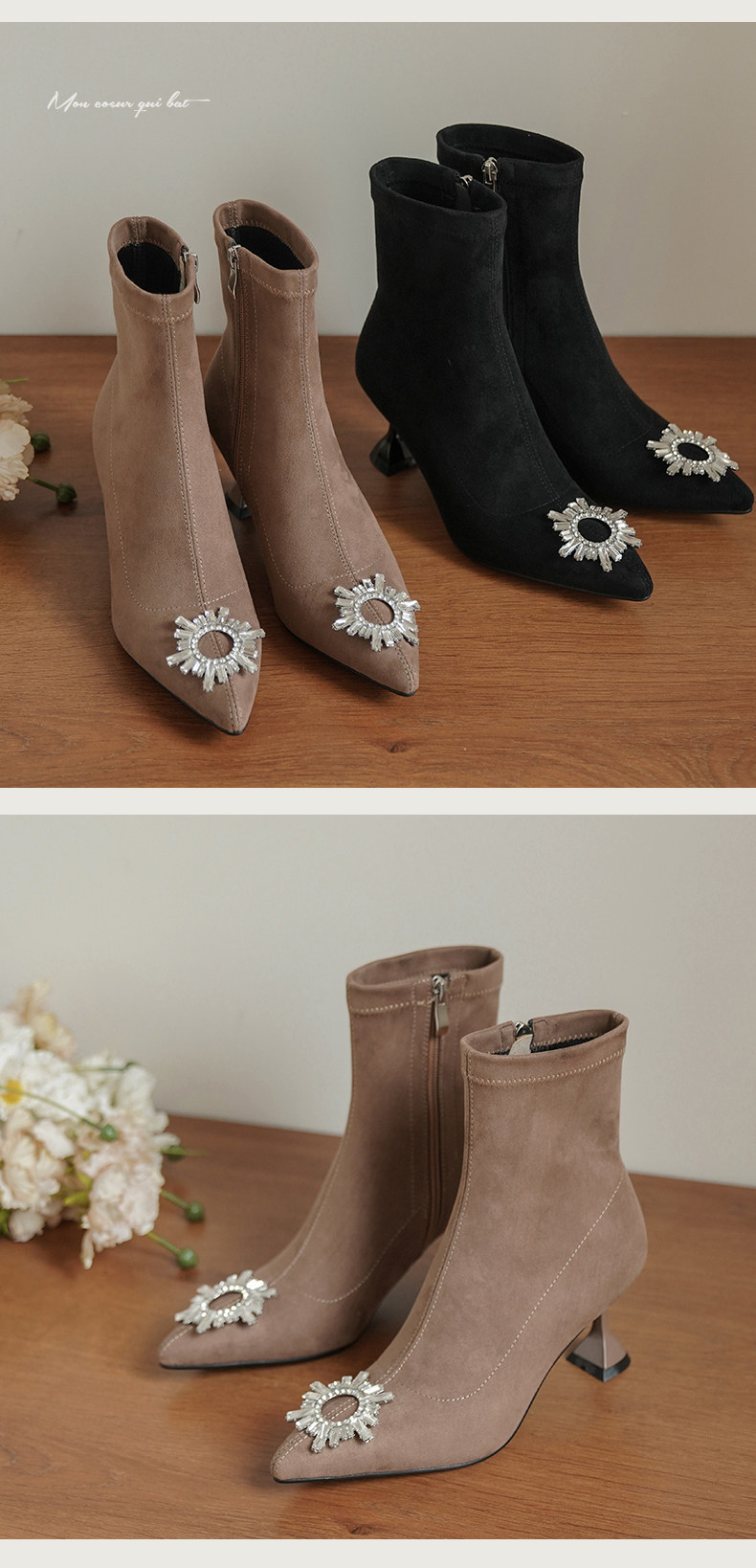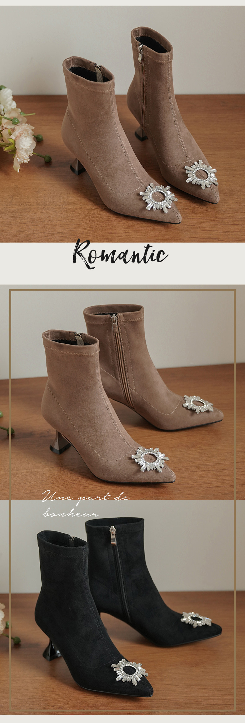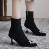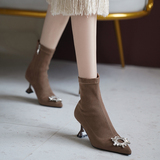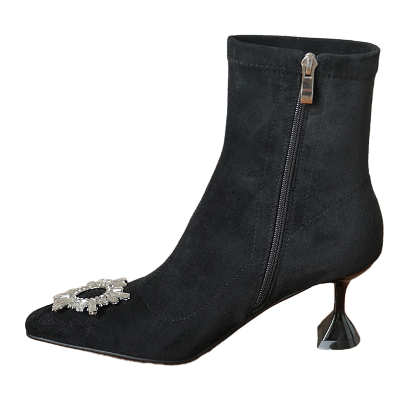 Зимние ботильоны с заостренным носом, сексуальная модная обувь на высоком каблуке, бархатная подходит с юбкой, короткие сапоги, французский стиль