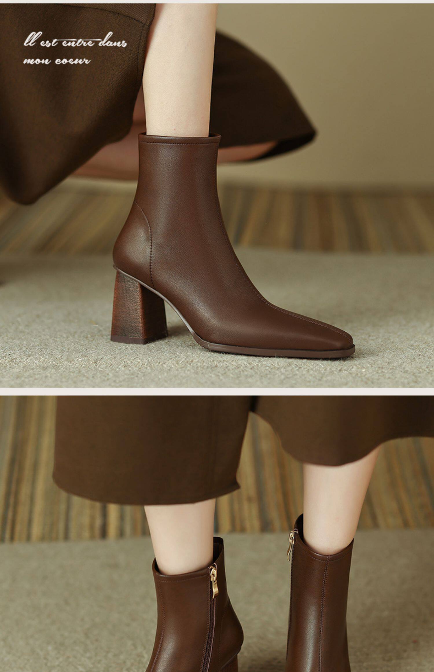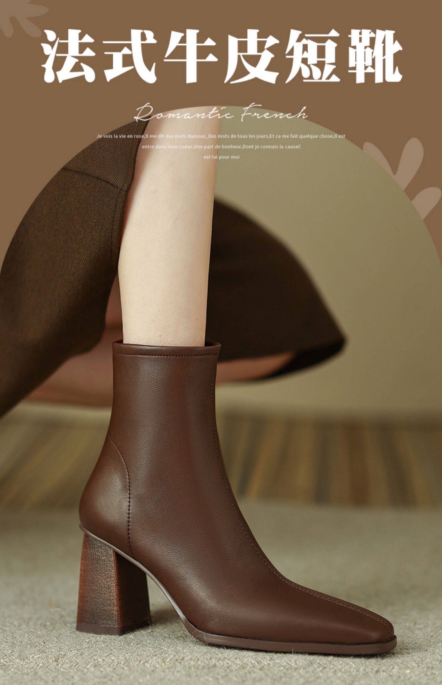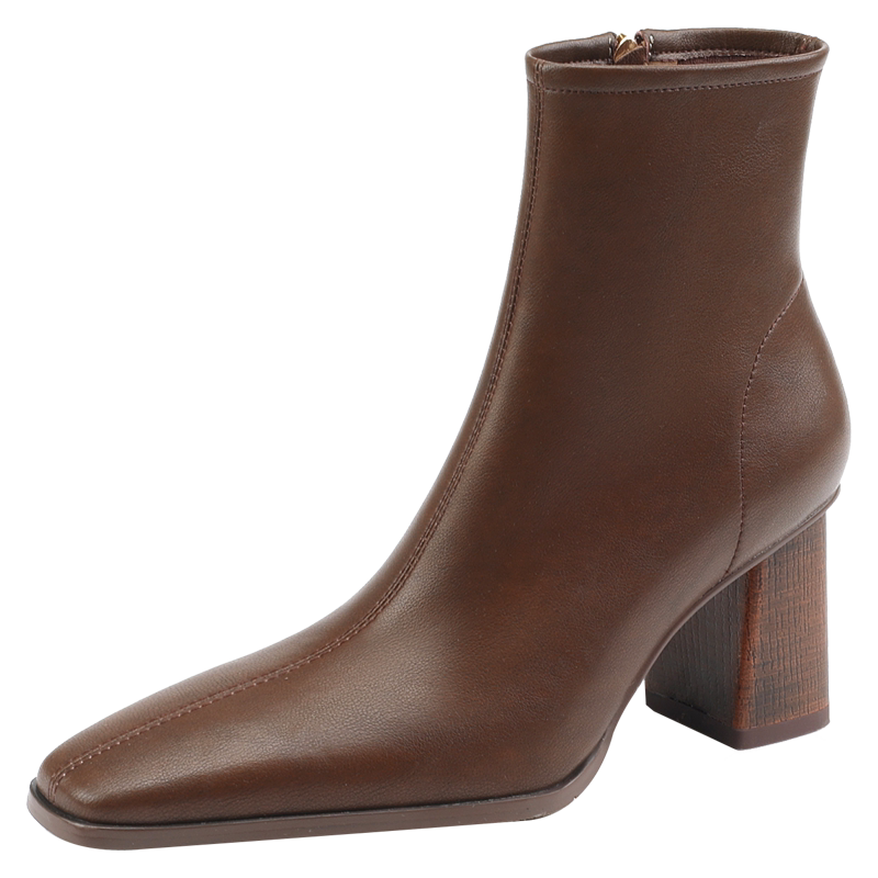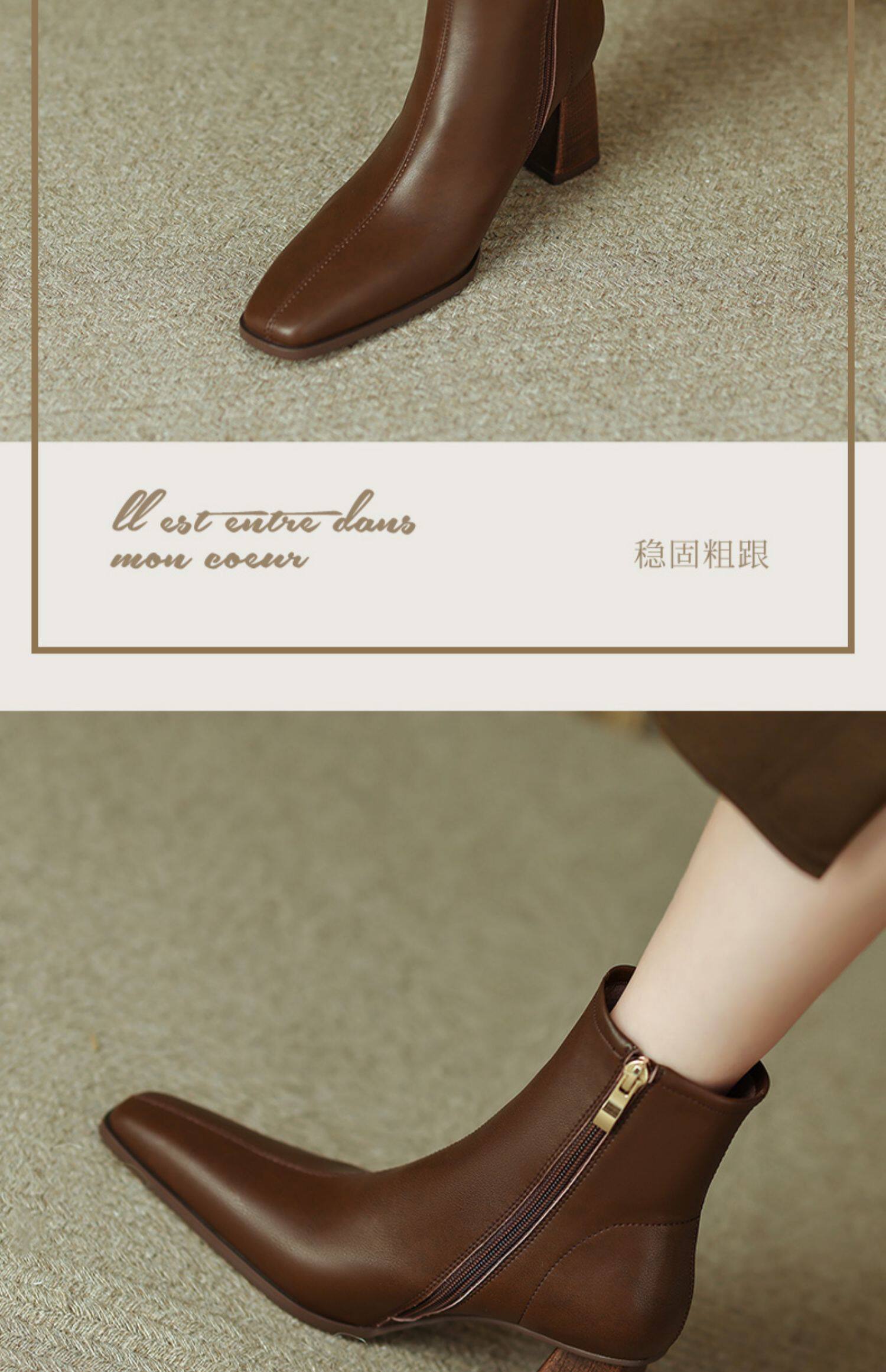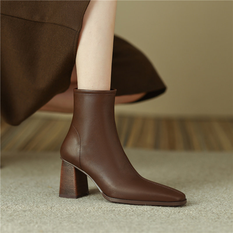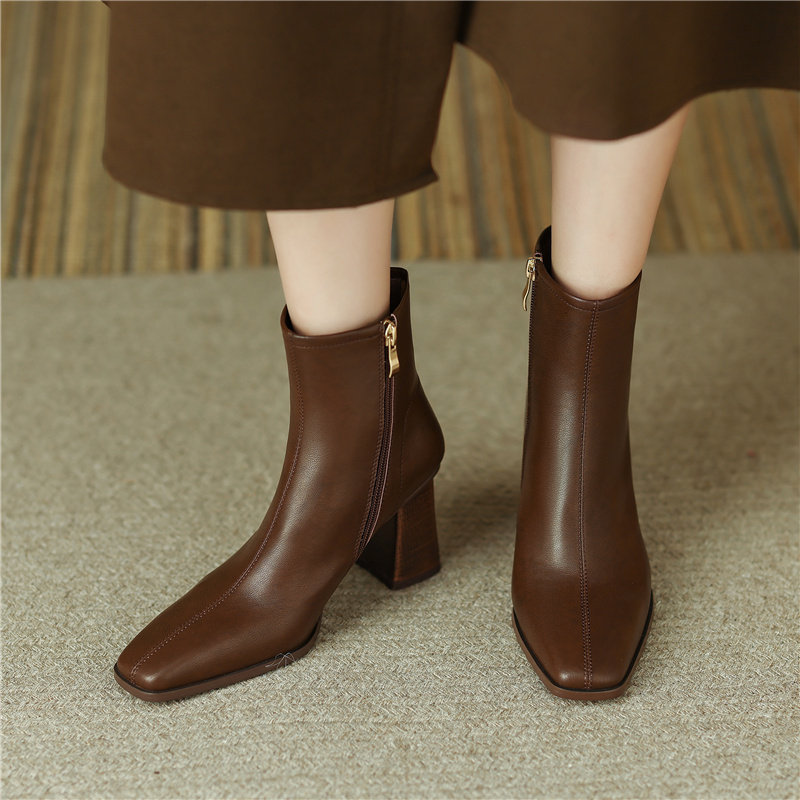 Коричневые короткие сапоги на высоком каблуке, ботильоны на платформе, французский ретро стиль, изысканный стиль, осенние, по фигуре
