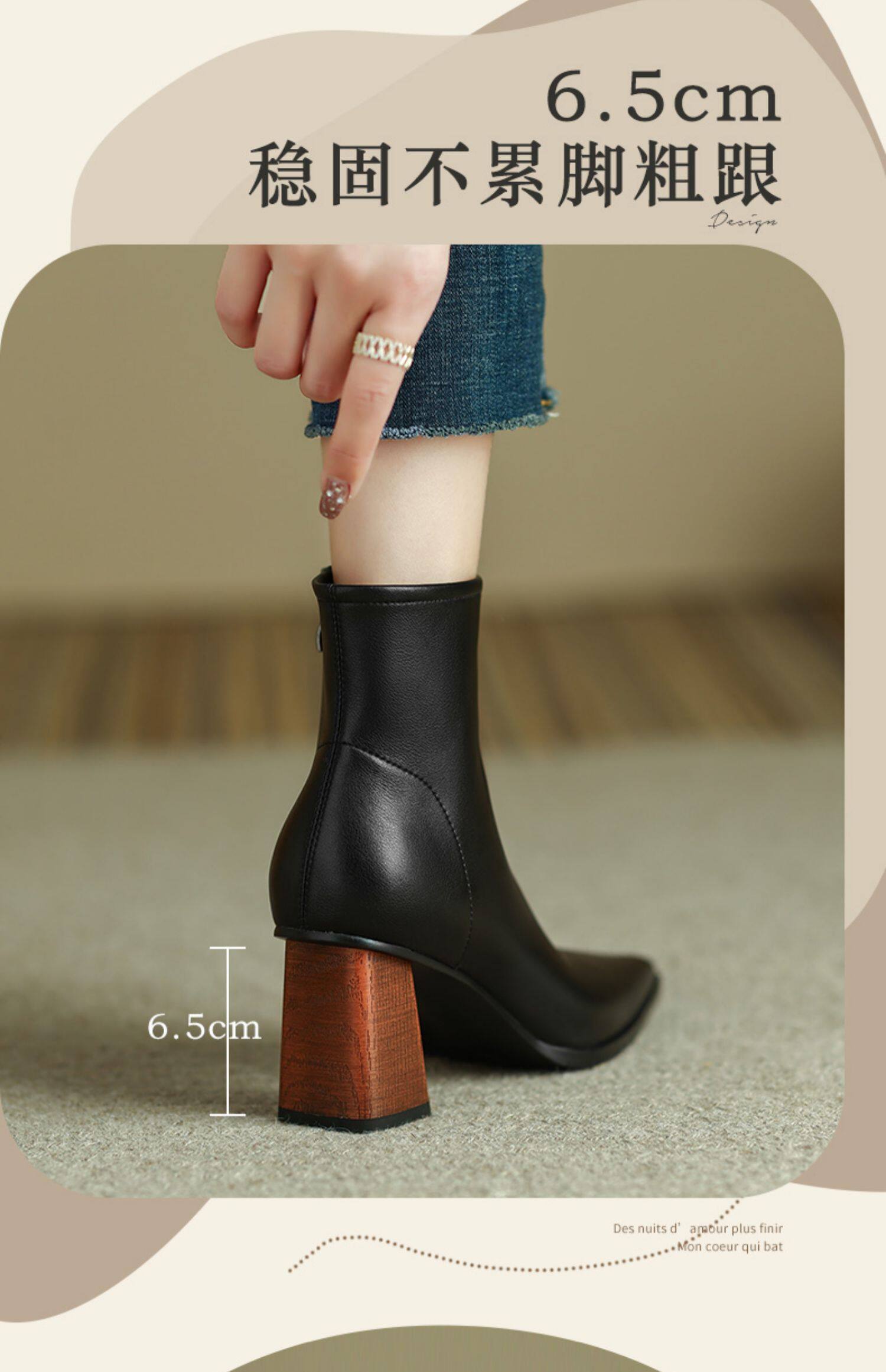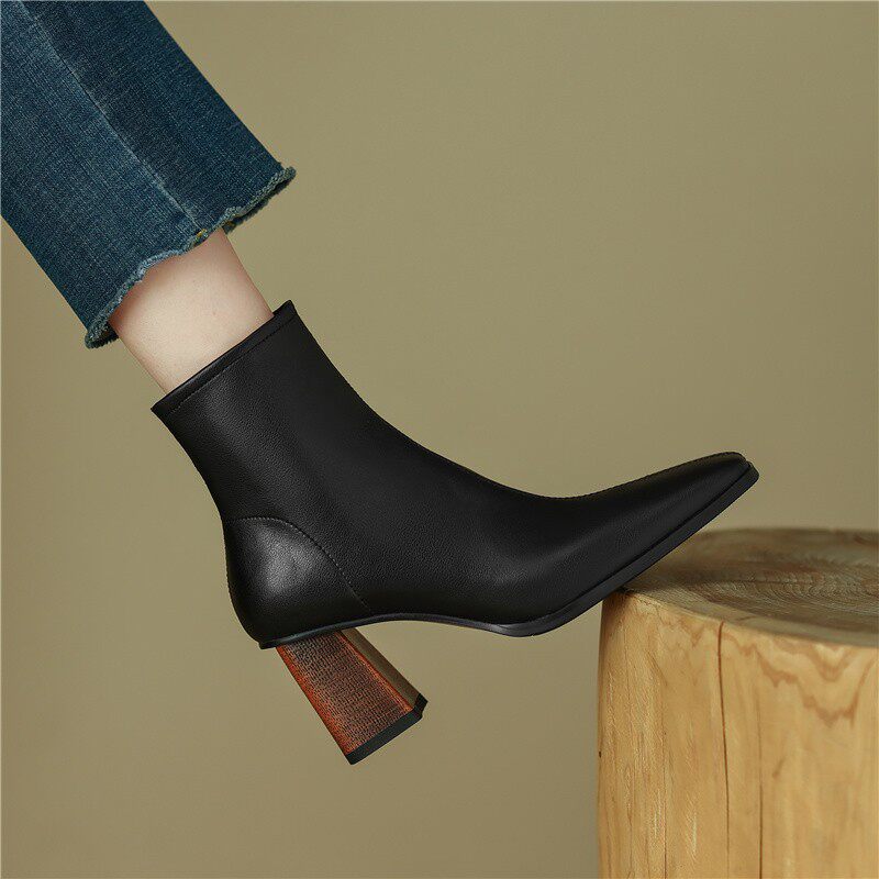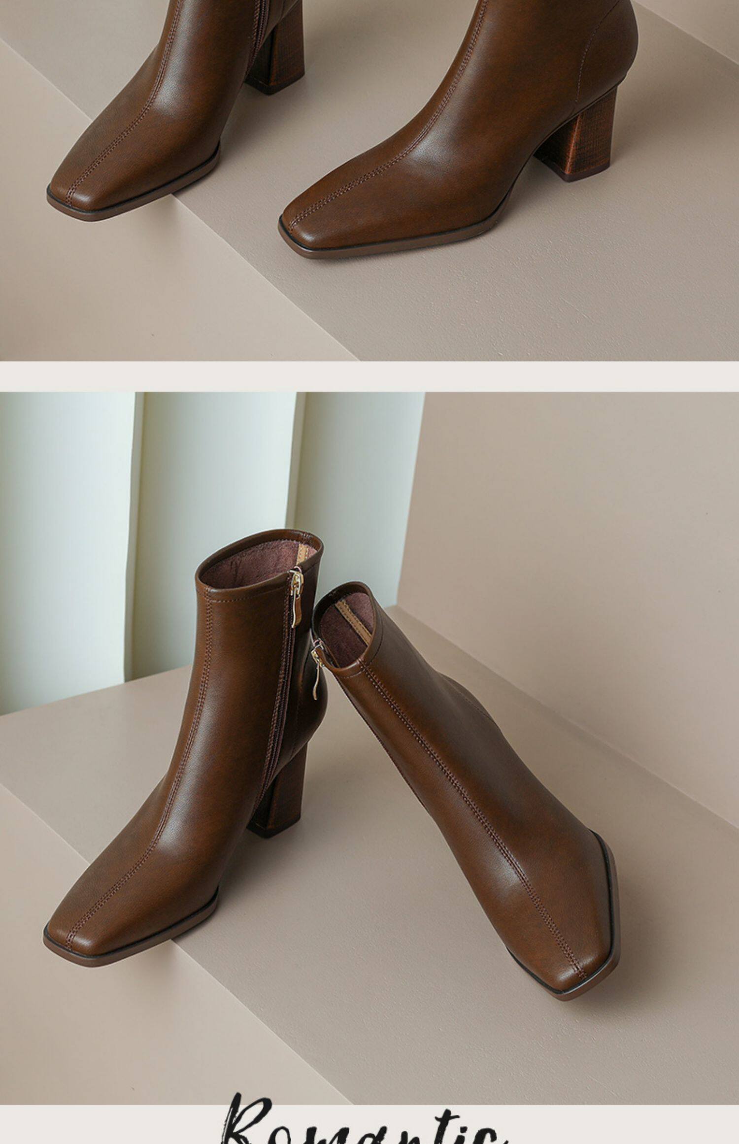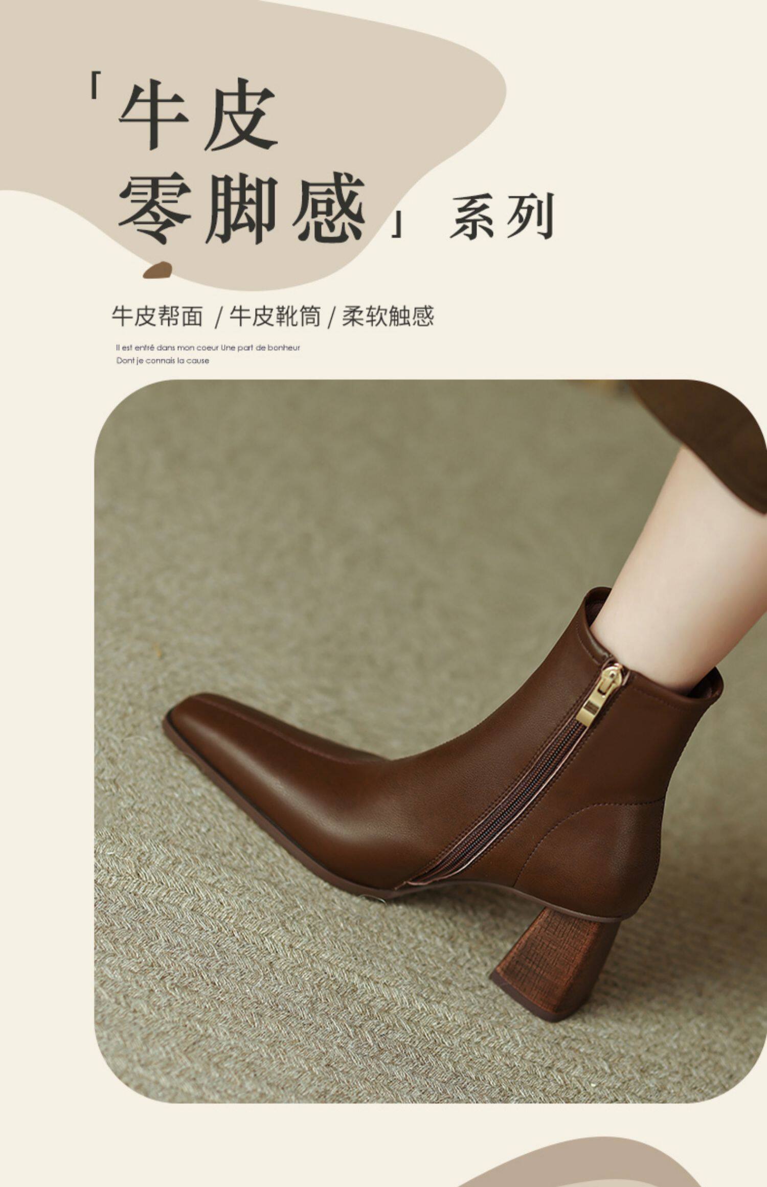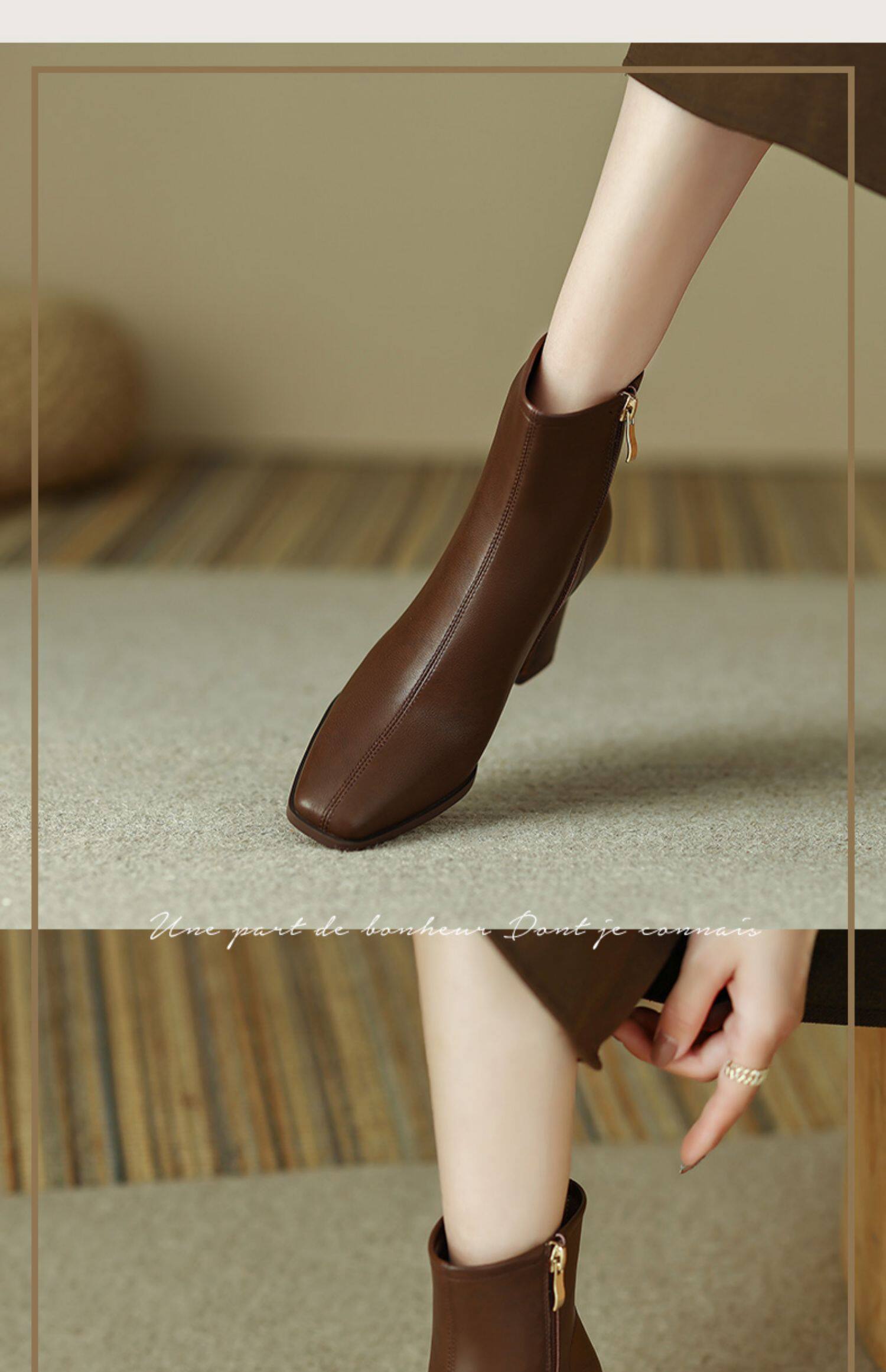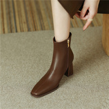 Коричневые короткие сапоги на высоком каблуке, ботильоны на платформе, французский ретро стиль, изысканный стиль, осенние, по фигуре