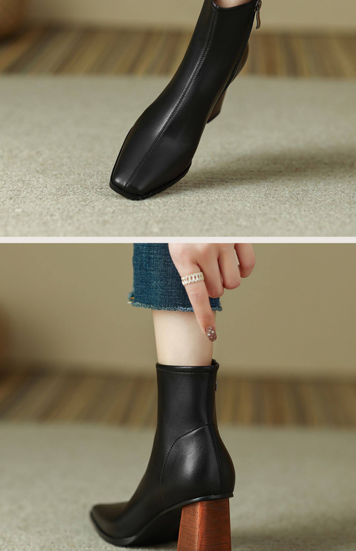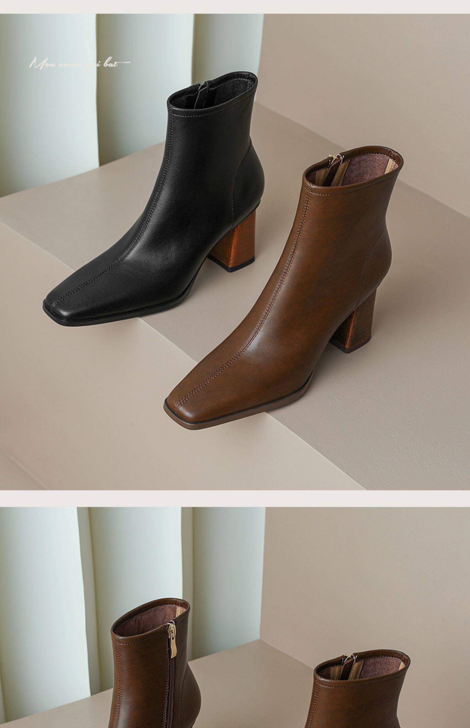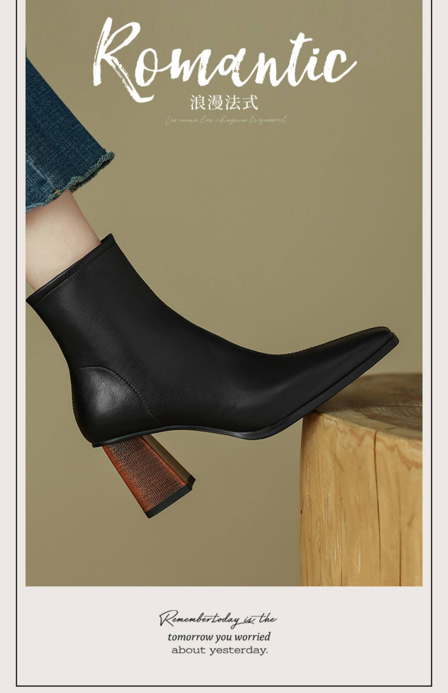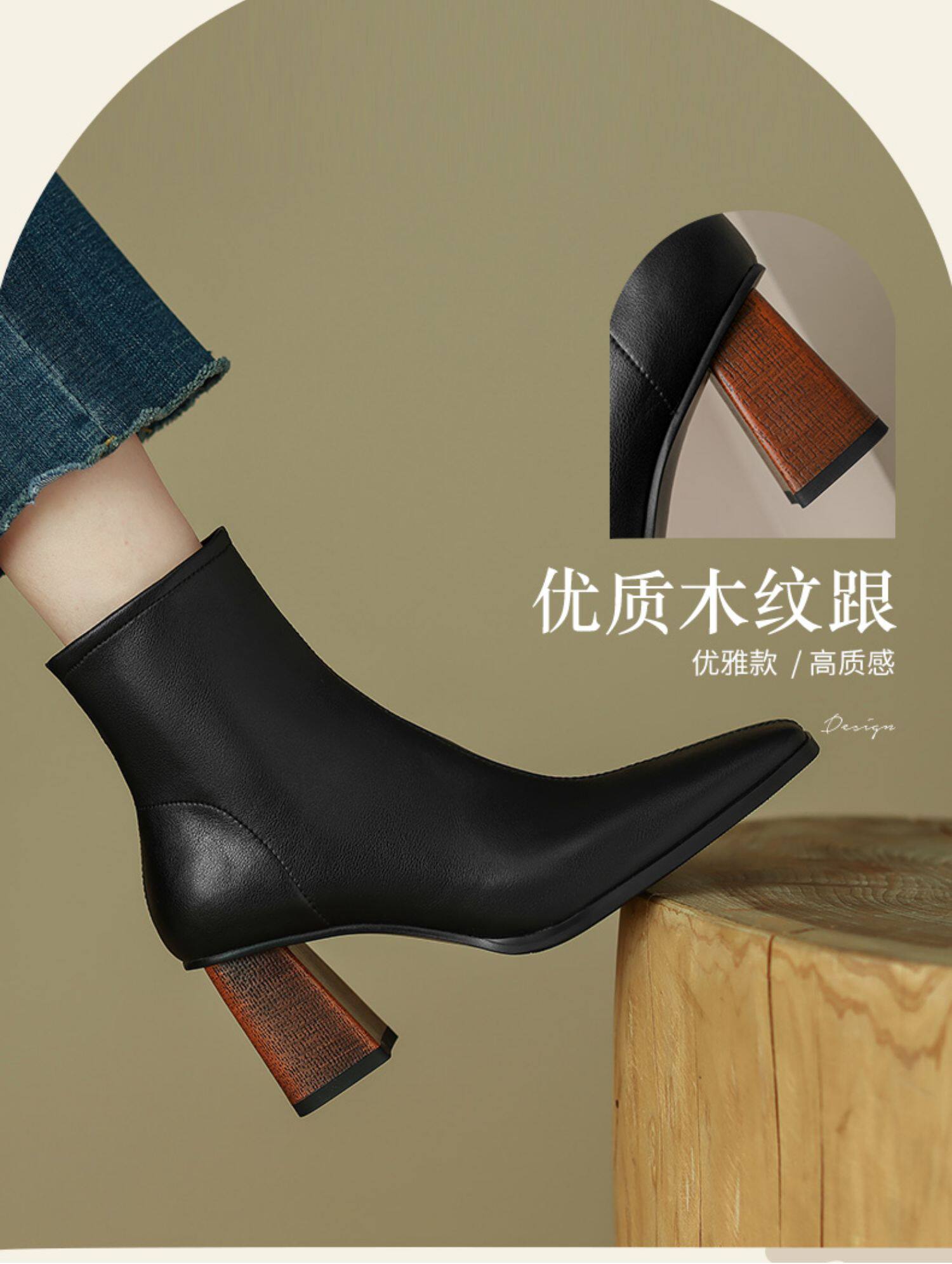 Коричневые короткие сапоги на высоком каблуке, ботильоны на платформе, французский ретро стиль, изысканный стиль, осенние, по фигуре