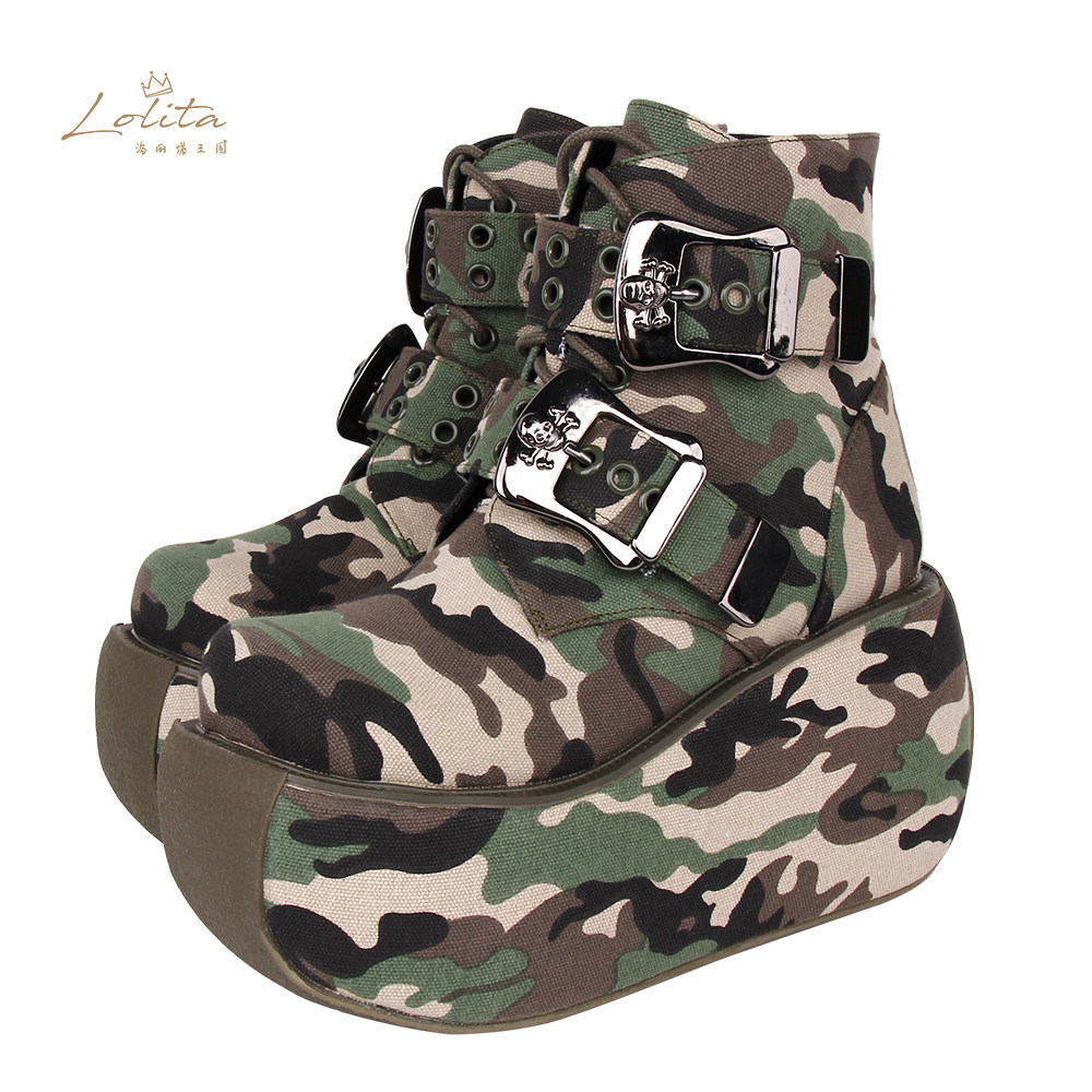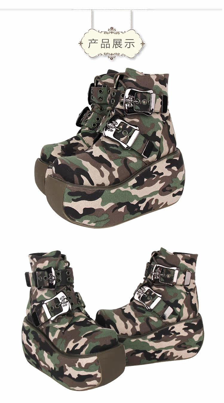 Высокие камуфляжные короткие сапоги на платформе, коллекция 2022, осенние