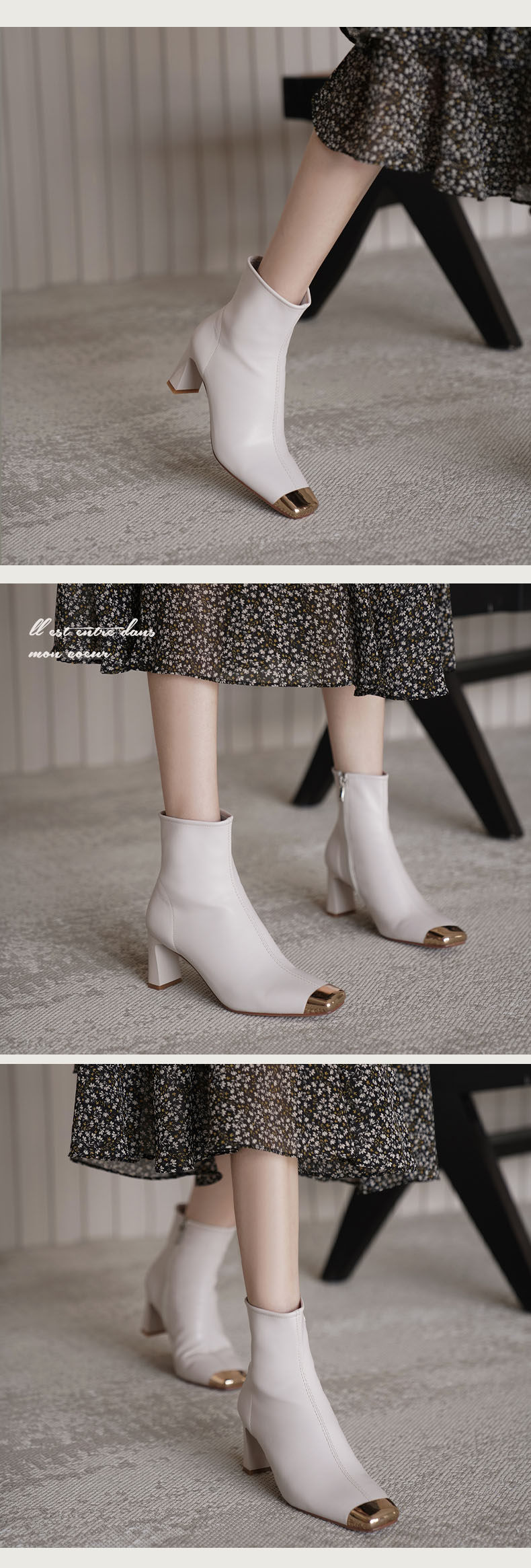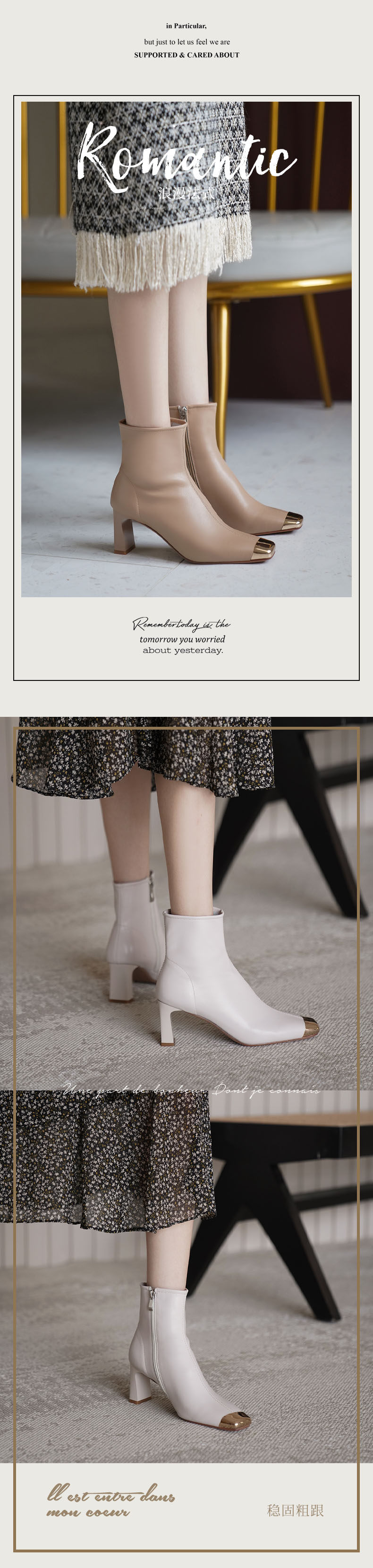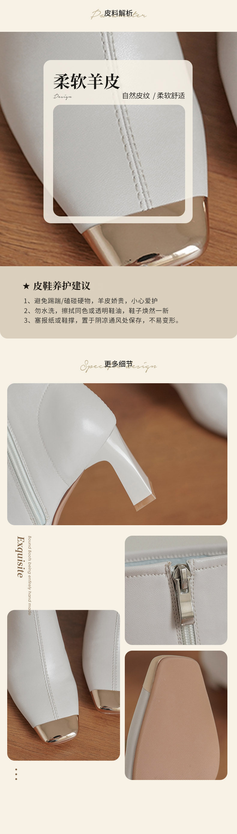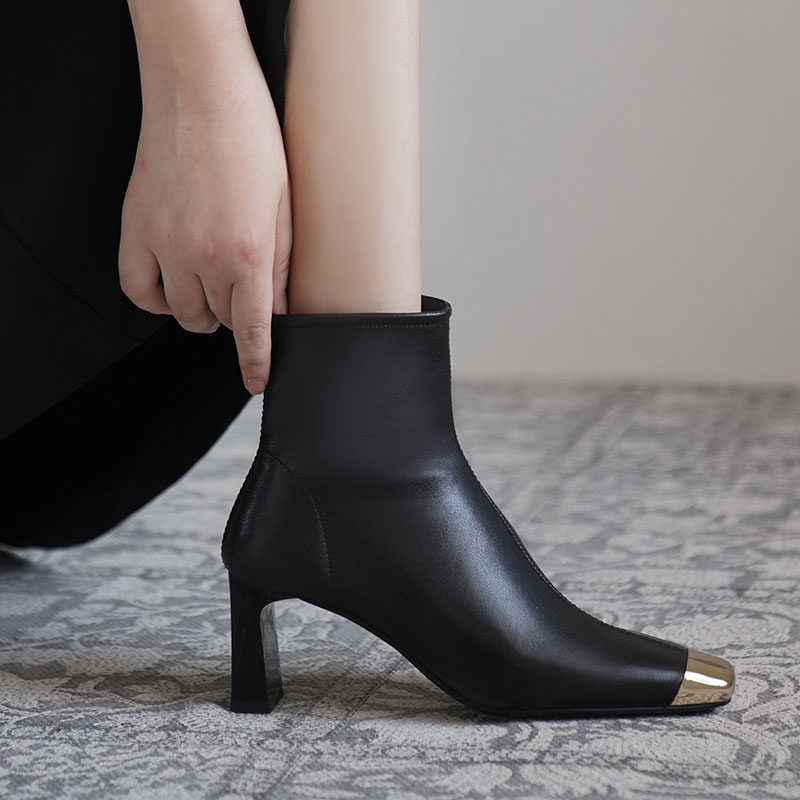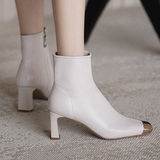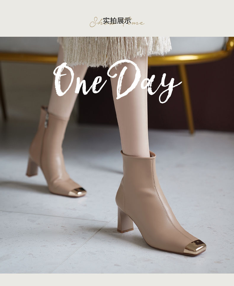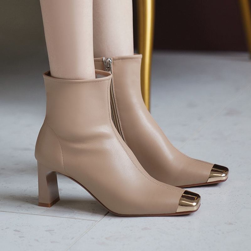Бежевые металлические дизайнерские короткие сапоги, зимние ботинки на высоком каблуке, осенние, тренд сезона