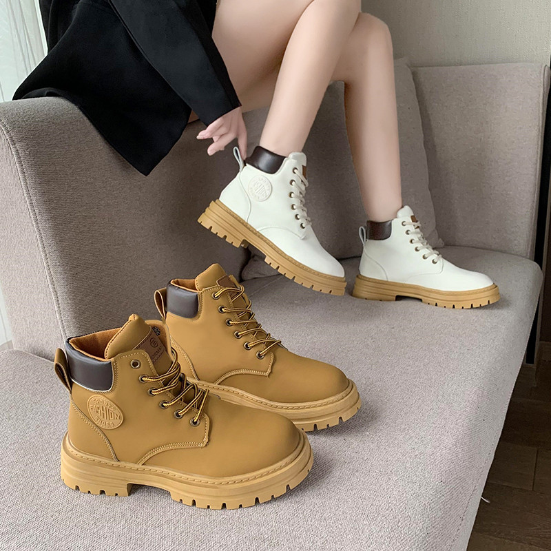 Martens, демисезонные модные джинсовые короткие сапоги на платформе