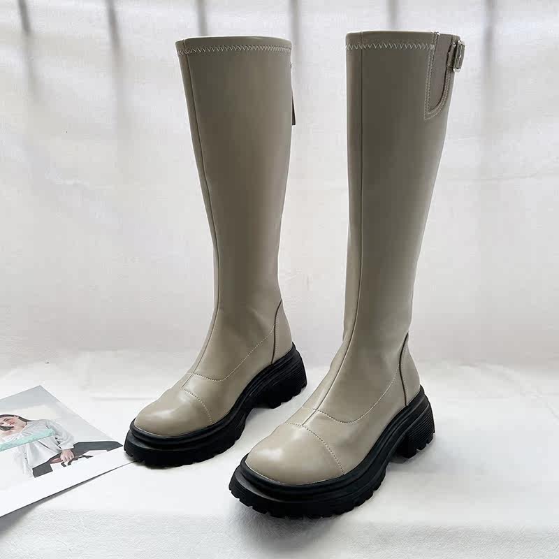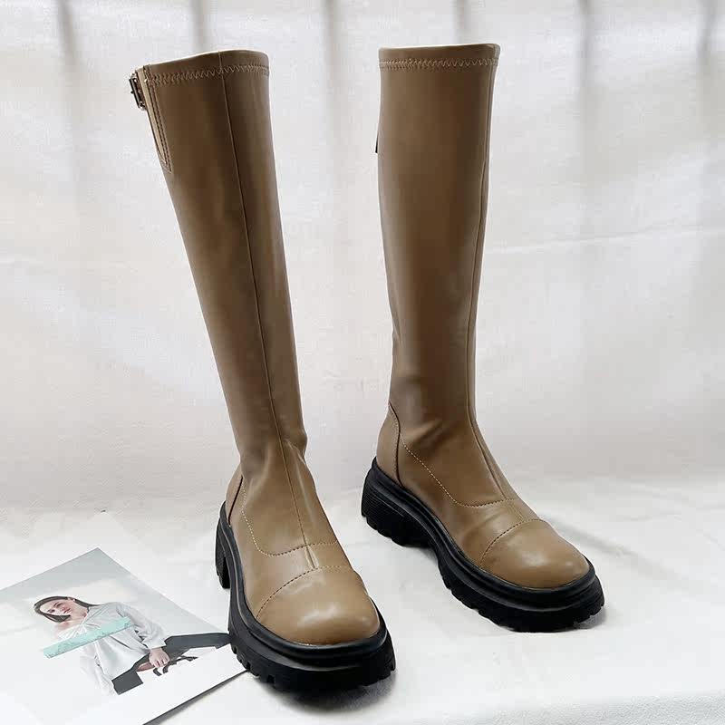 Высокие высокие сапоги в английском стиле на платформе с молнией, коллекция 2022, осенние