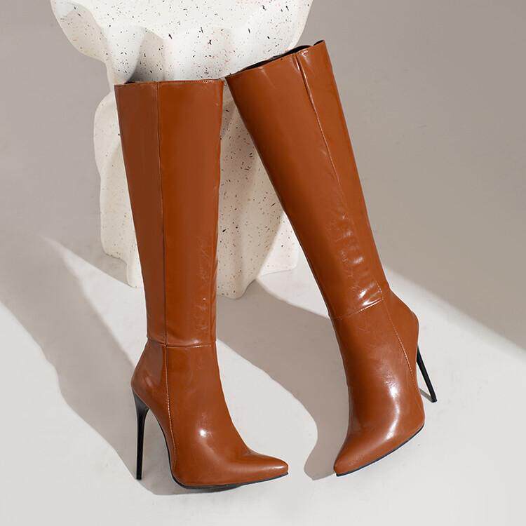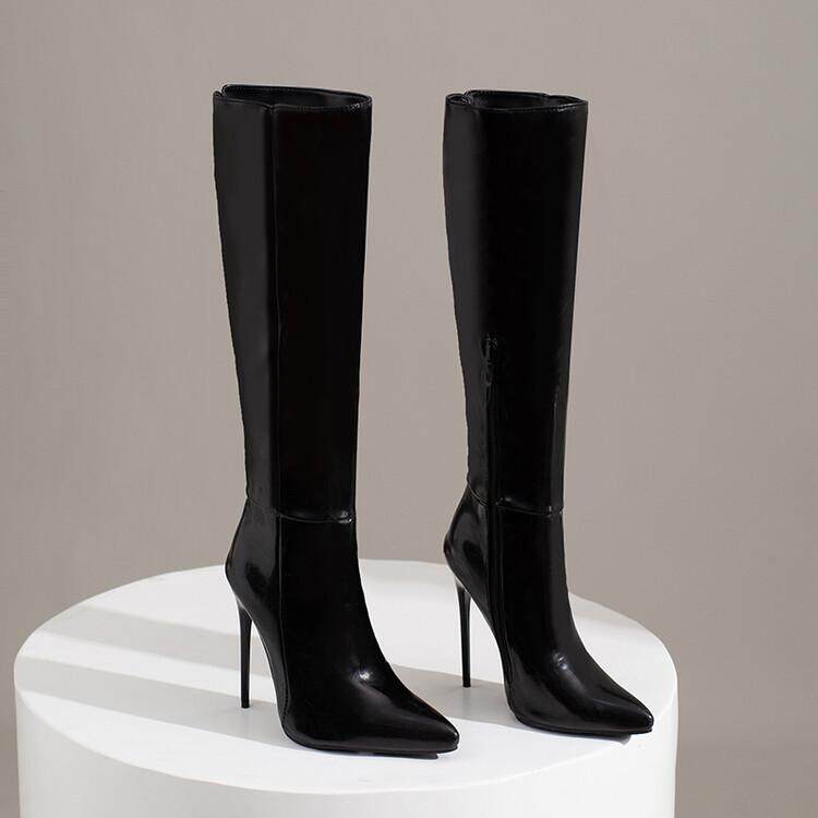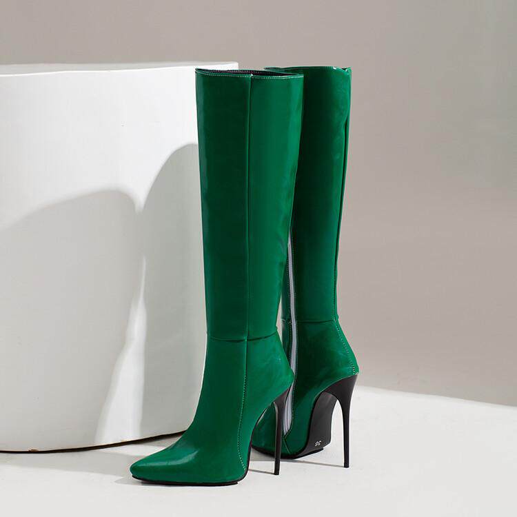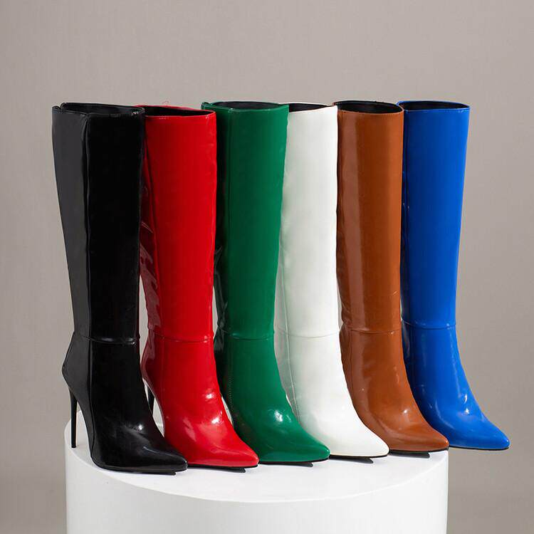 Сексуальные лакированные сапоги выше колена T stage, осенне-зимние новые туфли на шпильке с красным острым носком, на очень высоком каблуке, тонкие яркие кожаные туфли большого размера