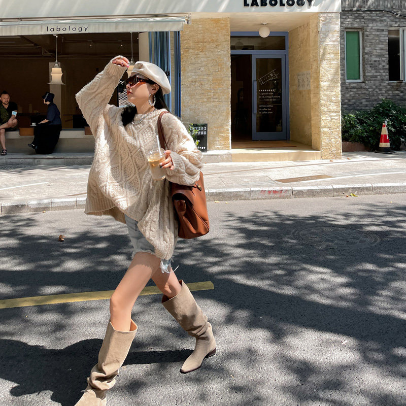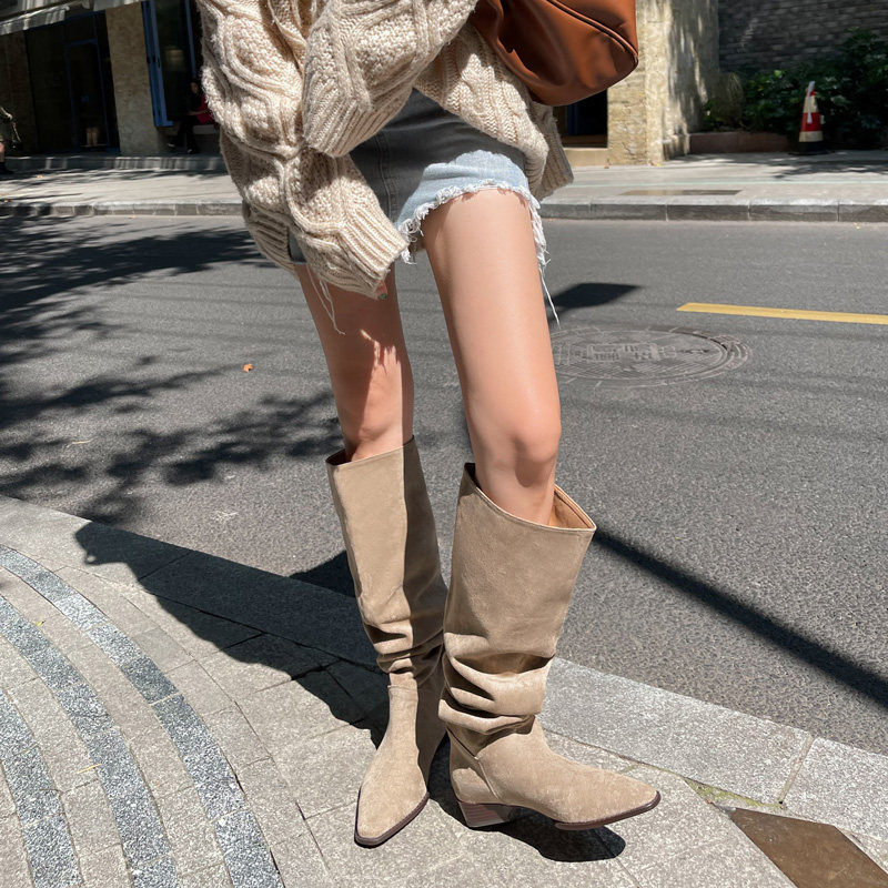 Высокие сапоги, матовые ботинки, по фигуре, французский стиль, свободный крой