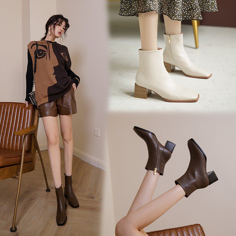 Белые весенние короткие сапоги, ботинки, французский ретро стиль, осенние