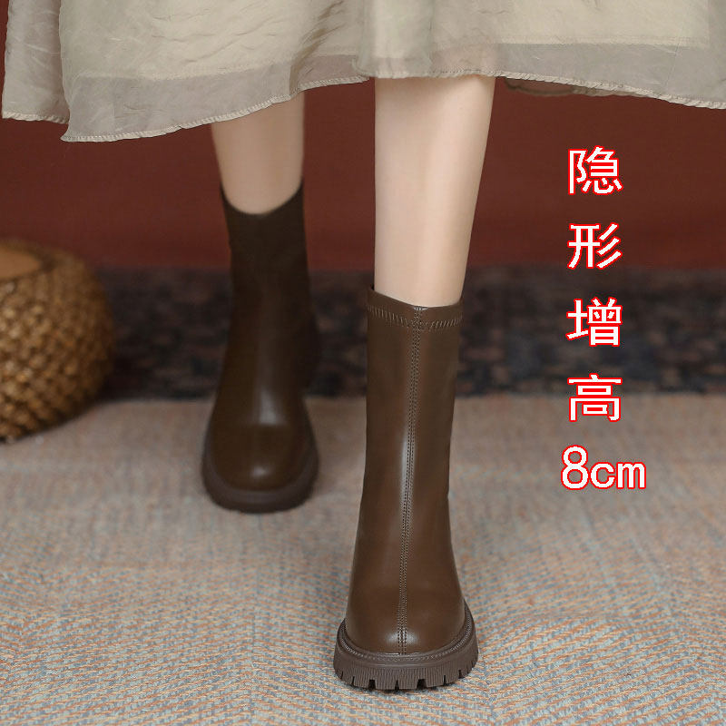 Martens, высокие коричневые короткие сапоги, 8см, модель весна/осень 2025 года, подходит для подростков