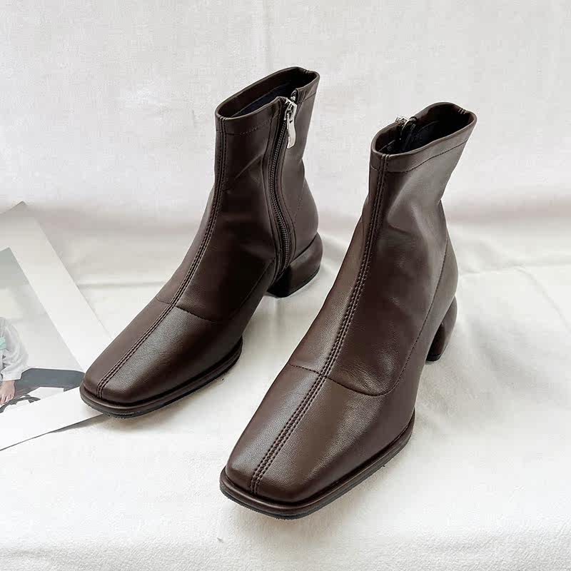 Модные короткие сапоги с молнией, европейский стиль, по фигуре, коллекция 2022, осенние