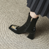 Демисезонные короткие сапоги, металлические высокие ботинки, коллекция 2022, французский стиль, из натуральной кожи