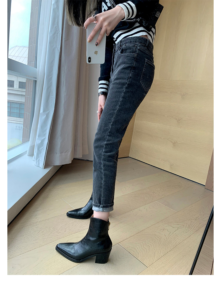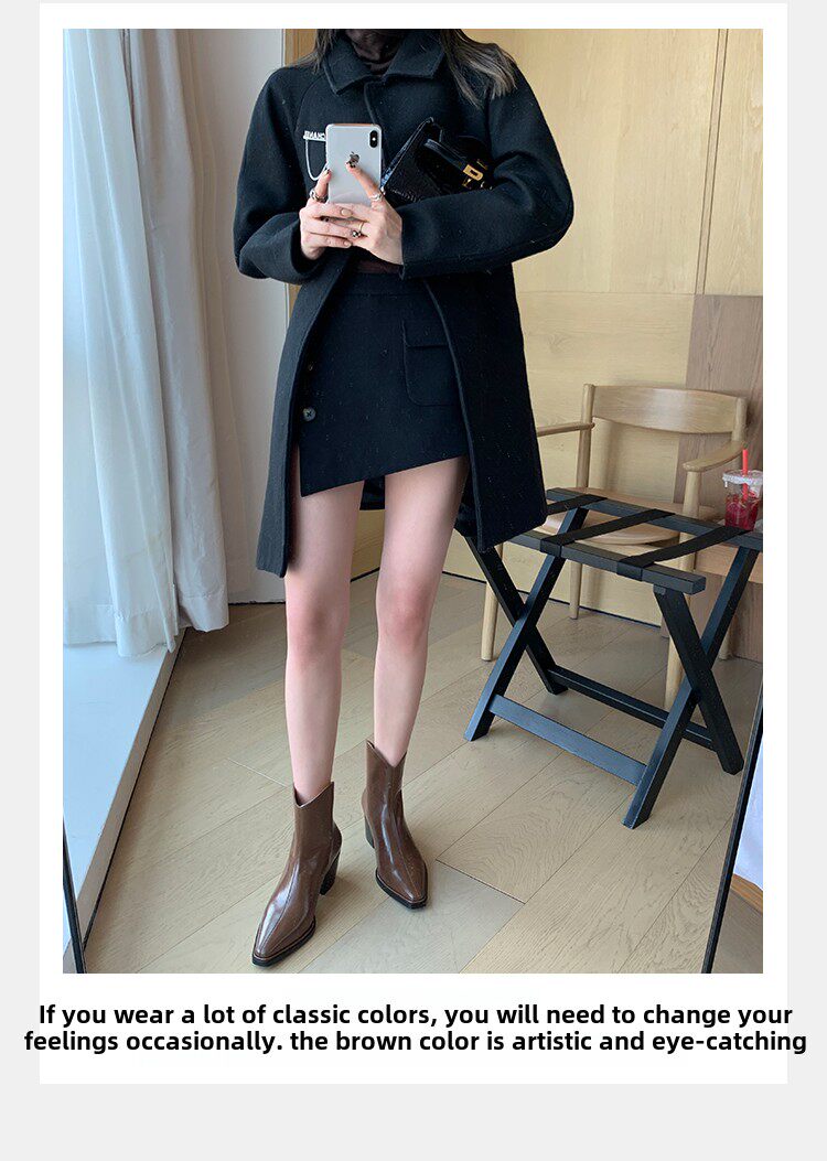 Martens, кожаные короткие сапоги с заостренным носом, ботильоны на высоком каблуке, французский стиль, из натуральной кожи