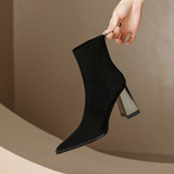 Martens, демисезонные короткие сапоги, черные ботинки с заостренным носом на высоком каблуке, 2023 года, подходит для подростков